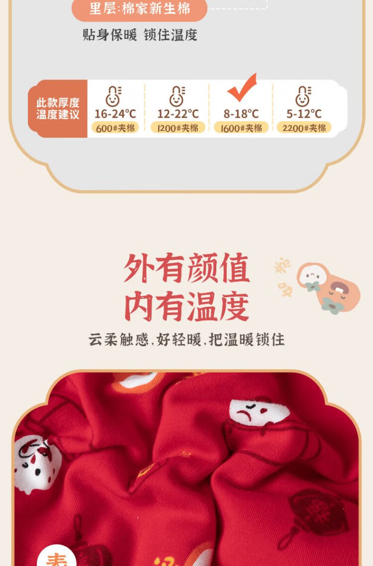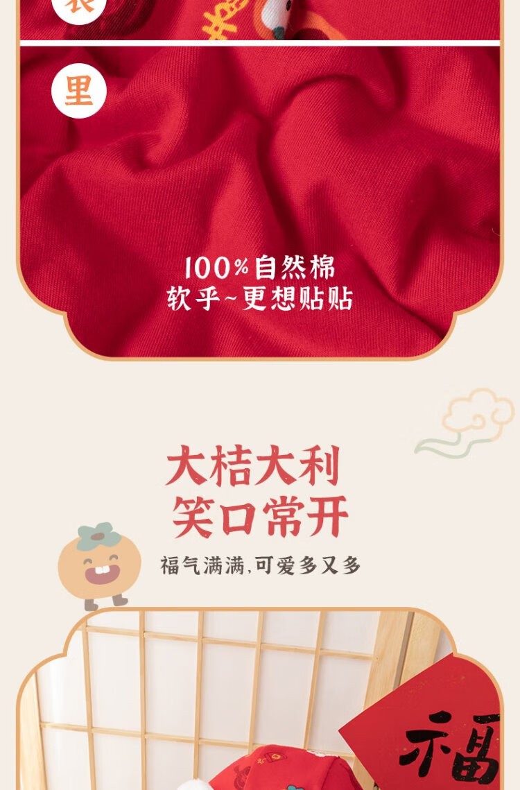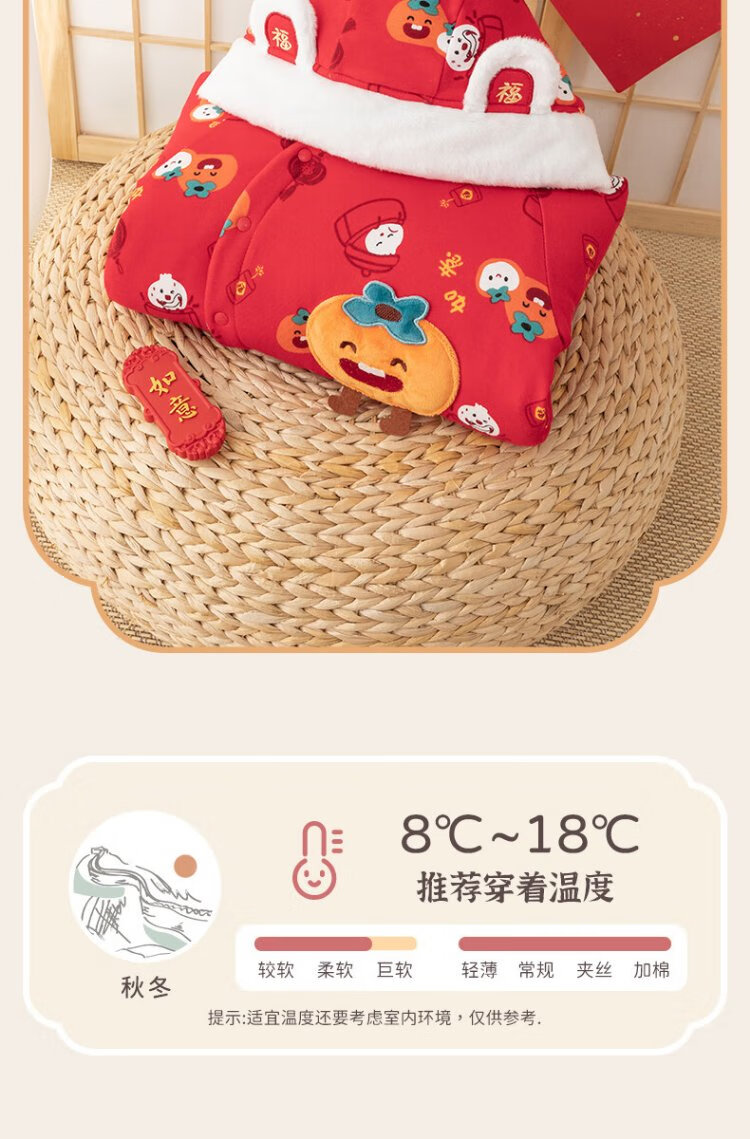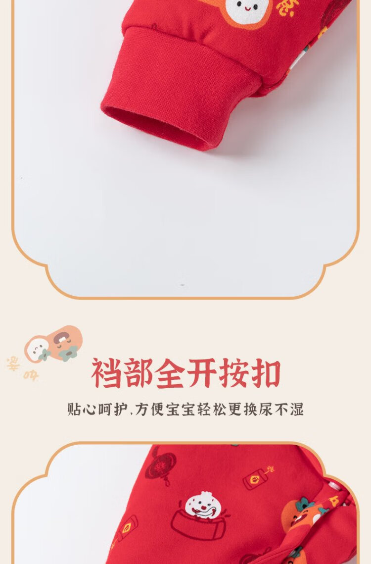 Guiqi Xiong clearance baby quilted one-piece clothes New Year greeting clothes autumn and winter baby warm red thickened cotton clothes red/everything goes well 73cm