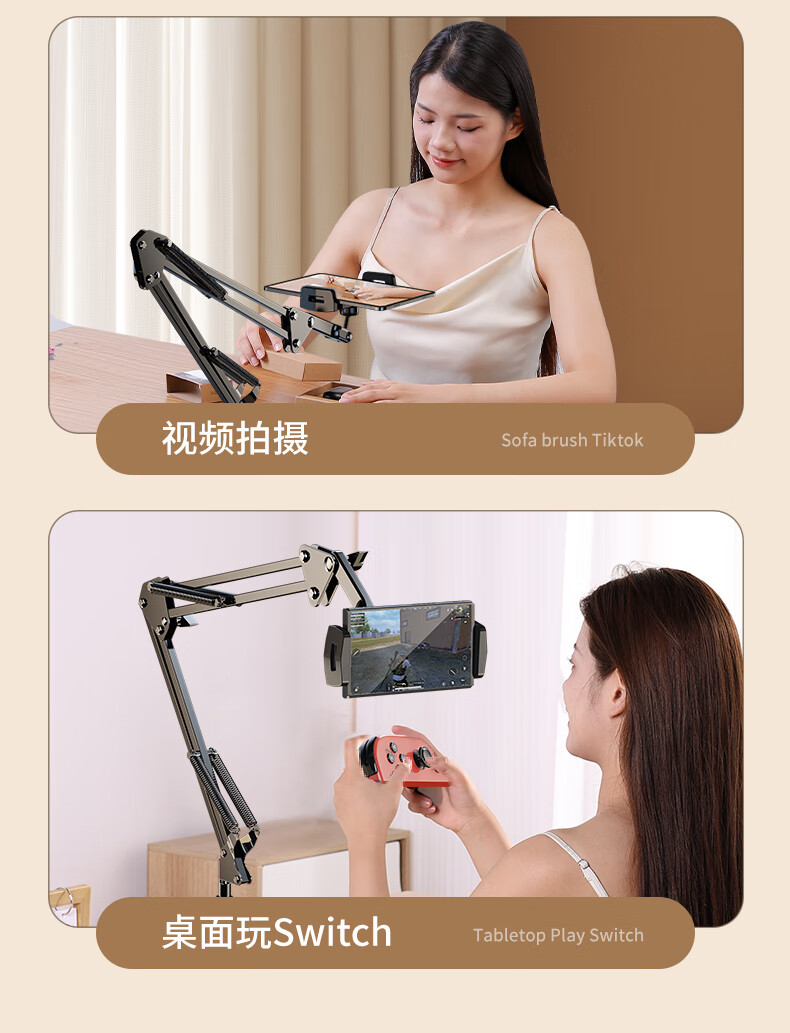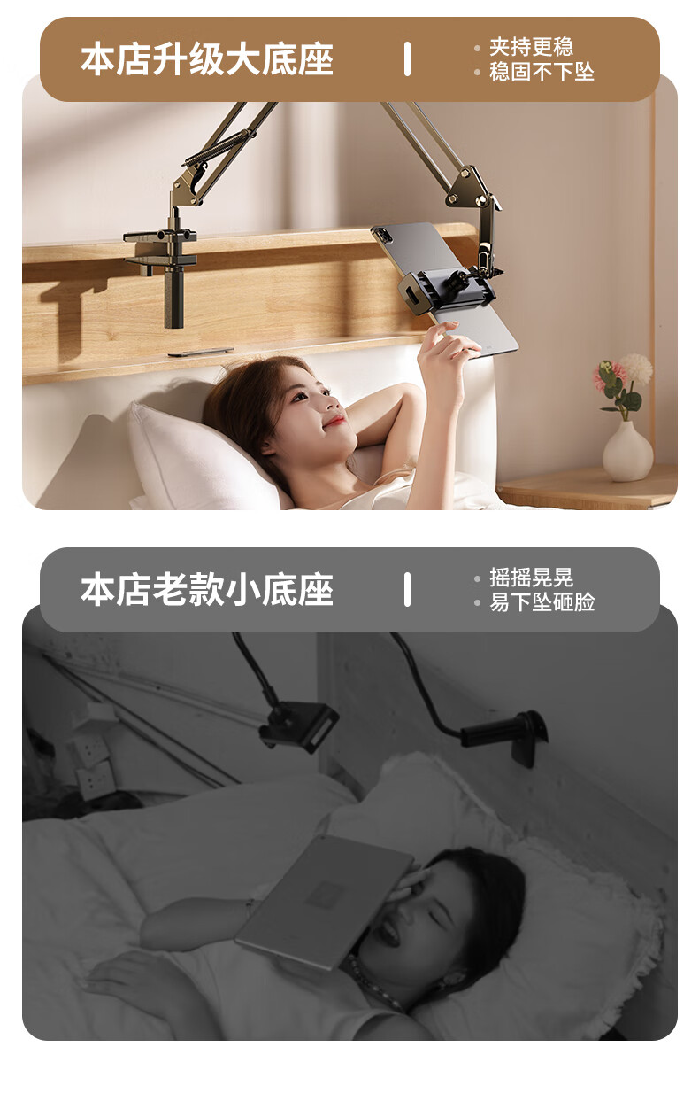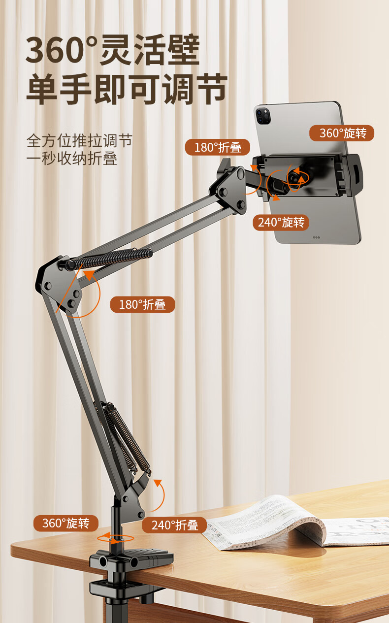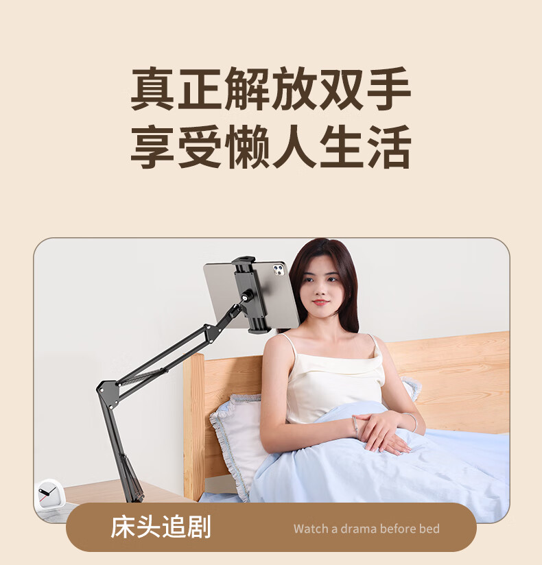 Budi Mobile Phone Lazy Tablet Stand Bedside Bed iPad Support Stand Desktop Cantilever Mobile Phone Holder Computer Lying Special Live Broadcast Artifact Multifunctional Switch Universal Clip Free With Bluetooth Remote Control Mobile Phone Special Bold Alloy Universal Adjustment