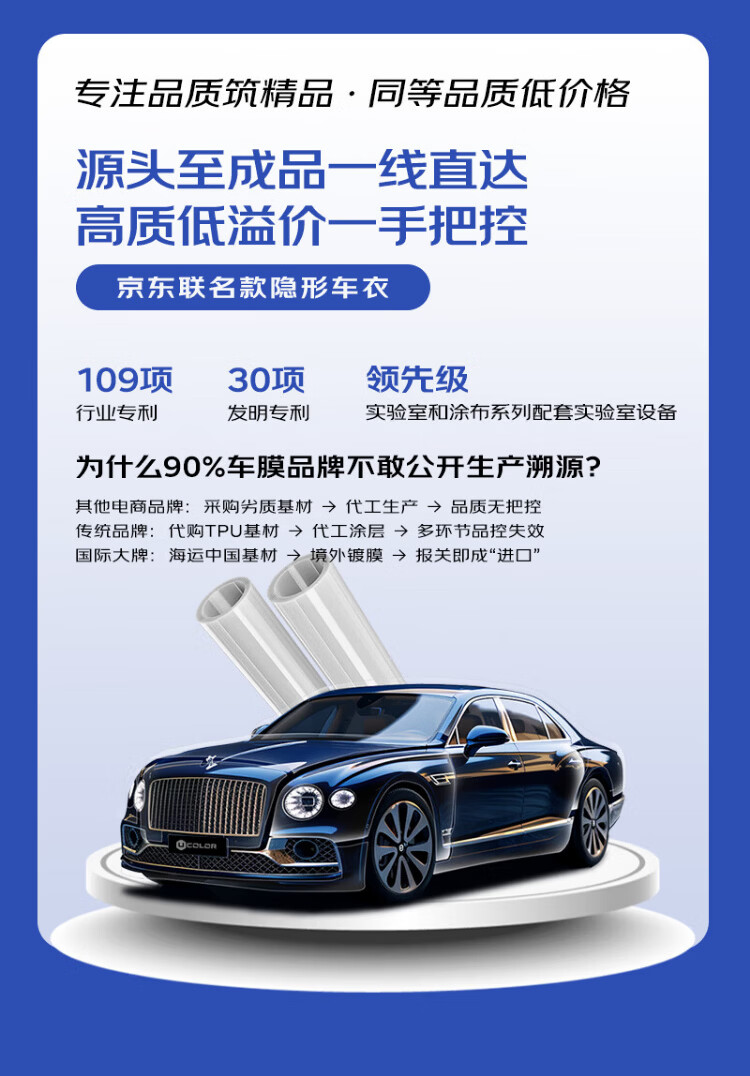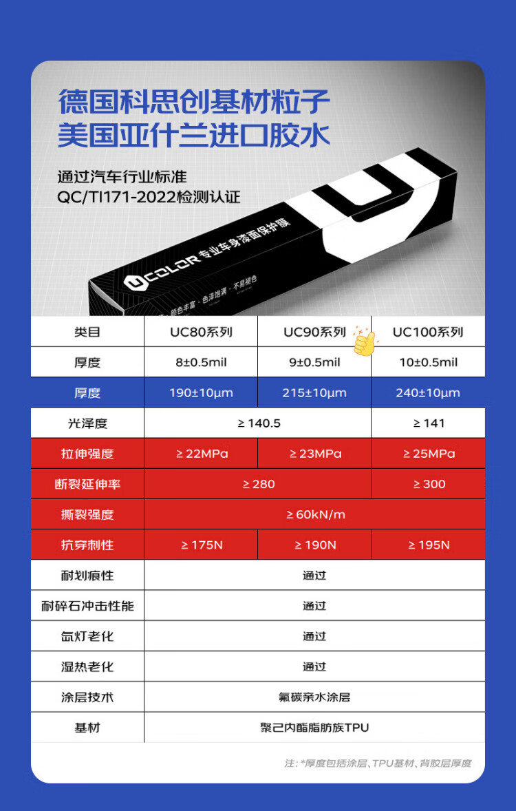 UCOLOR invisible car clothing film full body film TPU material anti-scratch transparent film car clothing paint protection film package construction JD co-branded invisible car clothing Covestro TPU base material + 10mil + package construction (imported glue)