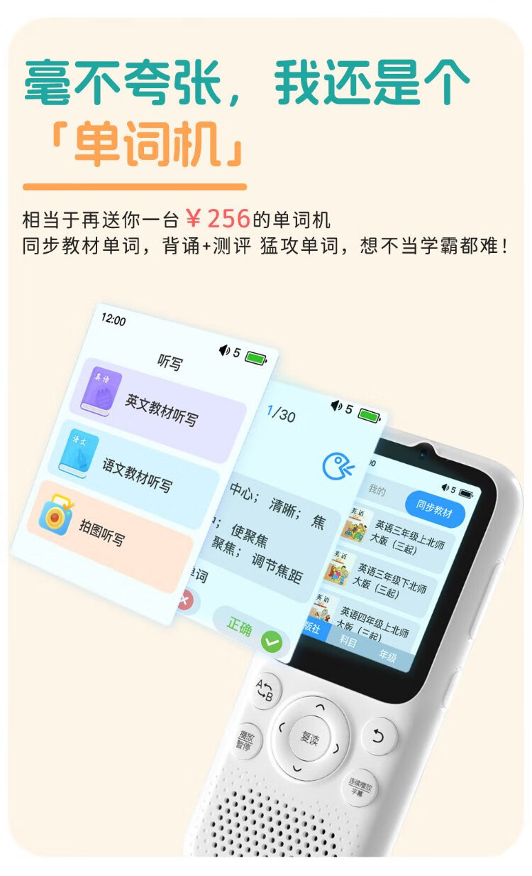Listeneer repeater K9 IELTS KET teaching material synchronization in-class walkman high school entrance examination college entrance examination sharpening hearing treasure AI intelligent English listening learning machine K9 classic white 128G