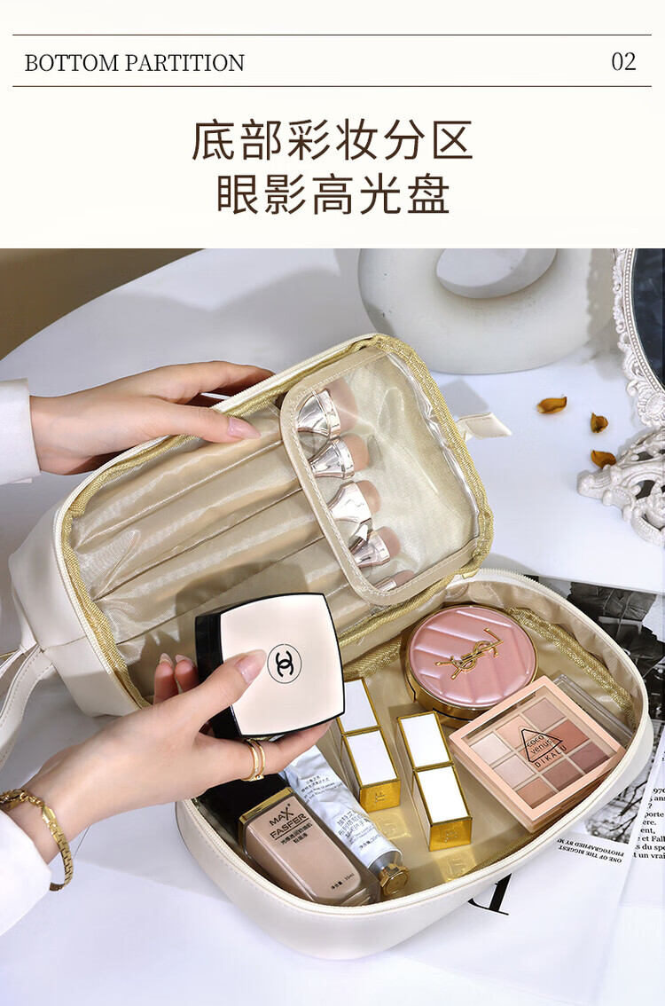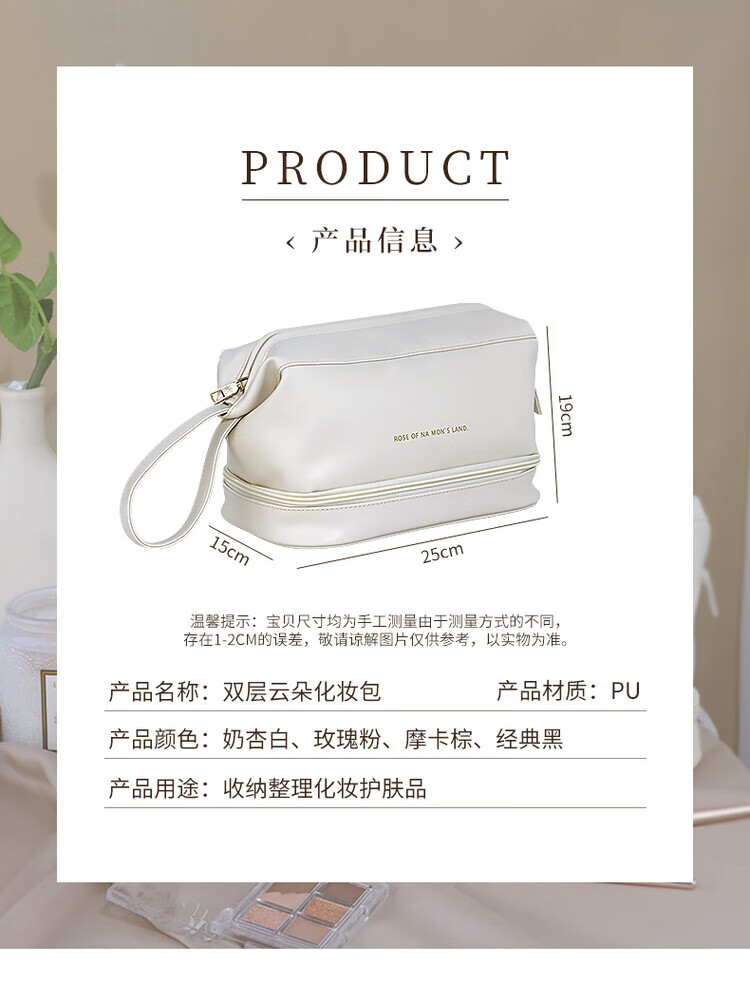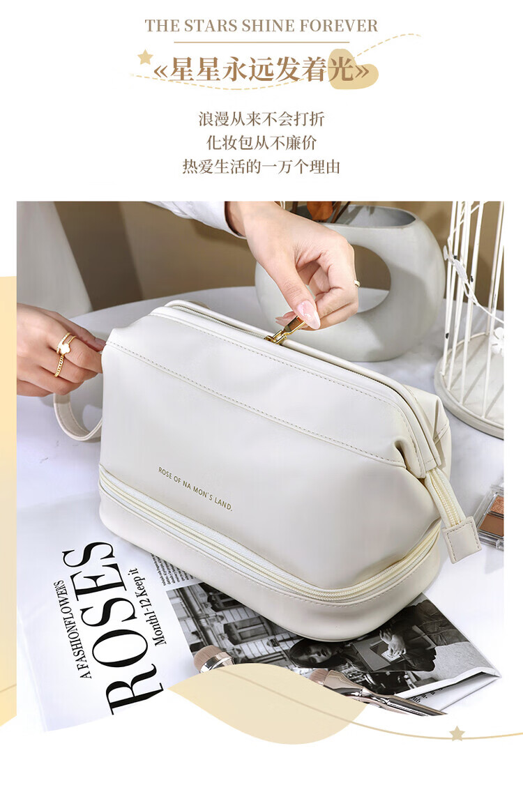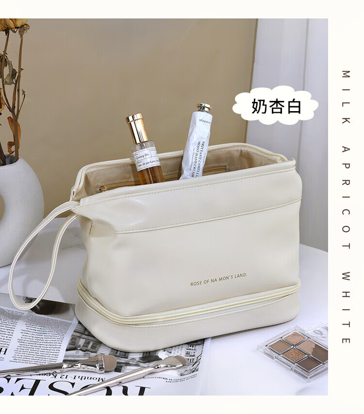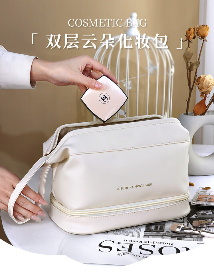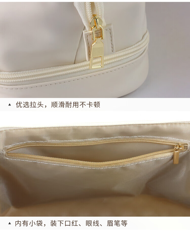 JD Logistics Portable Advanced New Double-Layer Cloud Cosmetics Storage Bag Travel Large-Capacity Toiletries Bag Single-Layer Milk Apricot White