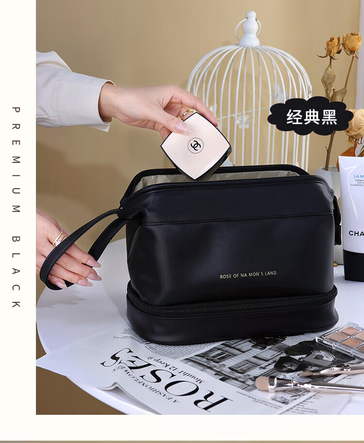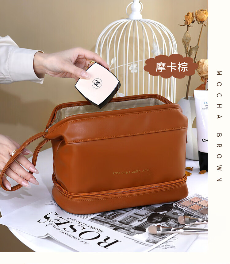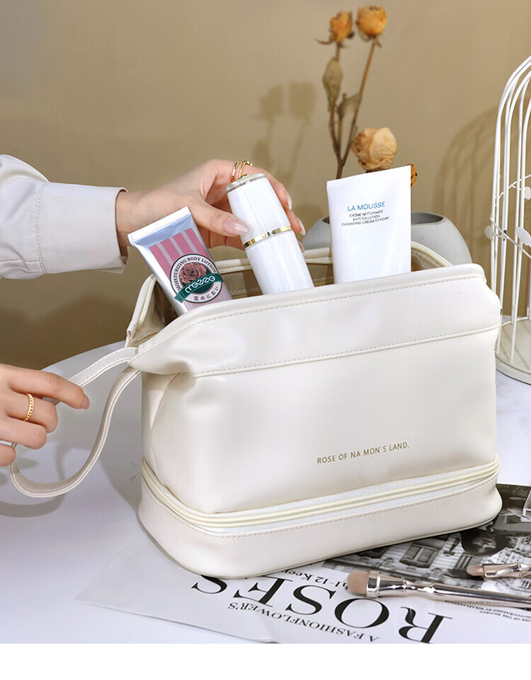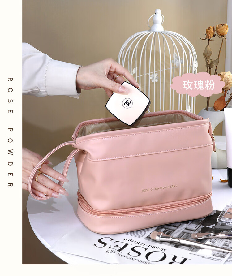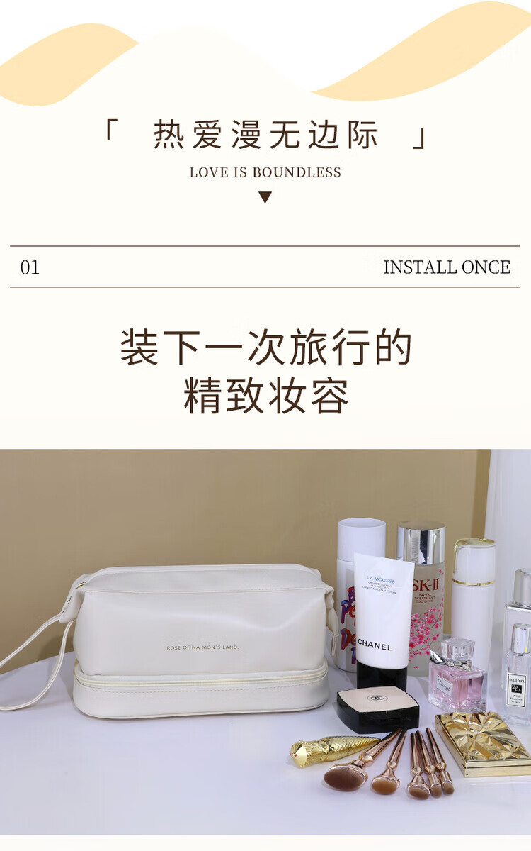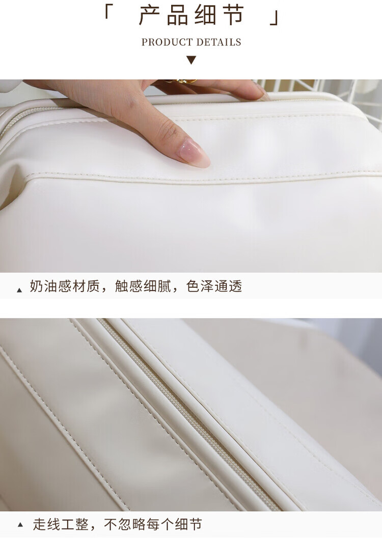 JD Logistics Portable Advanced New Double-Layer Cloud Cosmetics Storage Bag Travel Large-Capacity Toiletries Bag Single-Layer Milk Apricot White