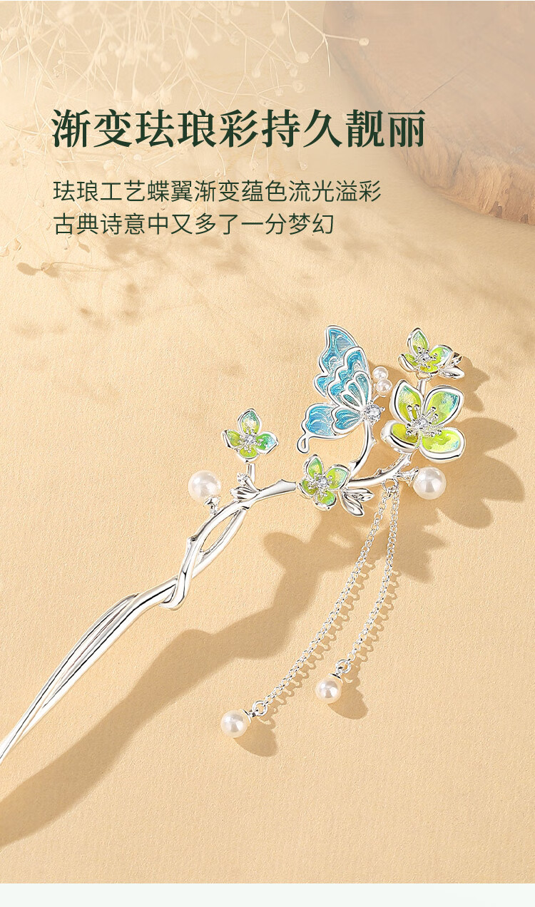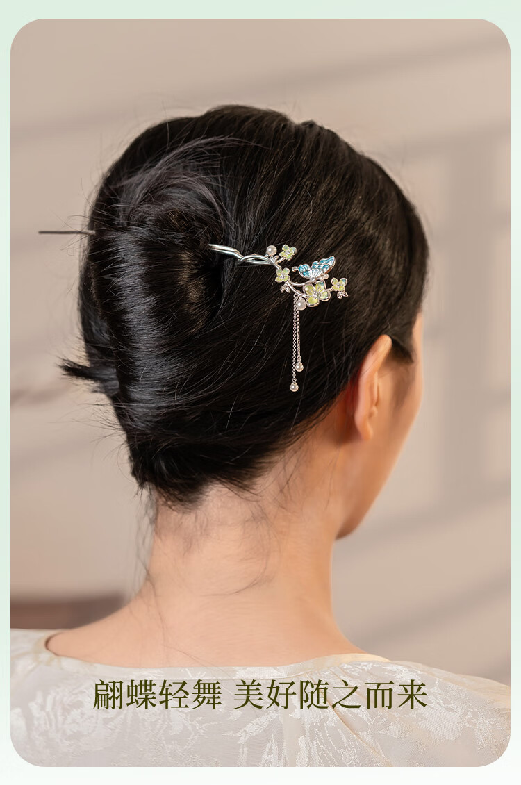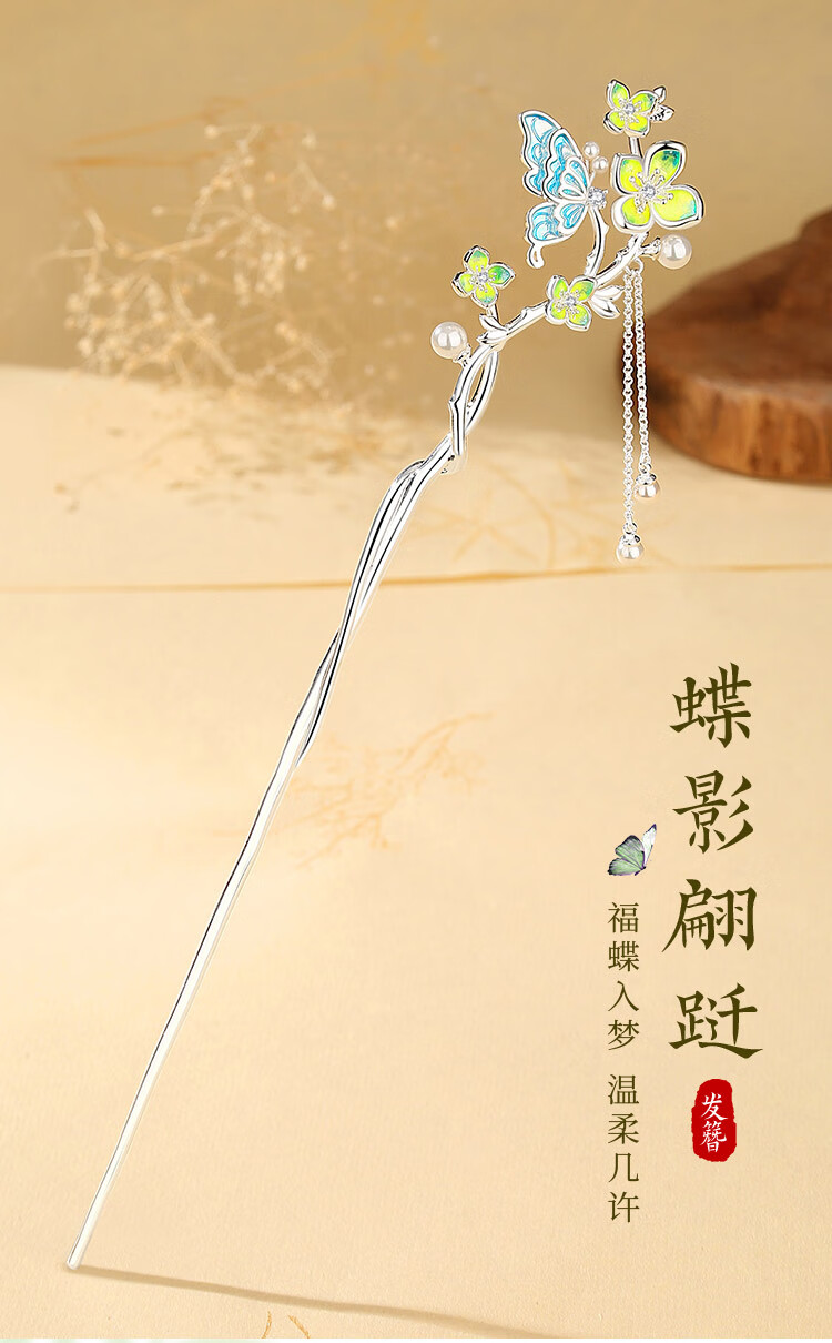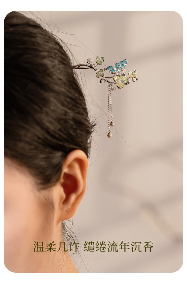 Ginqianhui butterfly hairpin for ladies, ancient style hairpin, high-end style, tassel, national style hairpin, birthday gift for girlfriend, jade flower hairpin + free engraving/writing of greeting cards, 1 piece set