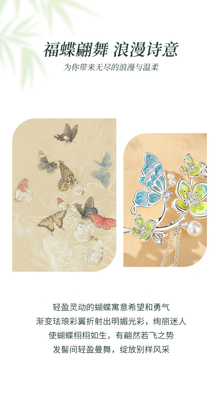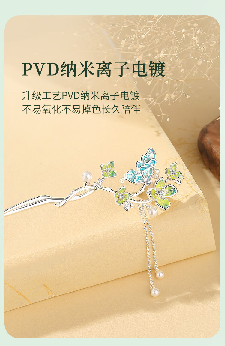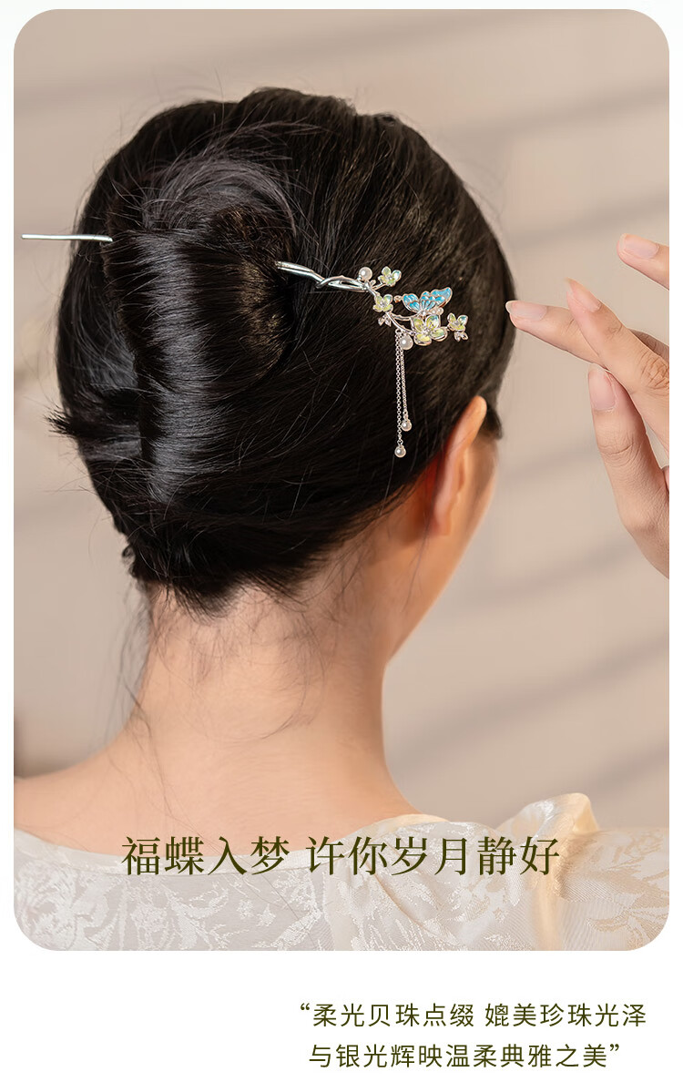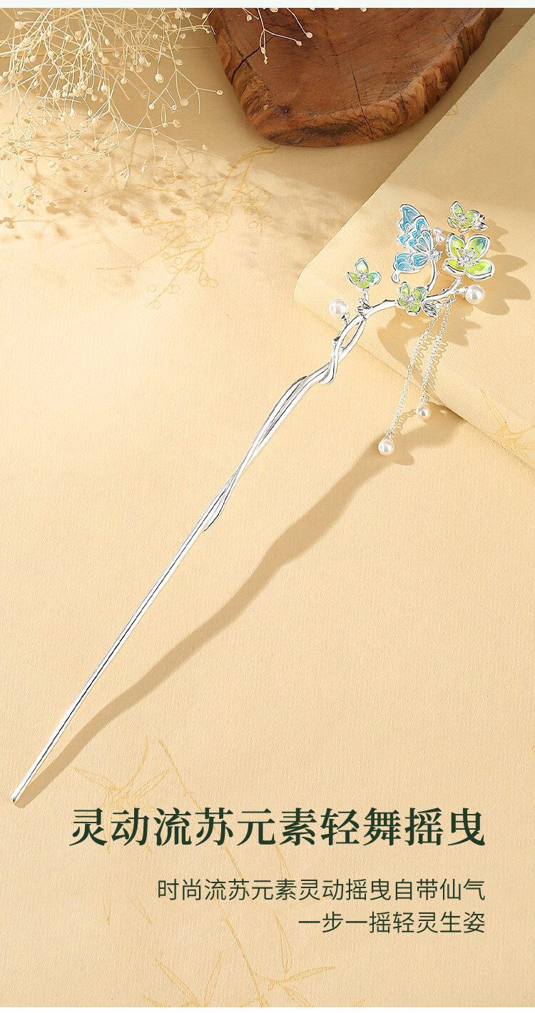 Ginqianhui butterfly hairpin for ladies, ancient style hairpin, high-end style, tassel, national style hairpin, birthday gift for girlfriend, jade flower hairpin + free engraving/writing of greeting cards, 1 piece set