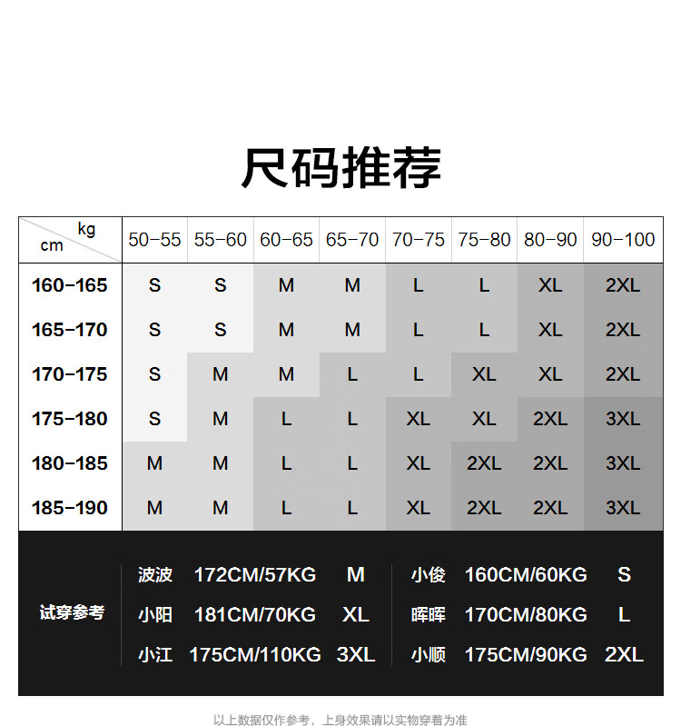 China (cm) 165 / 88-90 170 / 96-98 175 / 108-110 180 / 118-122 185 / 126-130