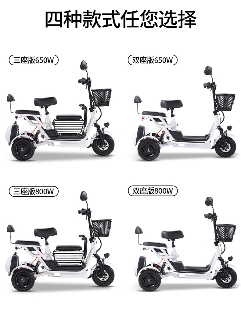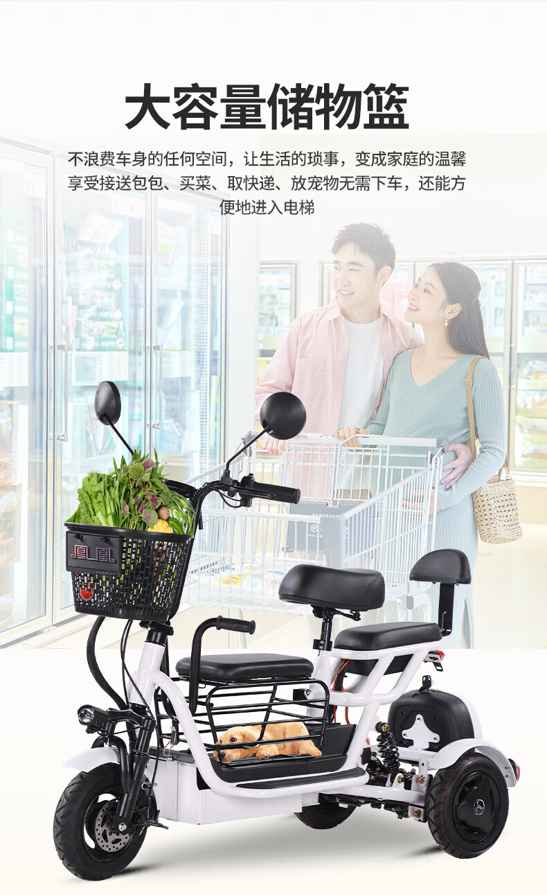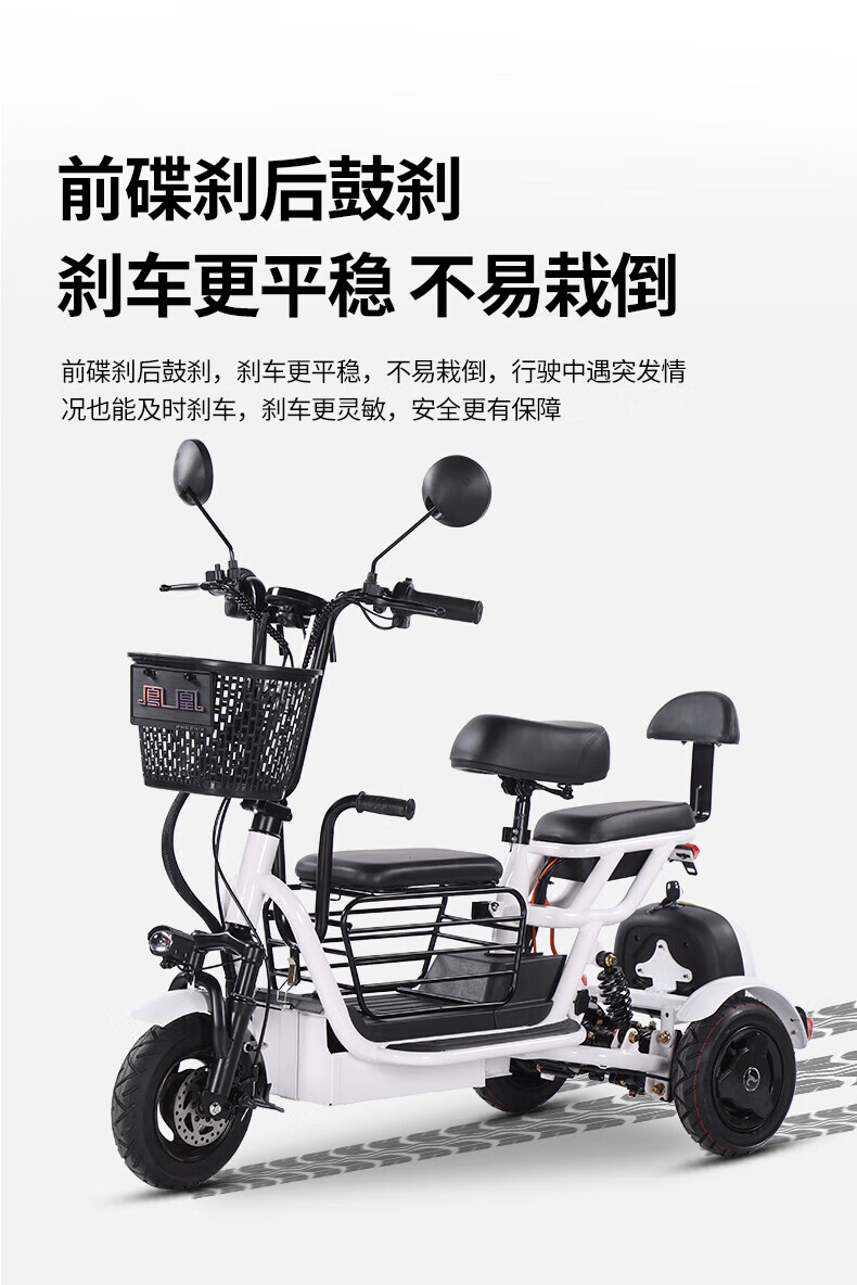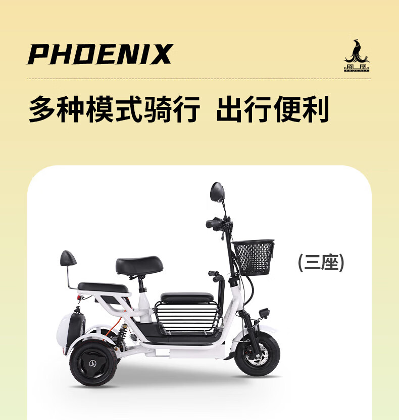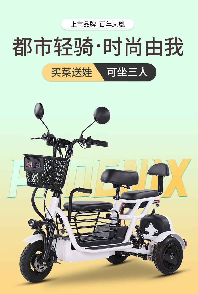 Phoenix Q3 parent-child electric tricycle household small elderly walking electric vehicle elderly leisure small tricycle two-seater + 800W differential + 20A lithium battery + about 50 kilometers