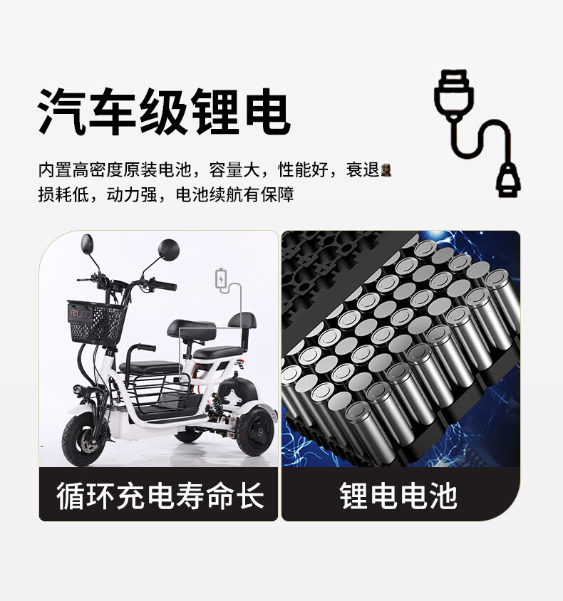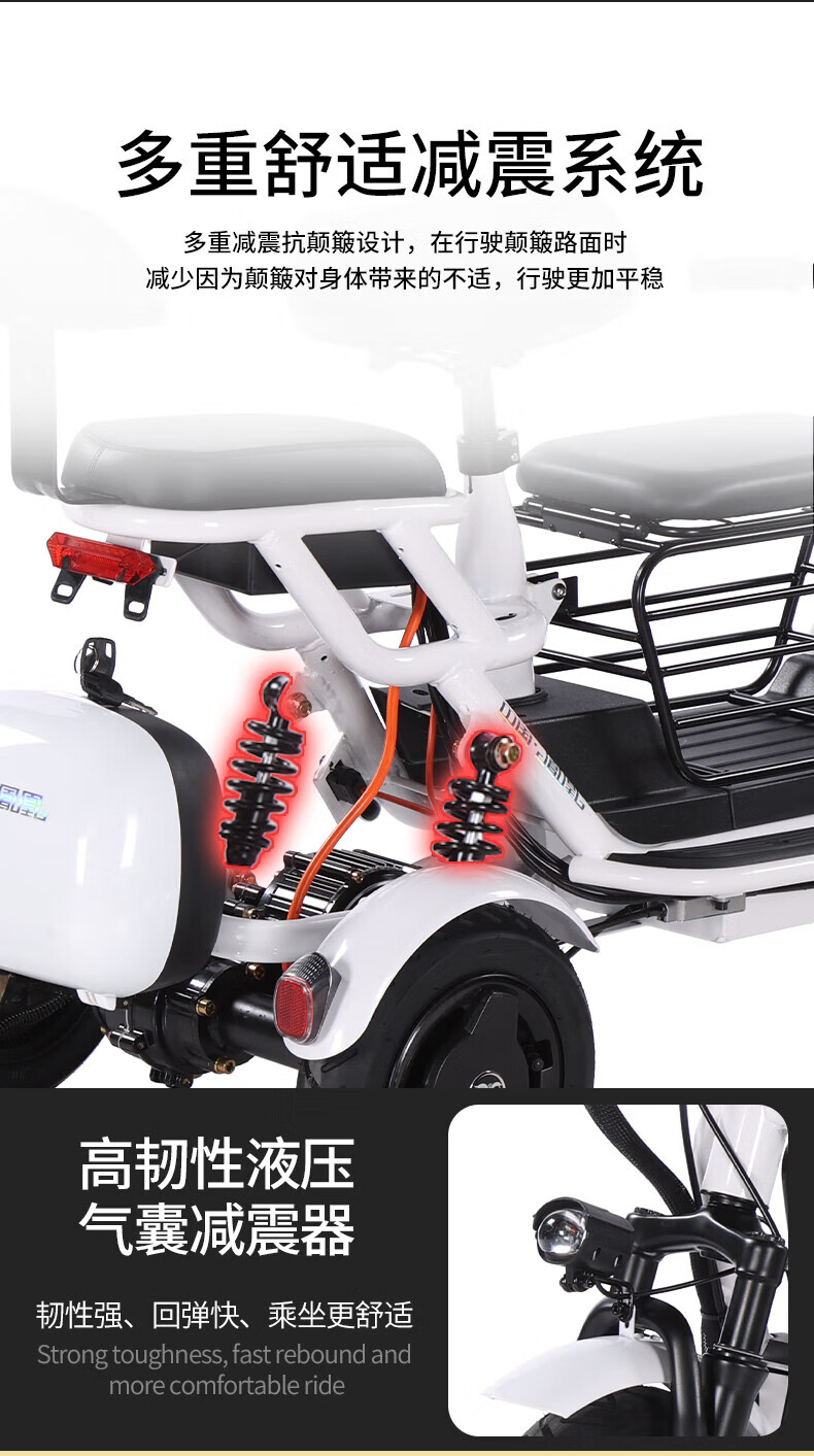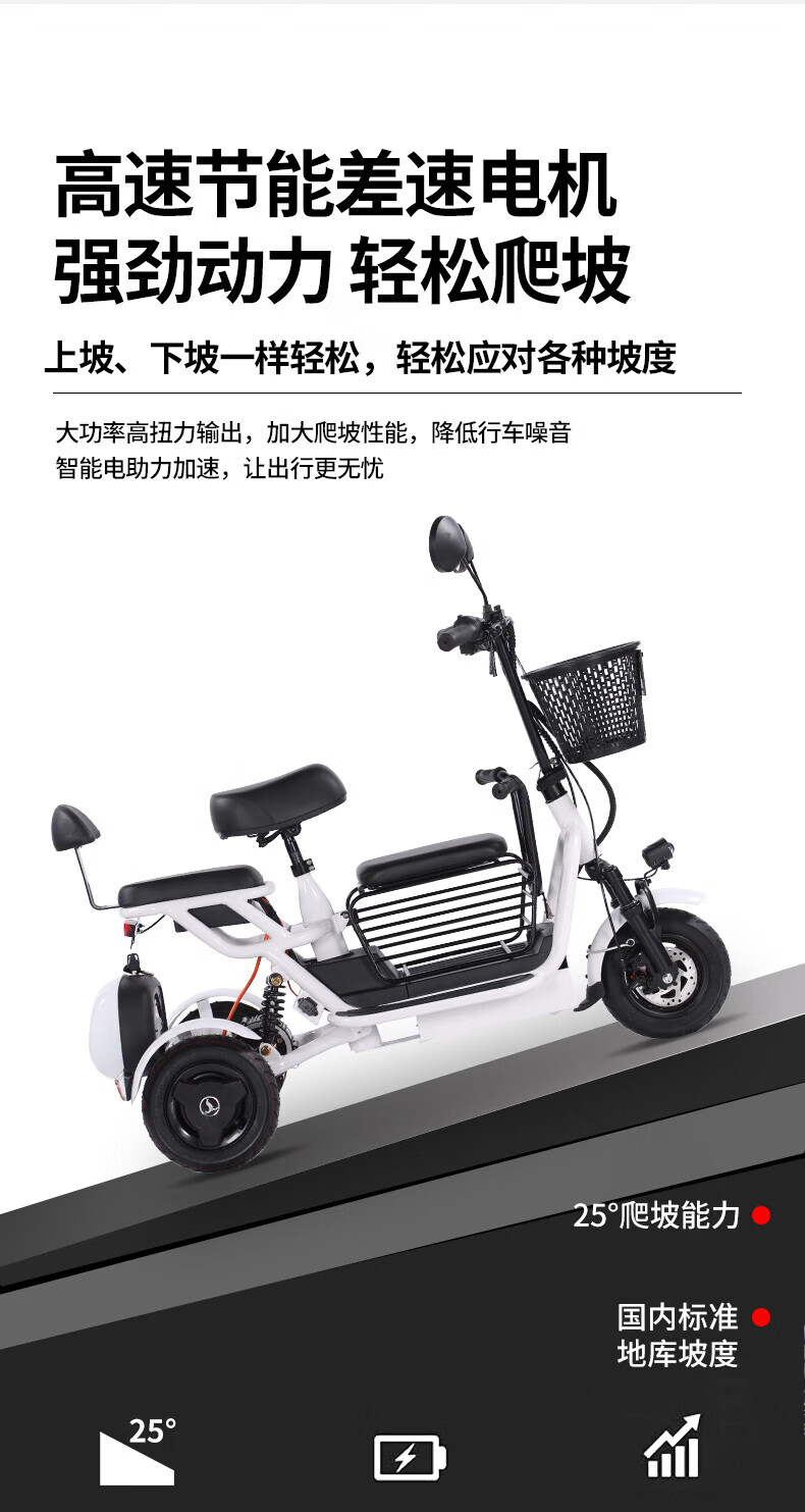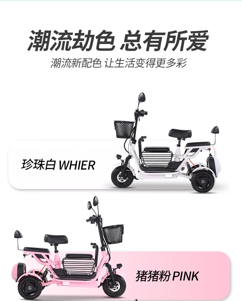 Phoenix Q3 parent-child electric tricycle household small elderly walking electric vehicle elderly leisure small tricycle two-seater + 800W differential + 20A lithium battery + about 50 kilometers