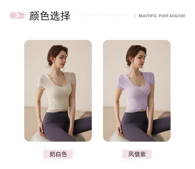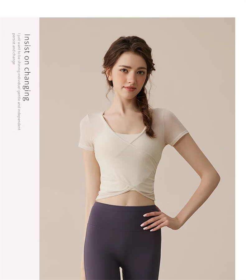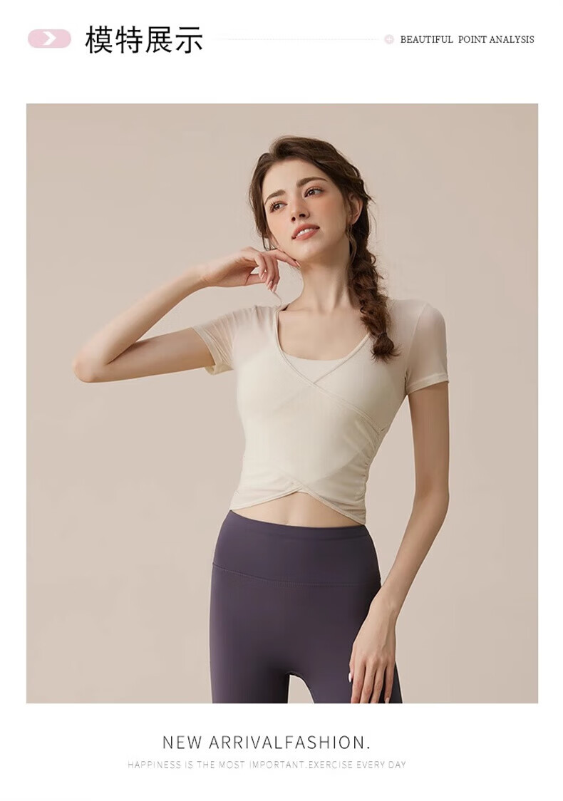 Youyou Yoga Wear Summer Fitness Wear for Women New Style Pilates Training Wear with Chest Pad Mesh Top Set 33029 Fengxin Purple Two-piece Set + Gray Yoga Pants XL