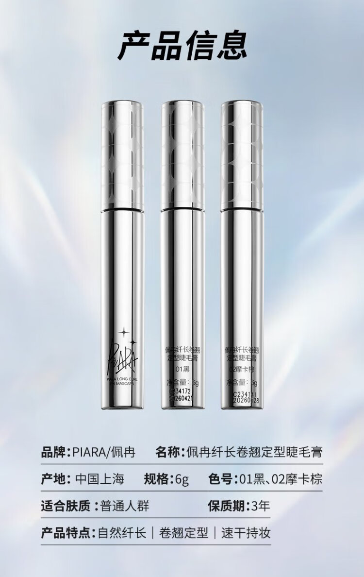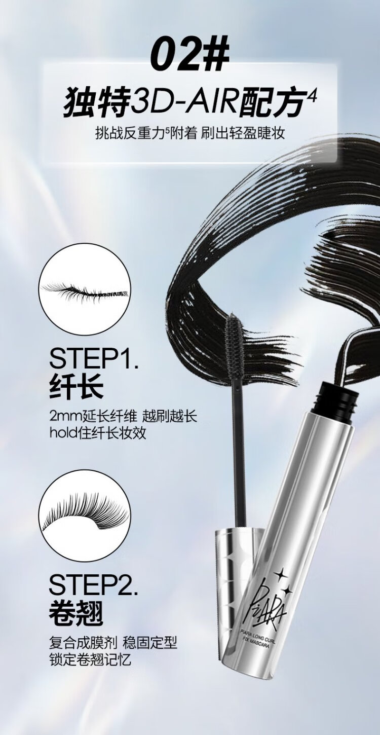 PIARA thick and slender mascara, waterproof, sweat-proof, non-smudge-proof primer and setting liquid, natural curling, new packaging 01 black mascara