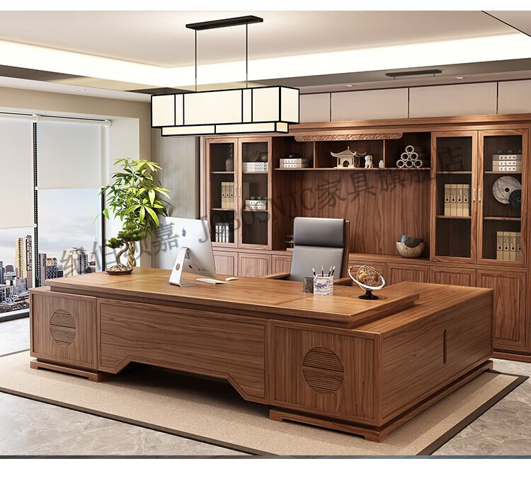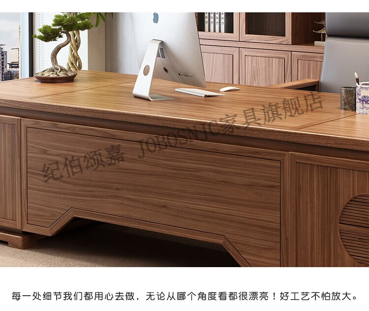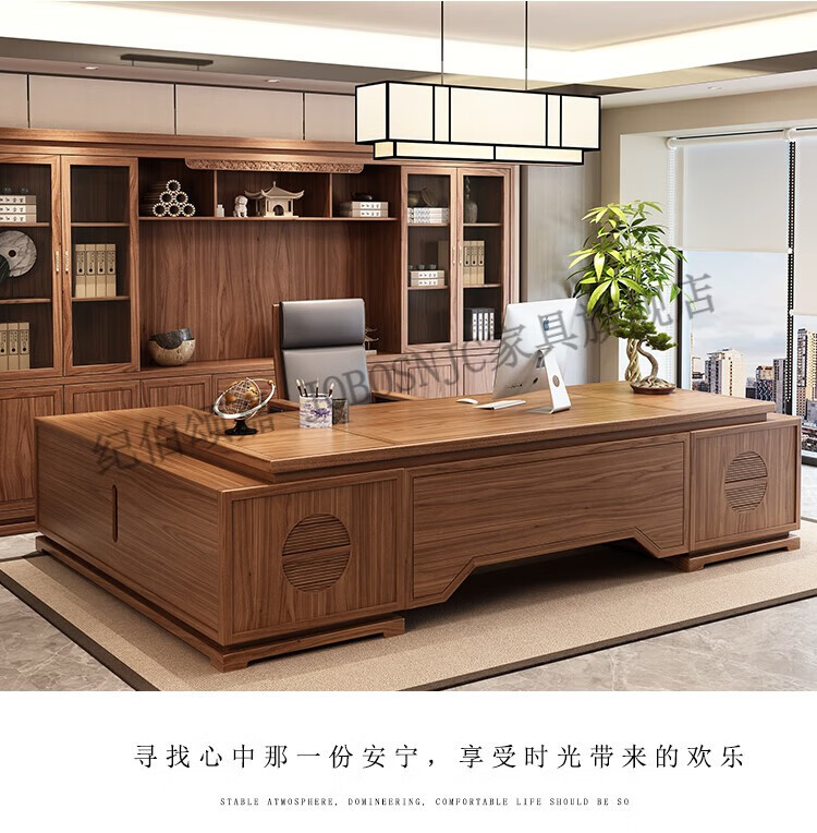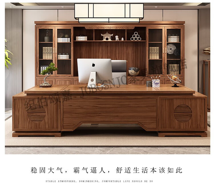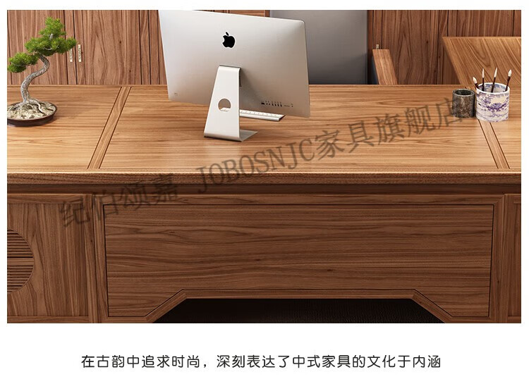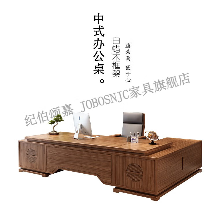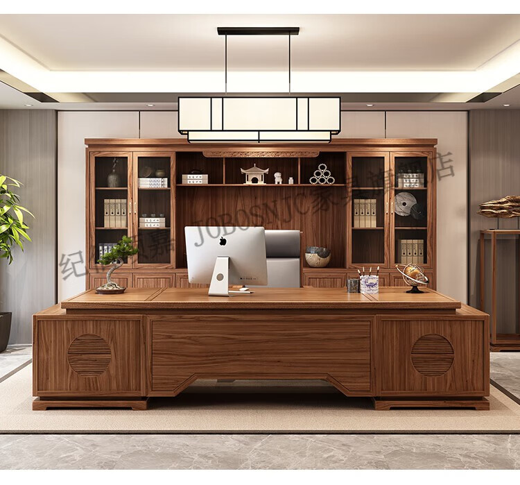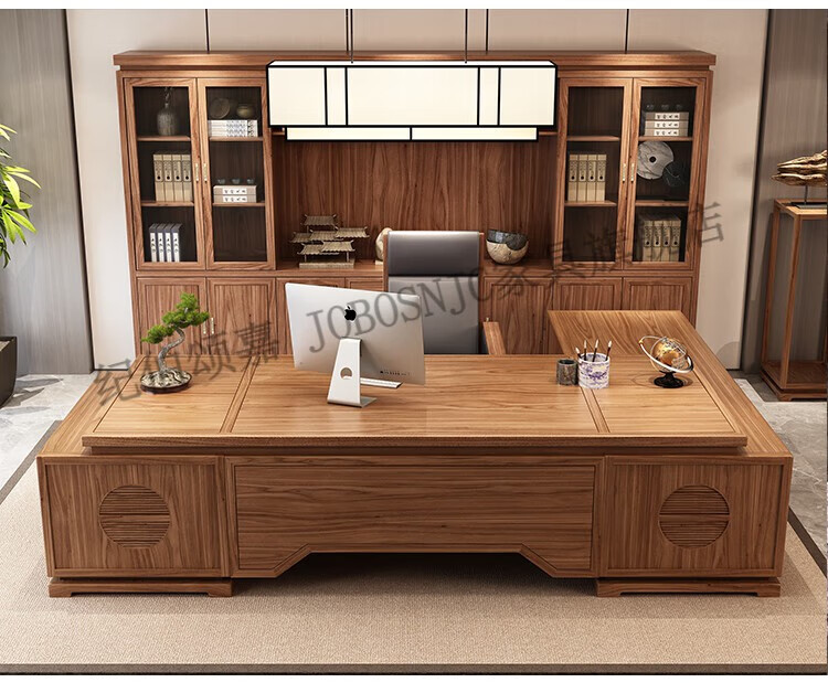 Ji Bosongjia new Chinese style solid wood boss desk desk combination high-end desk president desk executive desk office furniture customization 1.8m desk (including side table)