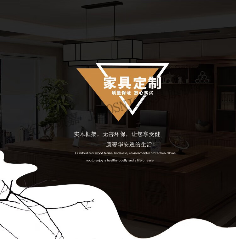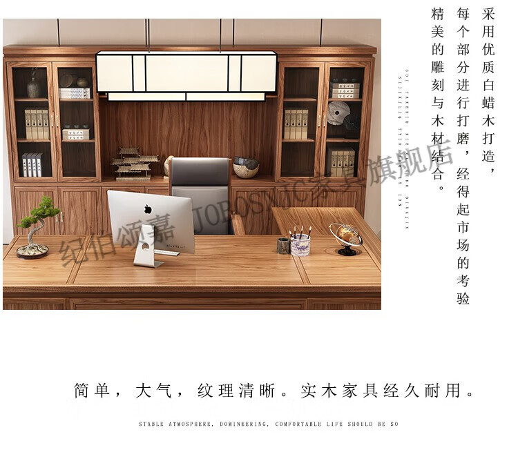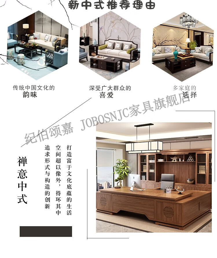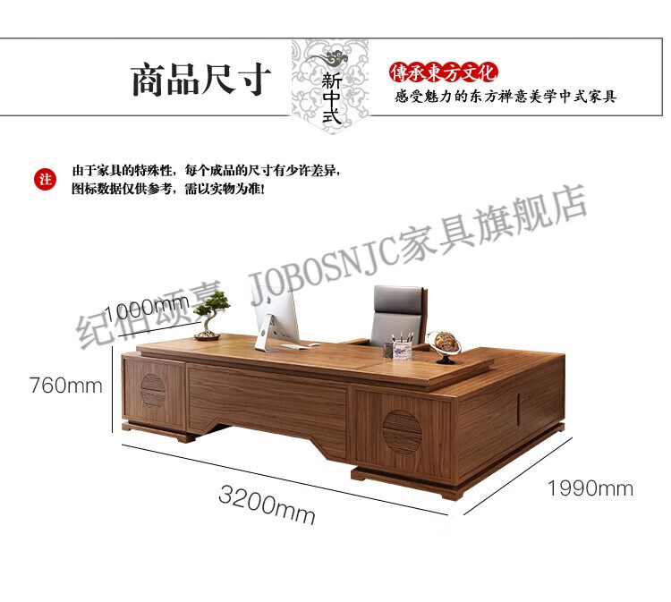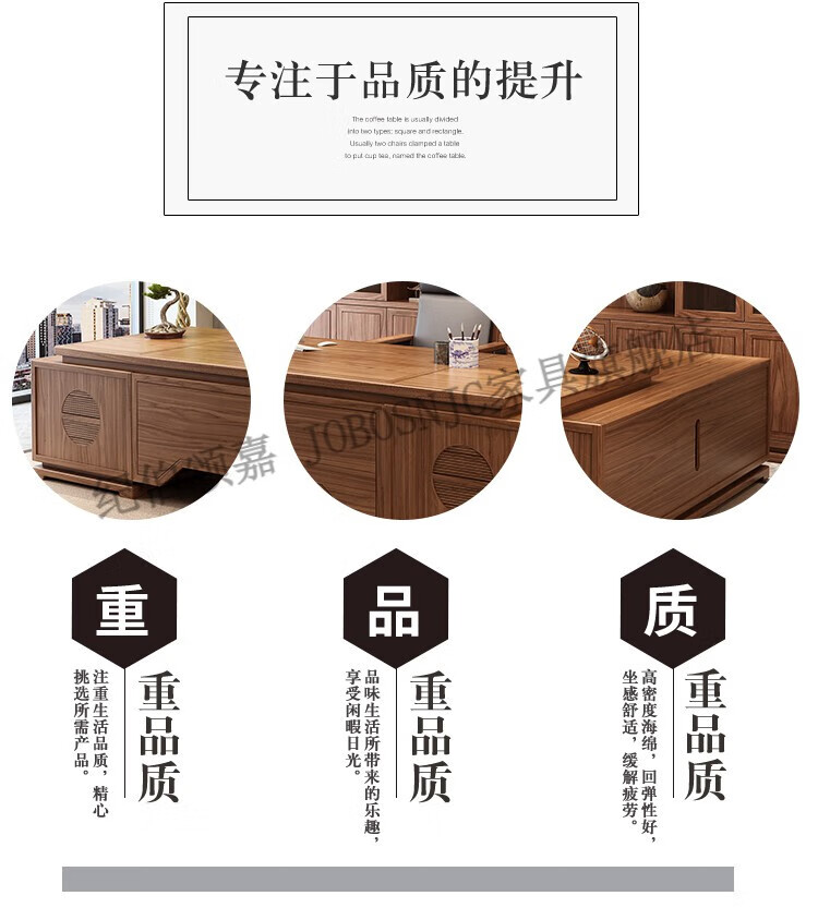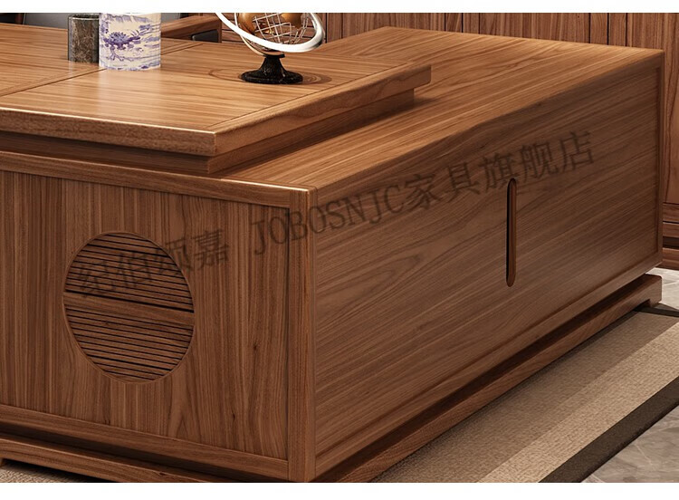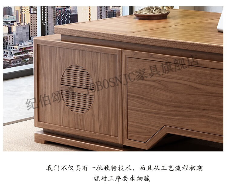 Ji Bosongjia new Chinese style solid wood boss desk desk combination high-end desk president desk executive desk office furniture customization 1.8m desk (including side table)