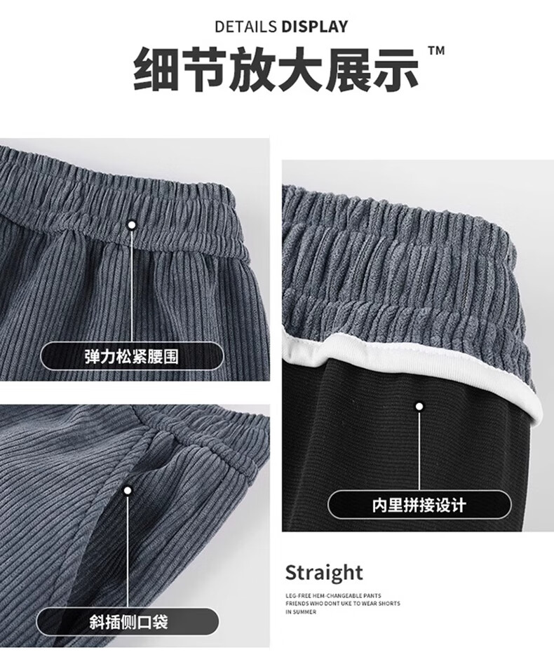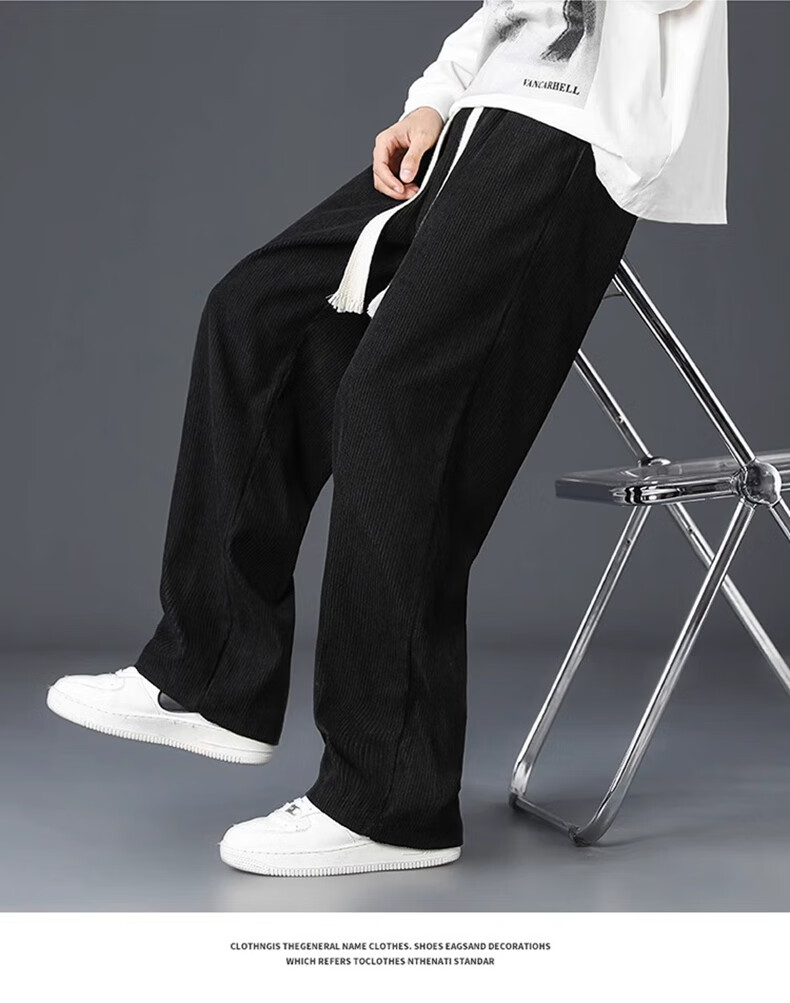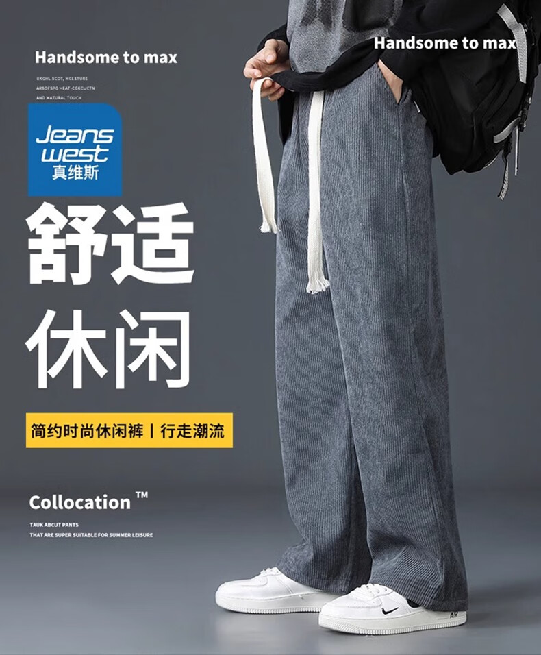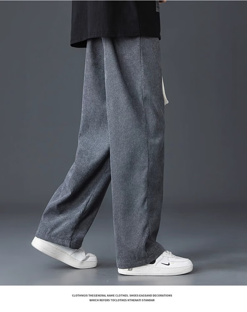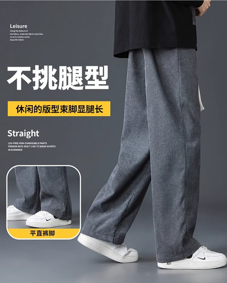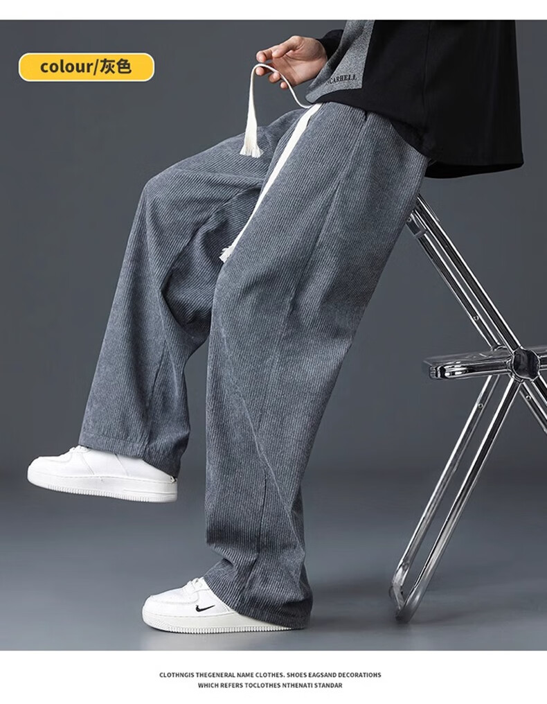 Jeanswest pants men's autumn and winter velvet thickened corduroy loose straight wide-leg student youth sportswear trousers 6665 gray L (recommended 120-135 Jin Jin equals 0.5 kg)