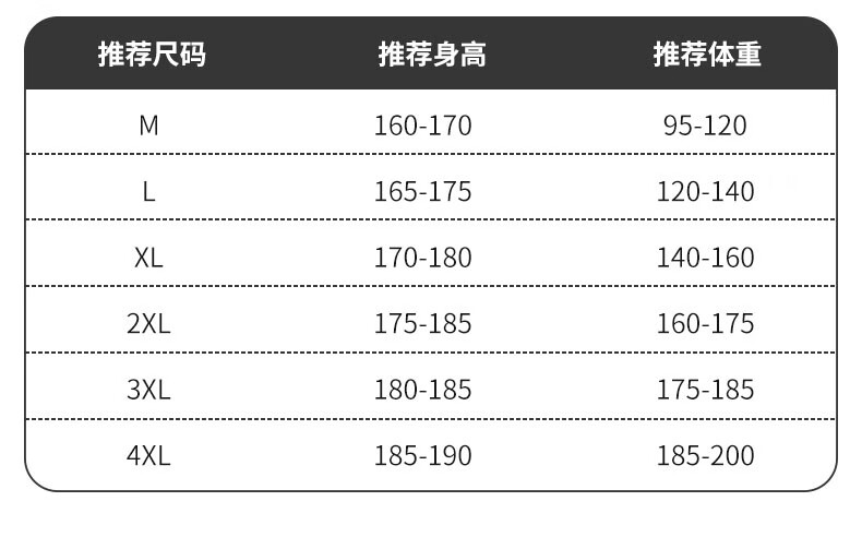 China (cm) 165 / 88-90 170 / 96-98 175 / 108-110 180 / 118-122 185 / 126-130