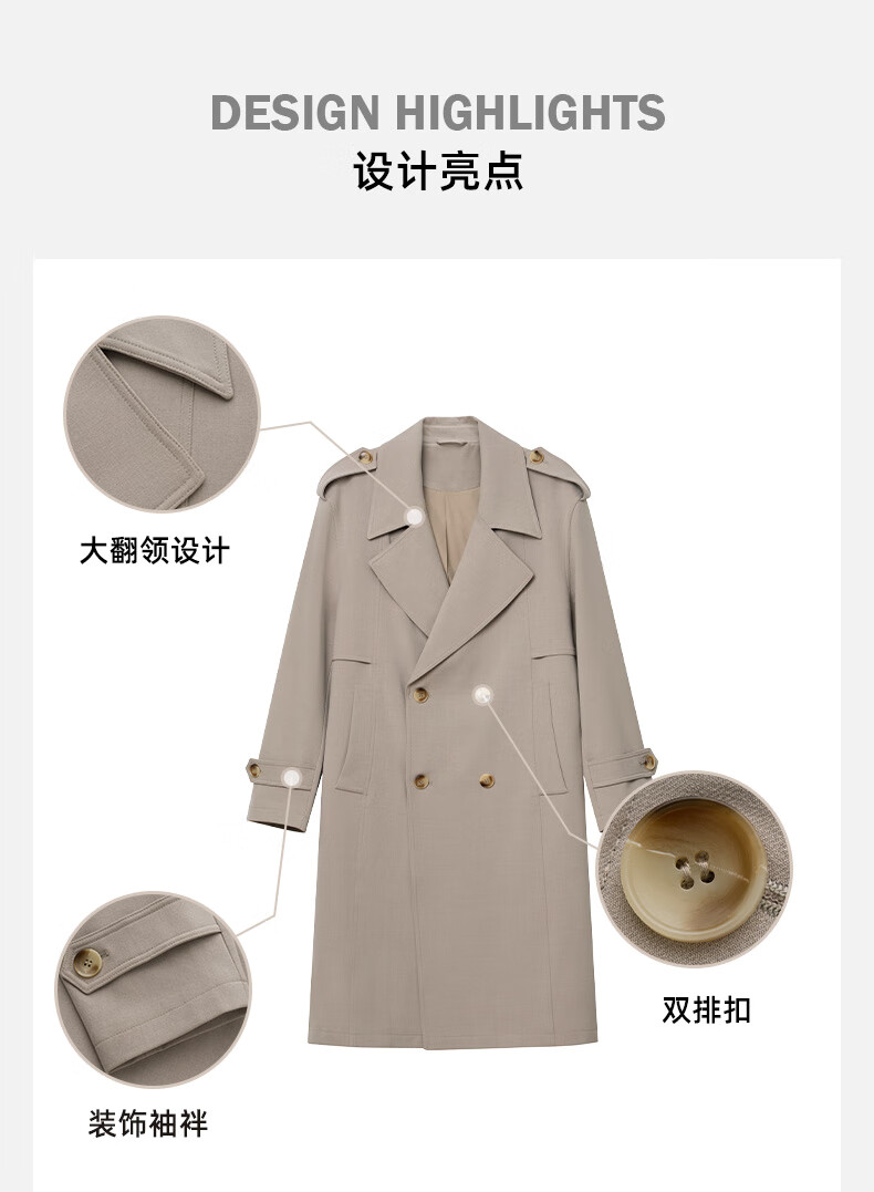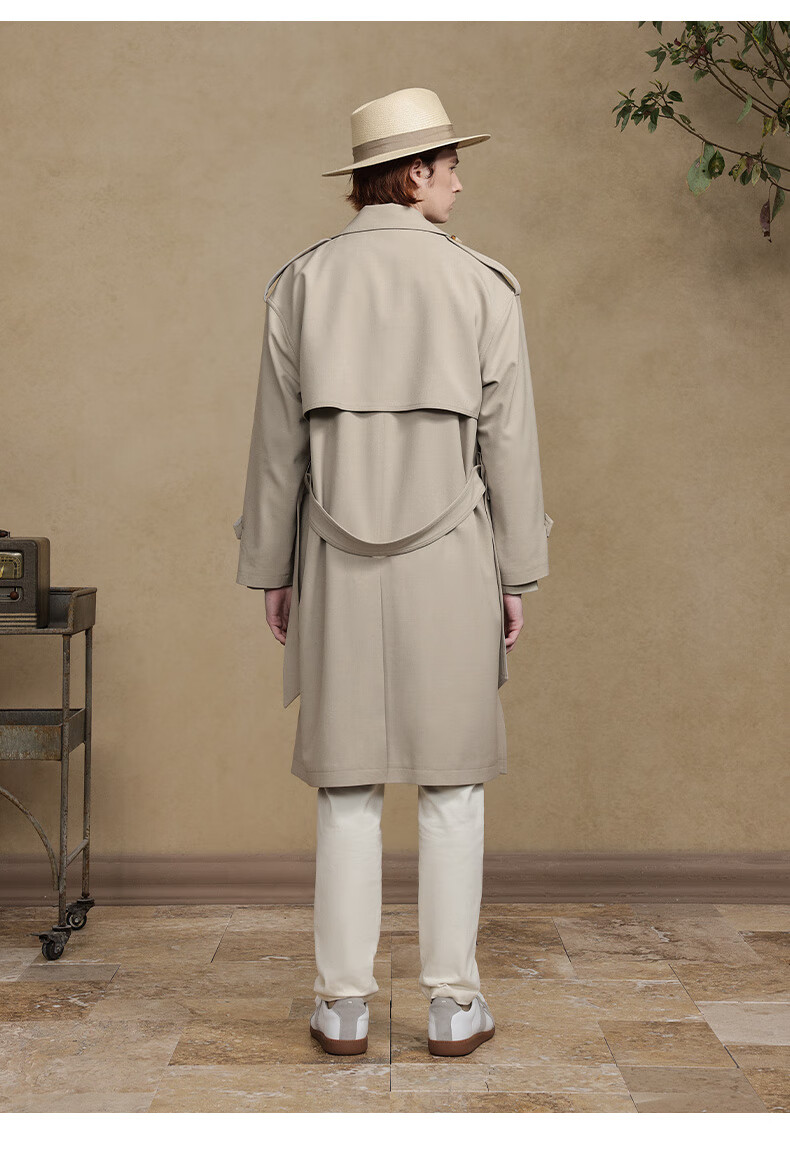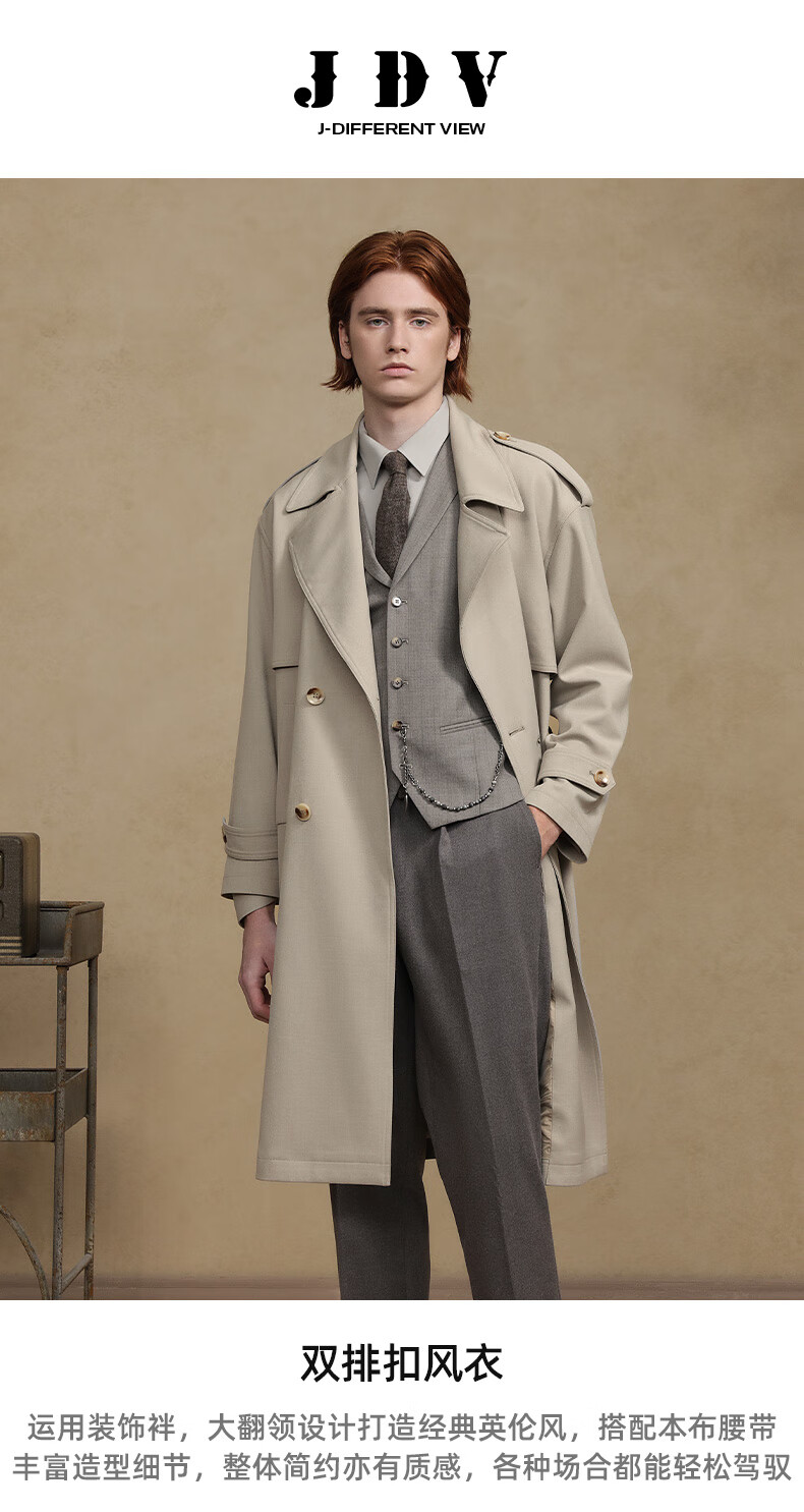 Jiedifan JDV men's clothing store same style autumn new light brown double-breasted windbreaker lace-up jacket WCW4453 light coffee L 175/100C(02)