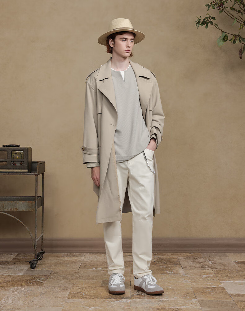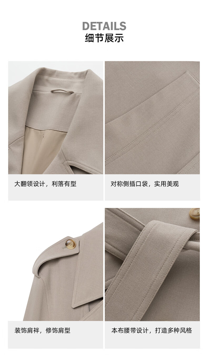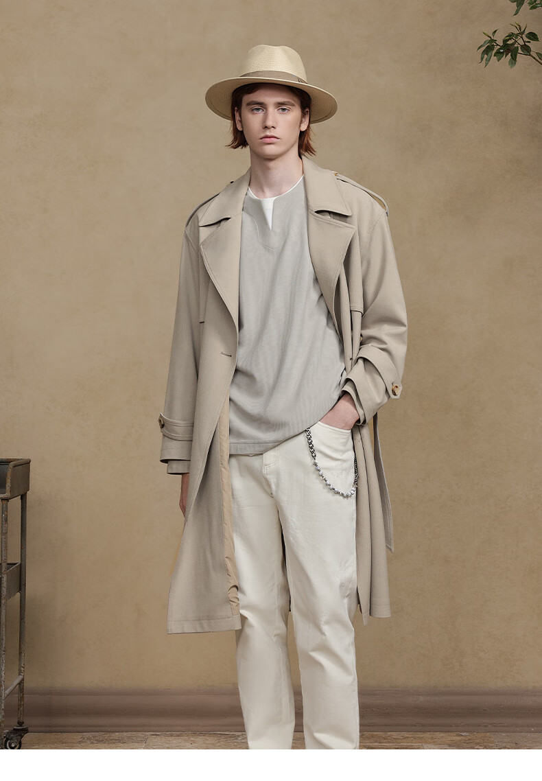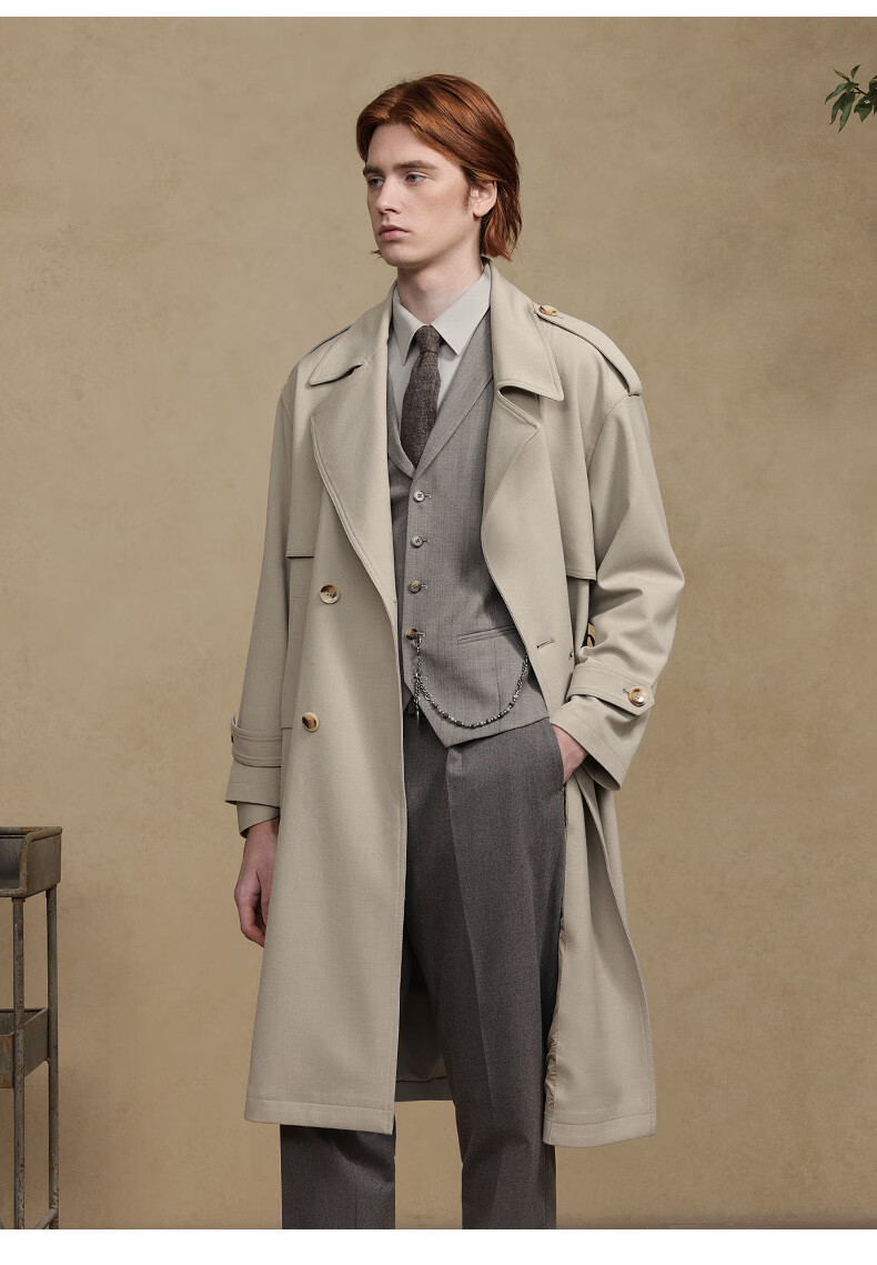 Jiedifan JDV men's clothing store same style autumn new light brown double-breasted windbreaker lace-up jacket WCW4453 light coffee L 175/100C(02)