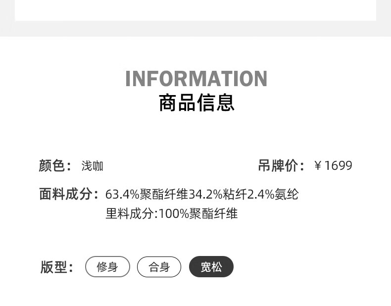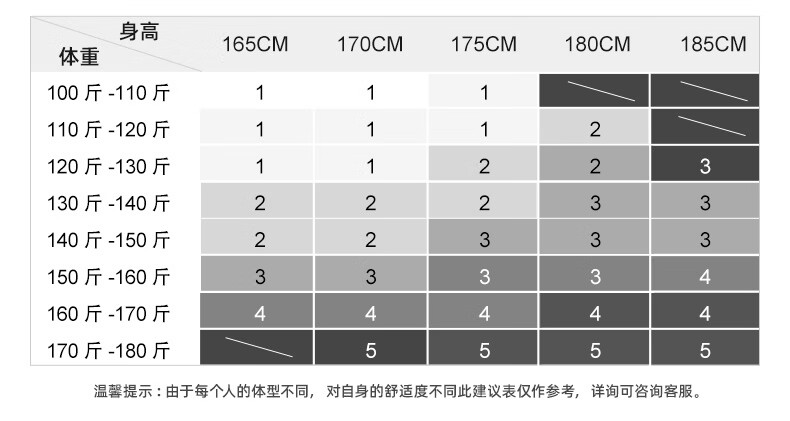 China (cm) 165 / 88-90 170 / 96-98 175 / 108-110 180 / 118-122 185 / 126-130