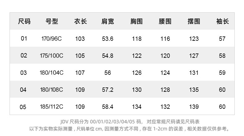 China (cm) 160-165/84-86 165-170 / 88-90 167-172 / 92-96 168-173 / 98-102 170-176 / 106-110
