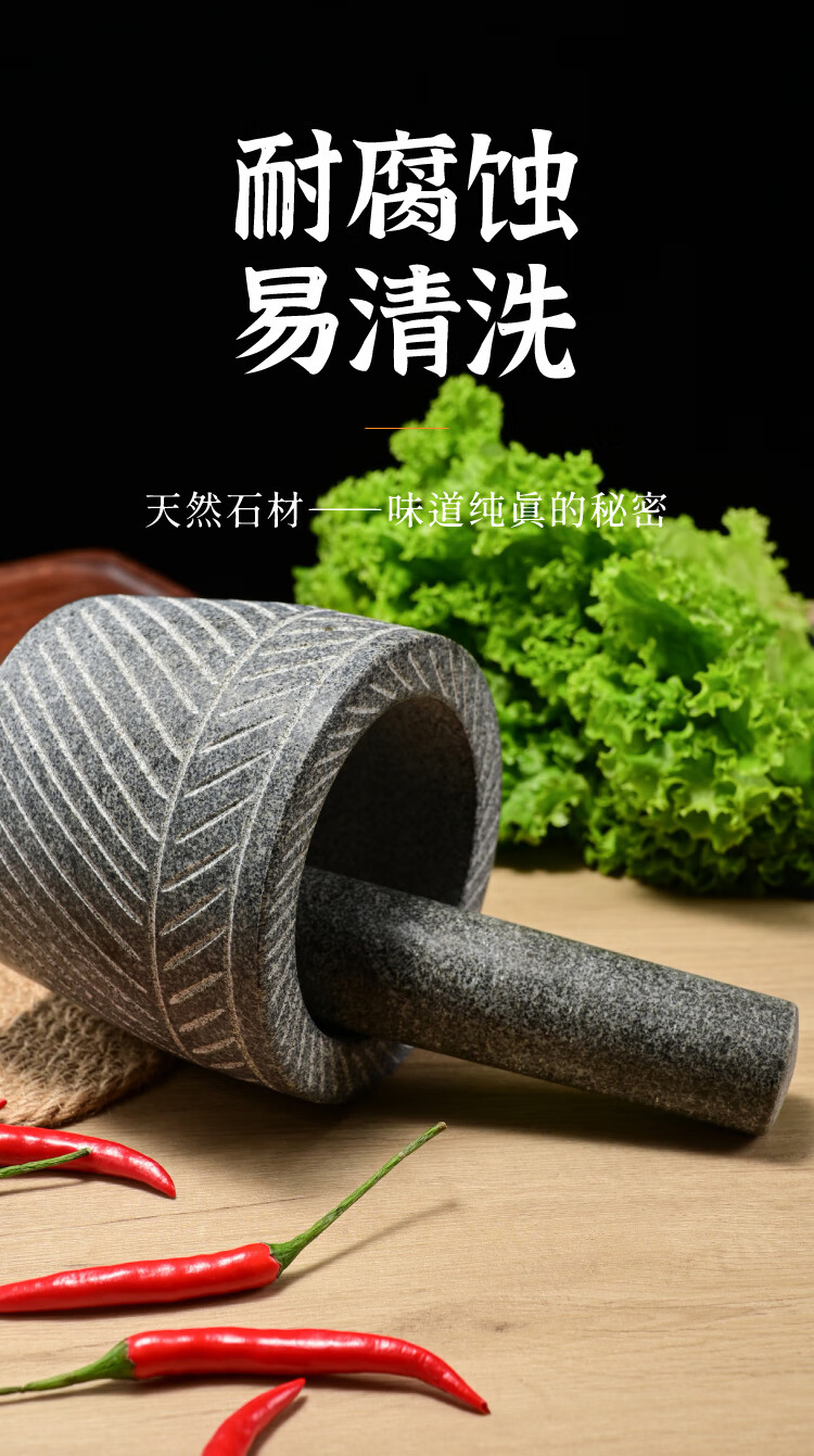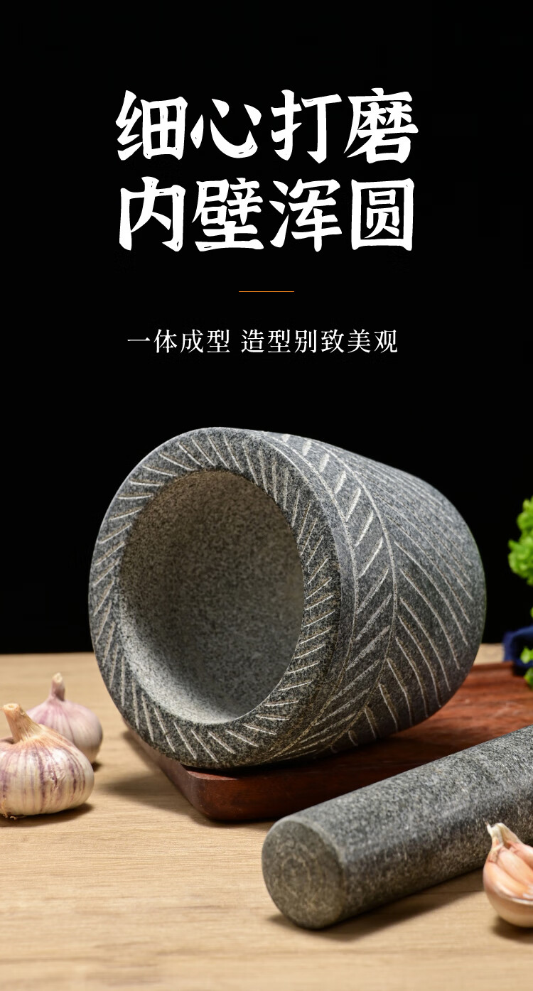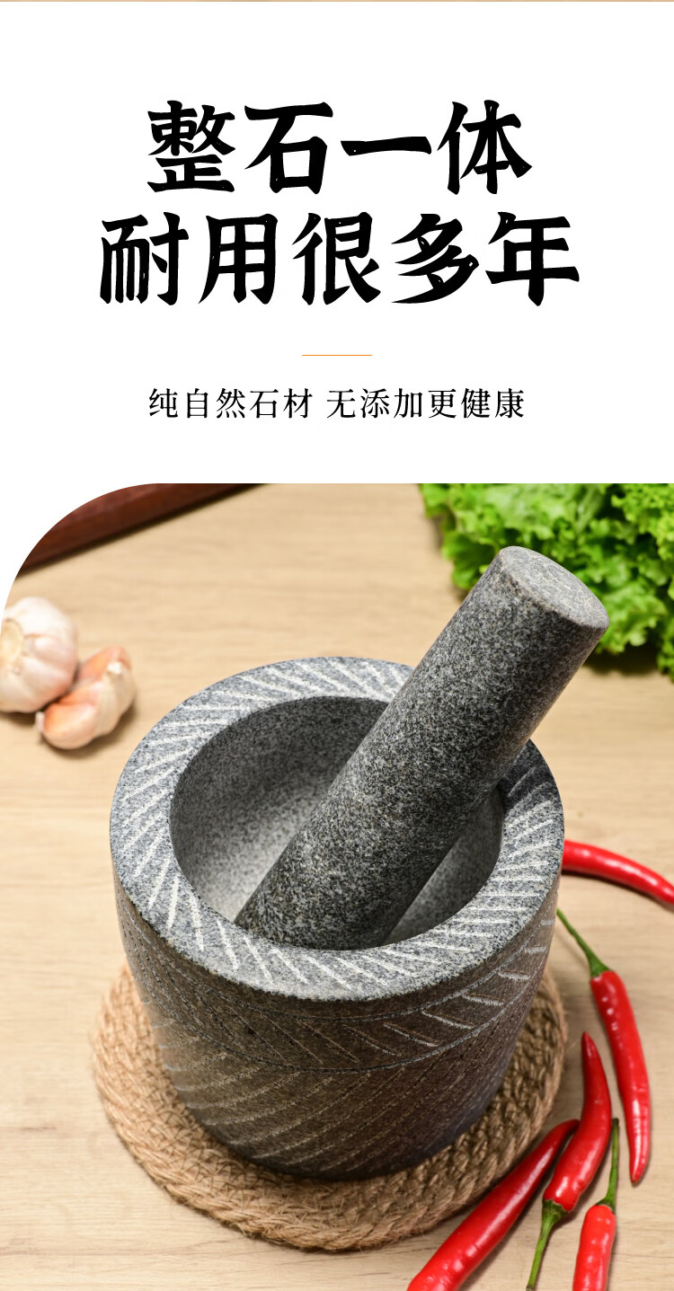 Huili's large hand-made original stone garlic pounder natural household stone mortar pounder medicine jar grinder garlic peeler garlic press garlic mortar large hand-made cylinder-shaped carving with stone hammer