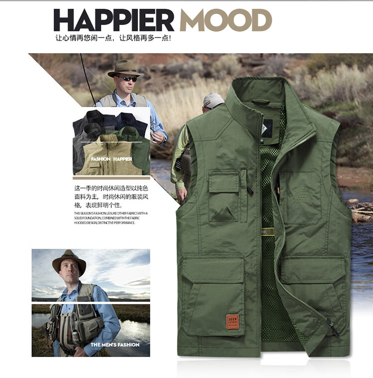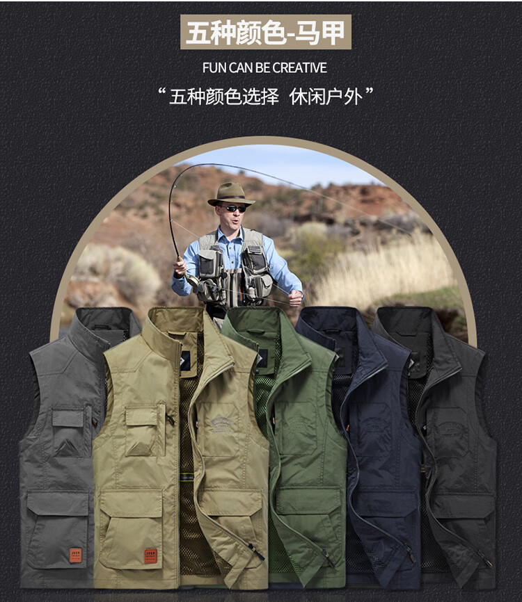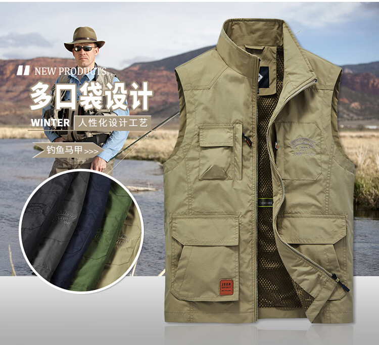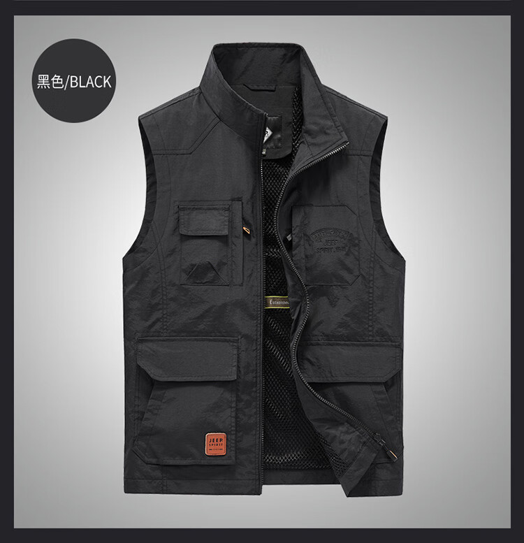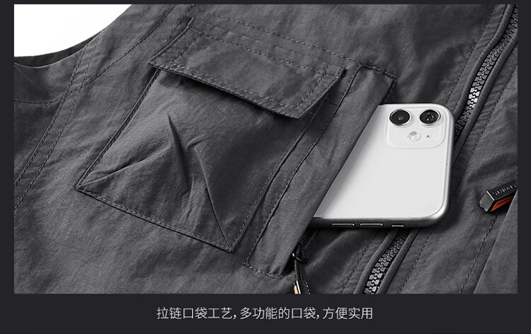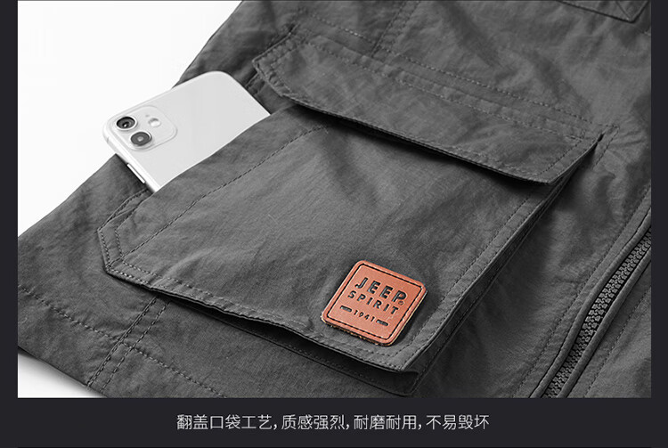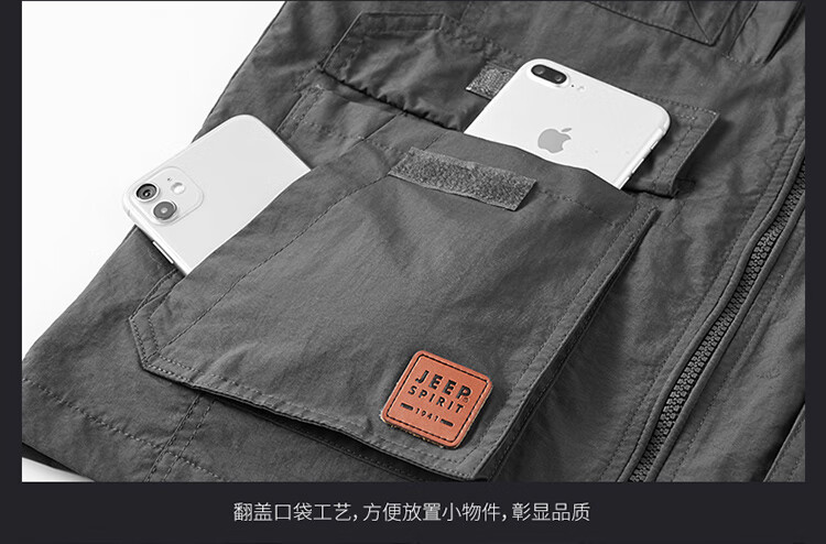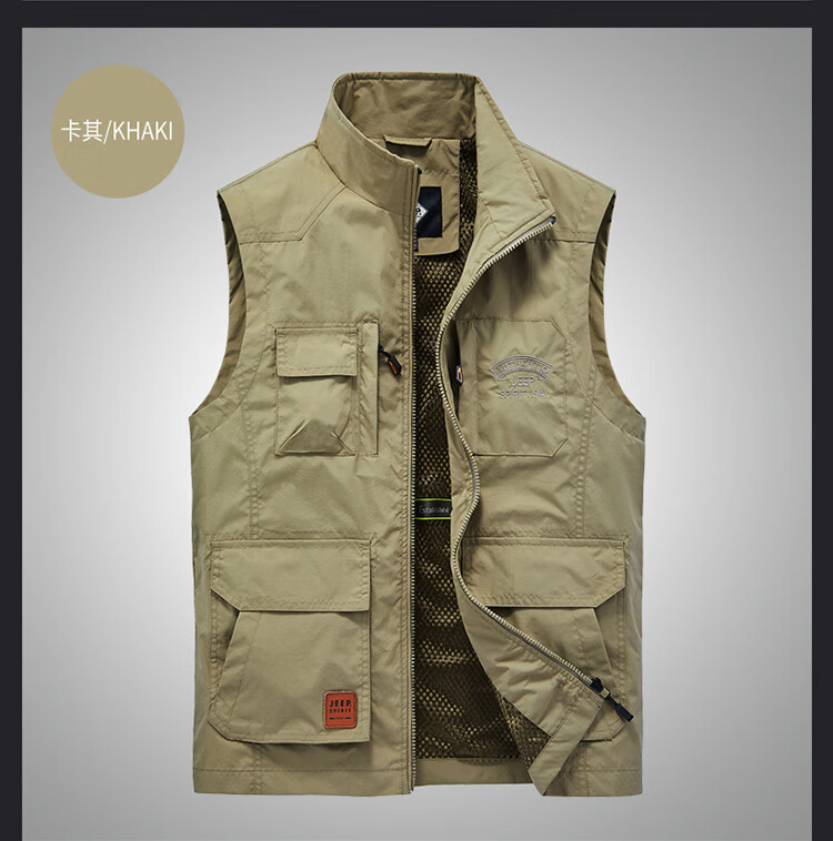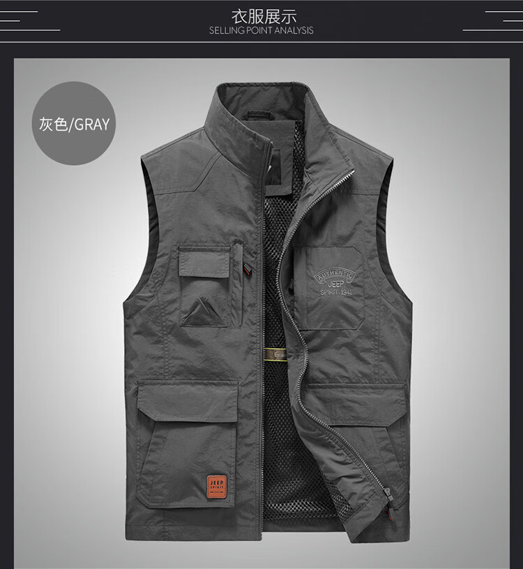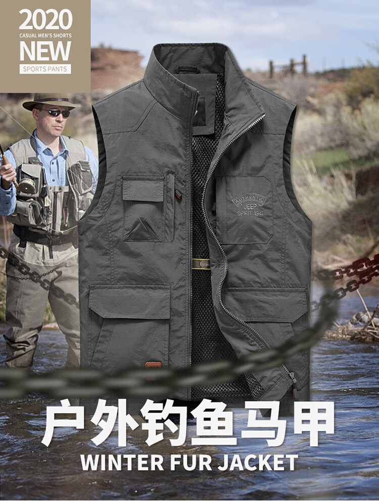 JEEP SPIRIT Jeep Spirit Vest Men's Spring and Autumn Casual Multi-Pocket Workwear Vest Men's Photography Fishing Vest Jacket Gray 2XL 155-170Jin Jin equals 0.5 kg