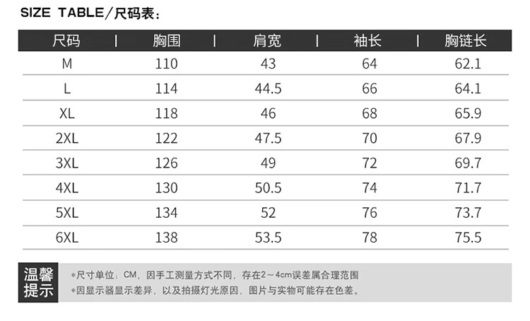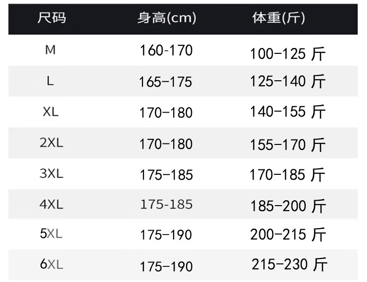 China (cm) 165 / 88-90 170 / 96-98 175 / 108-110 180 / 118-122 185 / 126-130