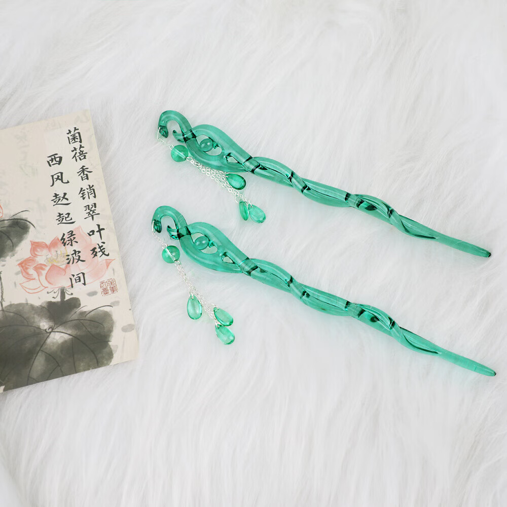 Ancient Nai White Snake Origin Hairpin Xiaobai Same Style Chinese Style Cartoon Bead Hairpin Tassel Step Shake Hairpin Ancient Style Green Hairpin White Snake Floating Hairpin