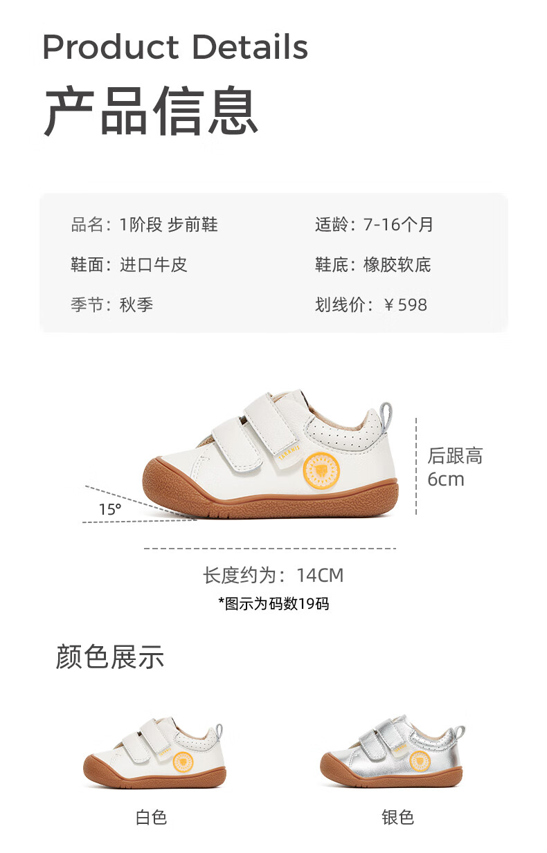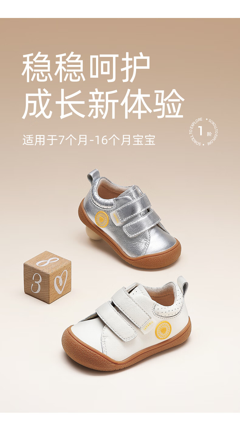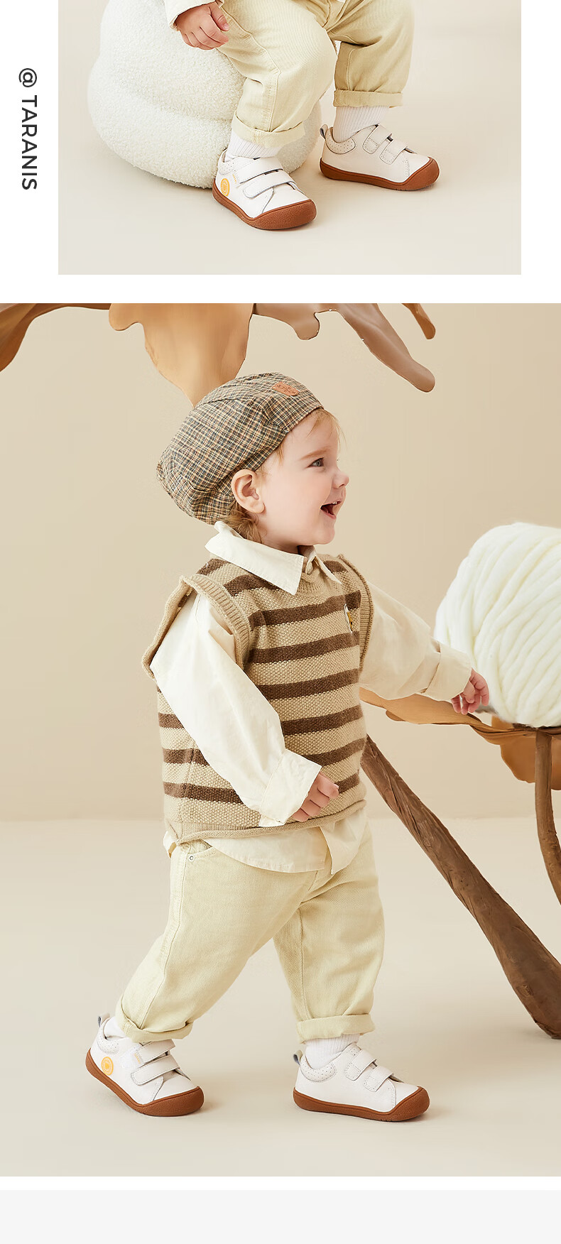 Tyrannis children's shoes autumn new style for boys, infants and girls, casual soft-soled non-slip front shoes, white 23, inner length 14.5cm, suitable for feet 13.3~13.7