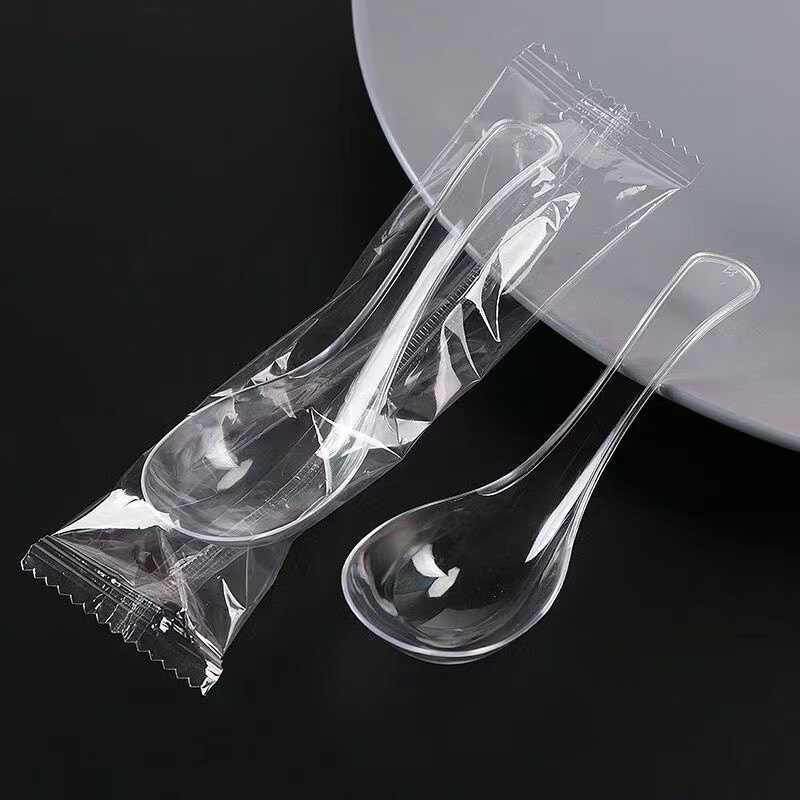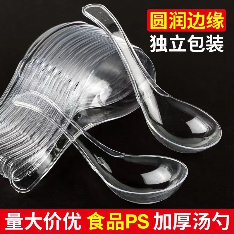 Shining Strong Disposable Spoons Independently Thick Packaged Hard Takeaway Fast Food Spoons Transparent Plastic Spoons Crystal Spoons 200 Count-Individually Packaged Disposable Transparent Spoons