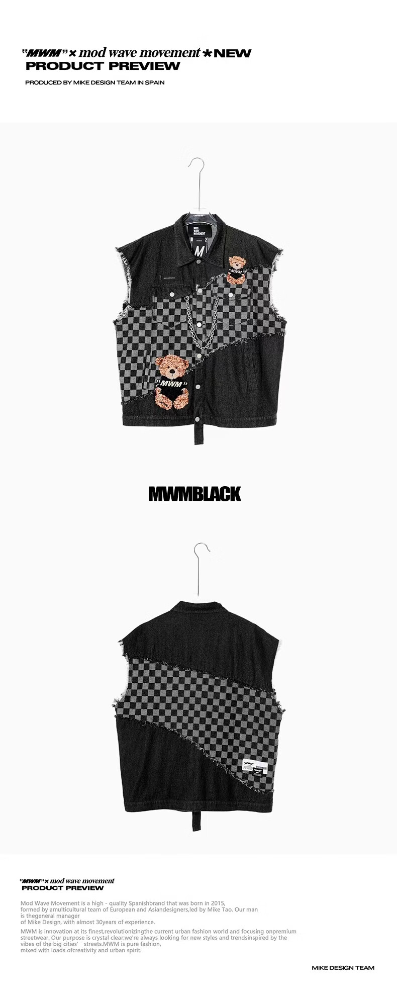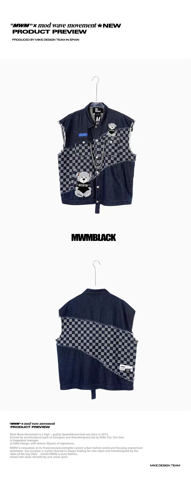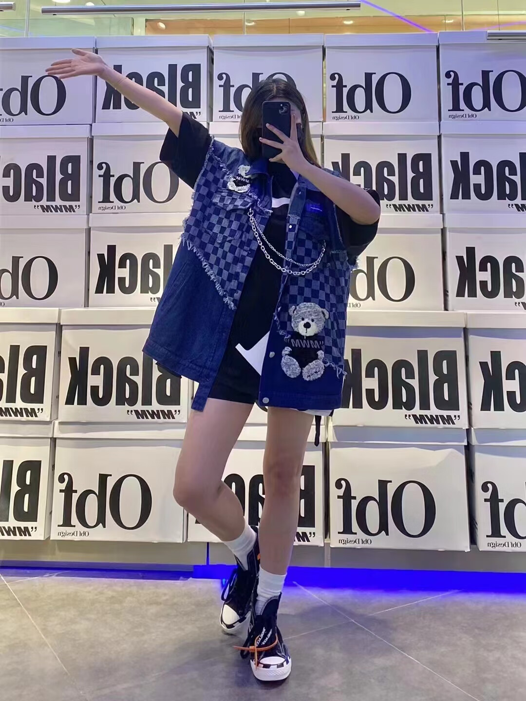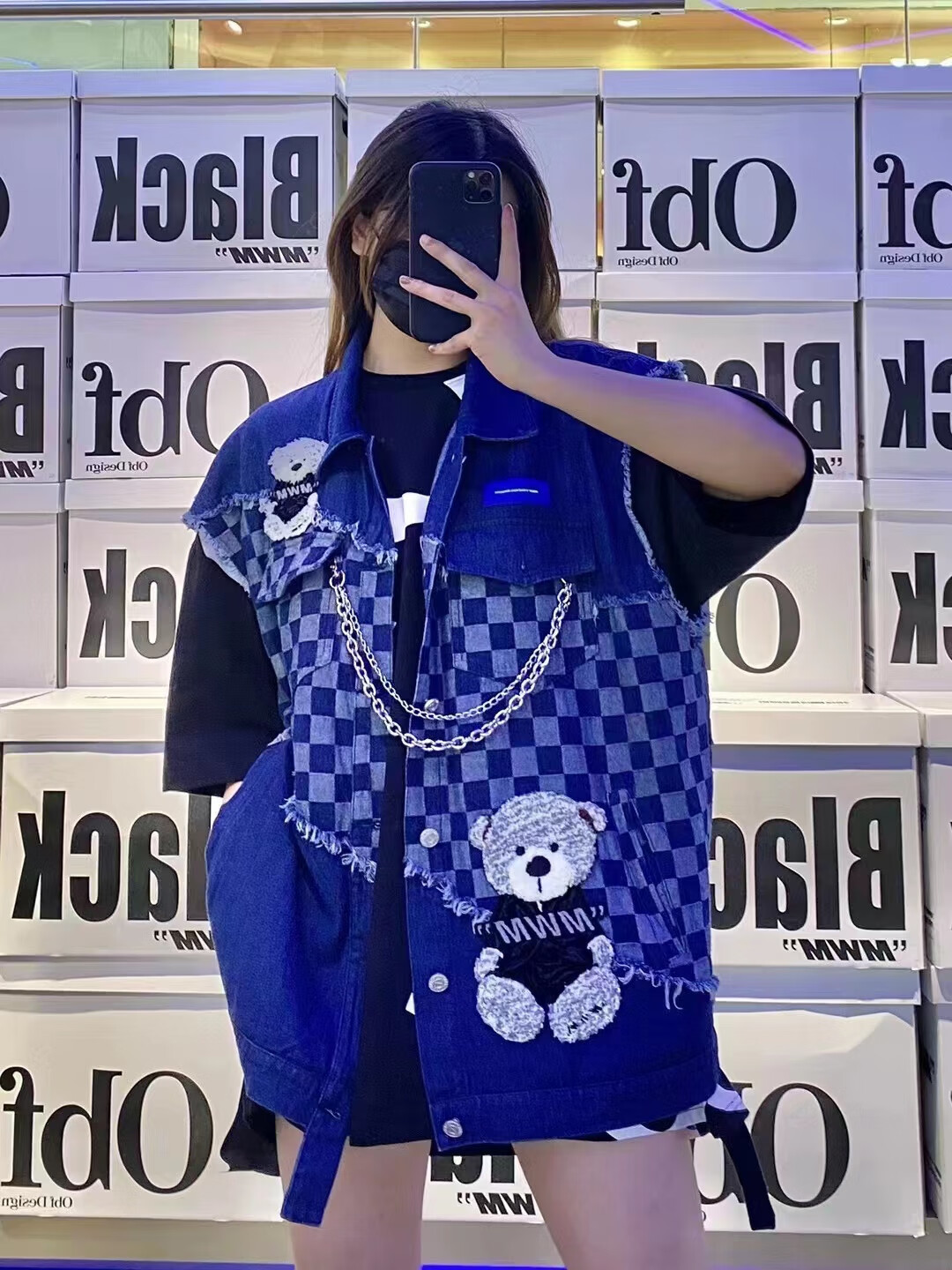 MWM Kimura Ihong OOXOO.NET Chaohui Spanish fashion brand Wang Hedi's same checkerboard denim vest blue M