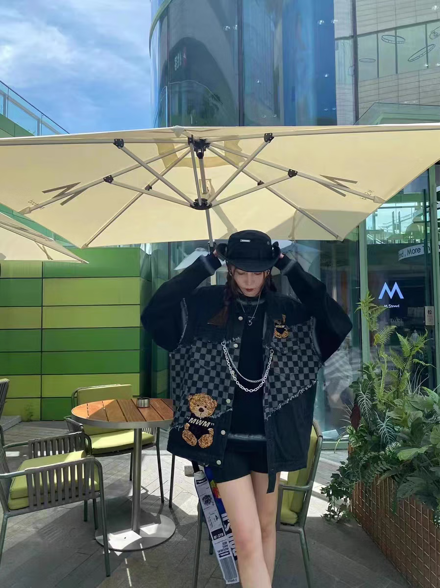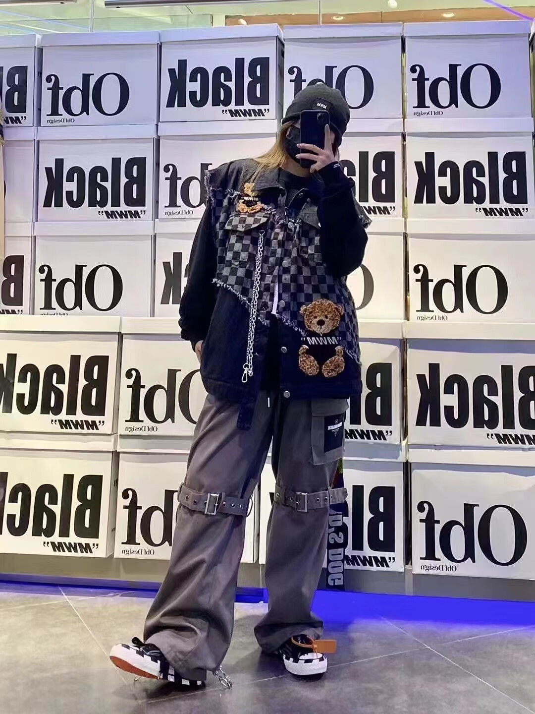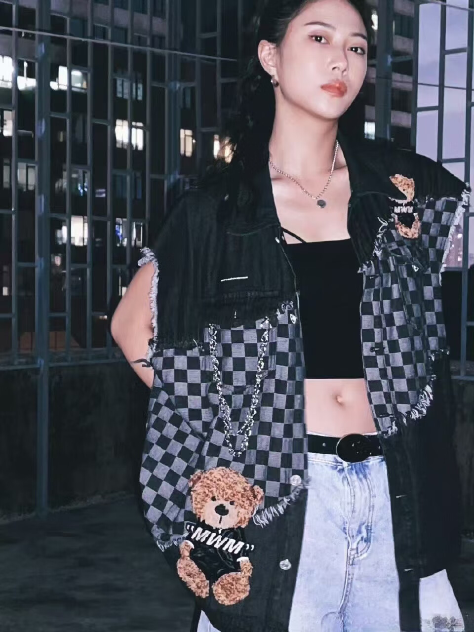 MWM Kimura Ihong OOXOO.NET Chaohui Spanish fashion brand Wang Hedi's same checkerboard denim vest blue M