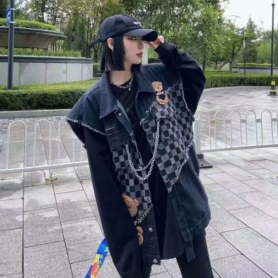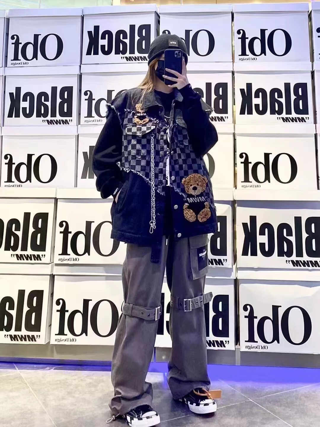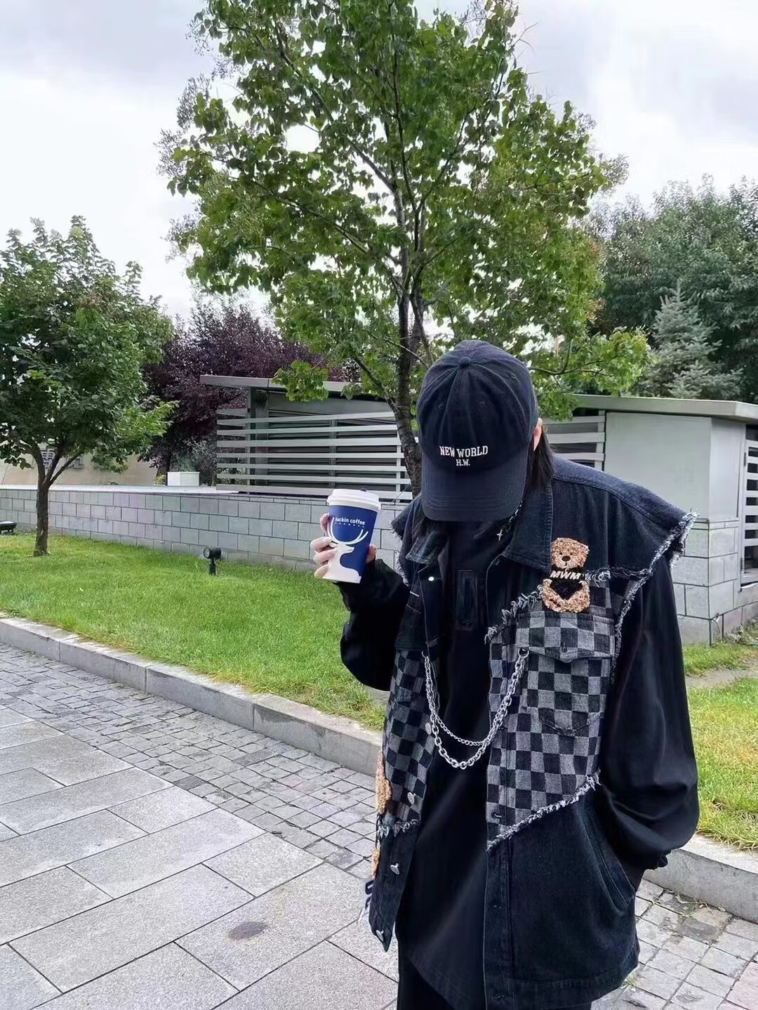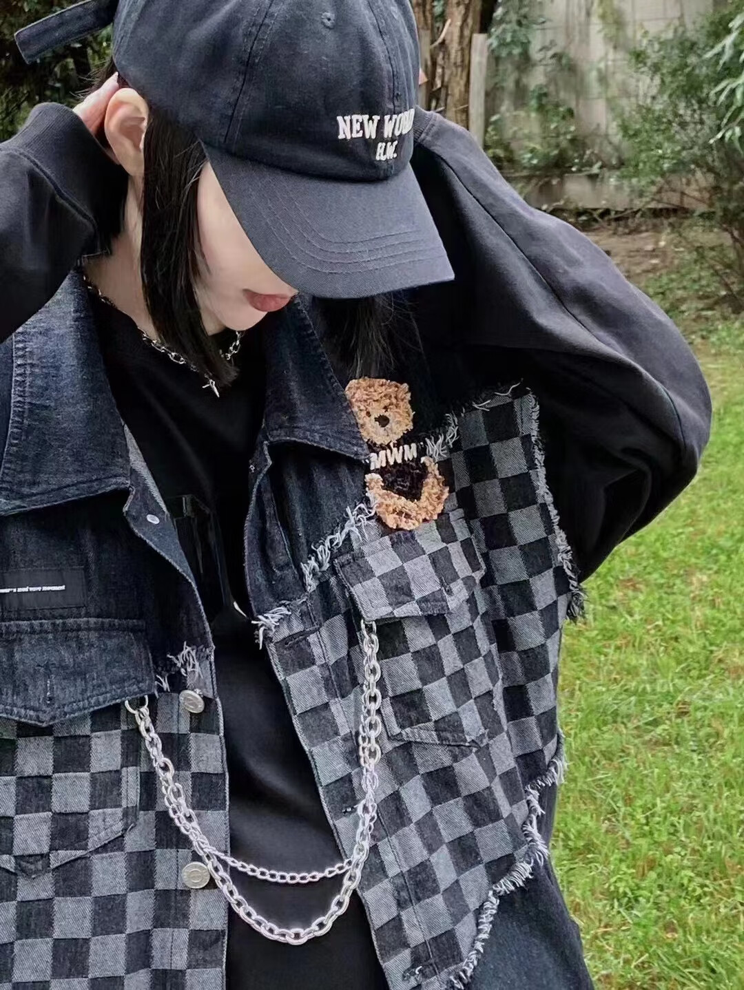 MWM Kimura Ihong OOXOO.NET Chaohui Spanish fashion brand Wang Hedi's same checkerboard denim vest blue M
