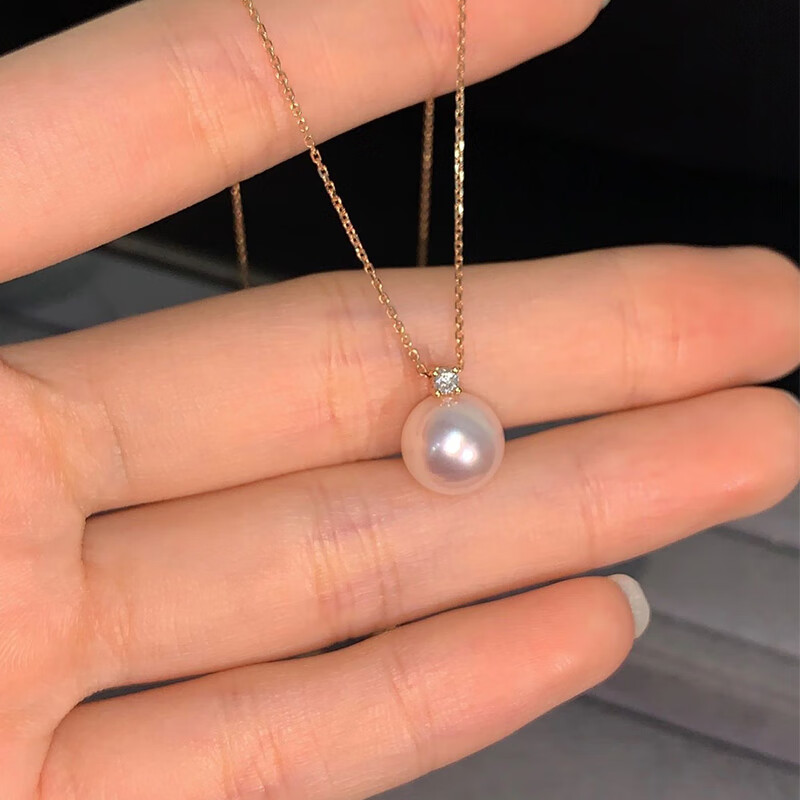 Fat Donglai's same style 18k gold pearl pendant 18K gold diamond princess style Japanese genuine one pearl necklace with diamonds