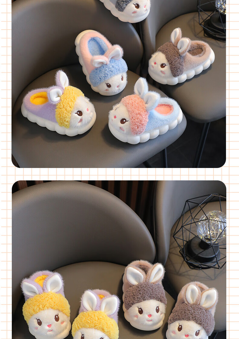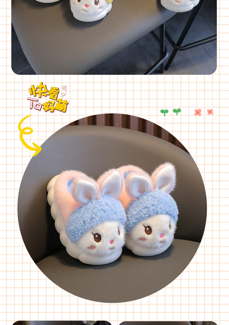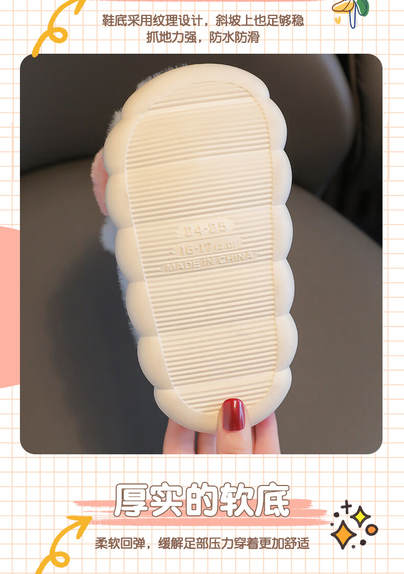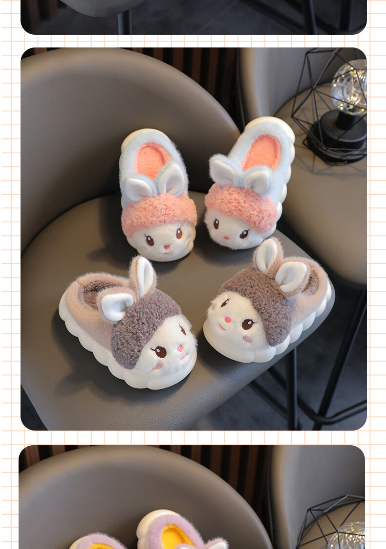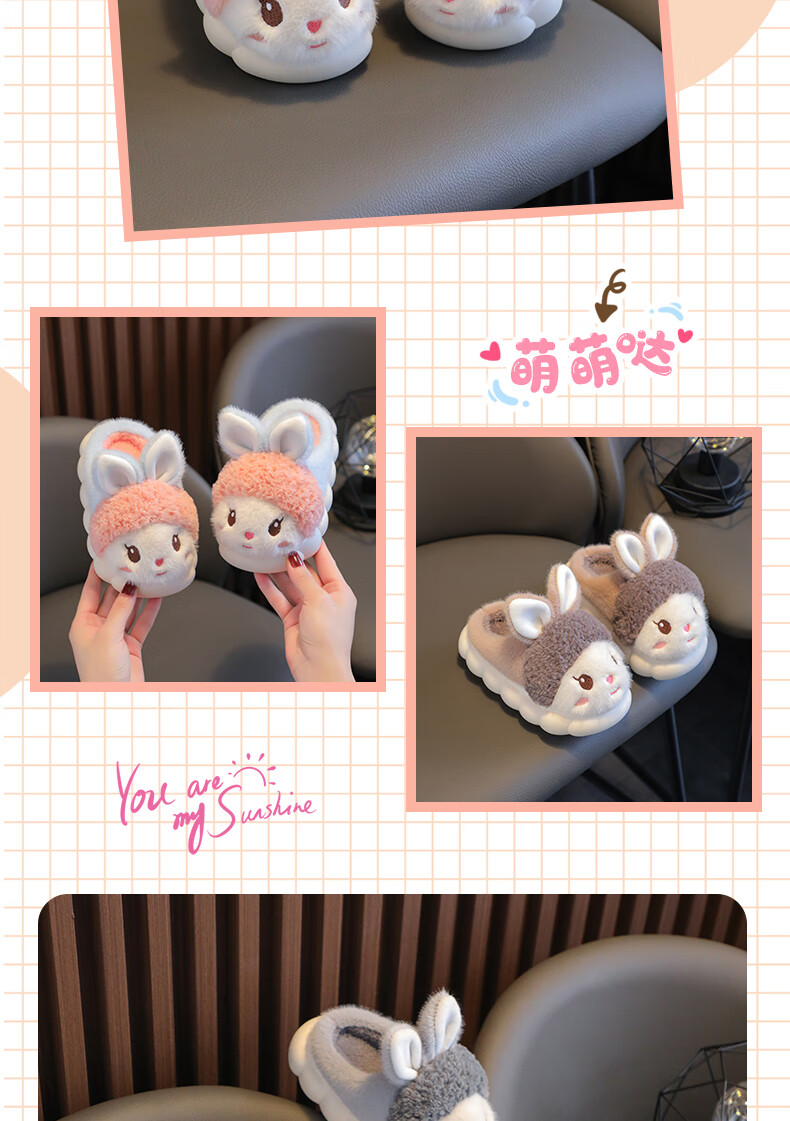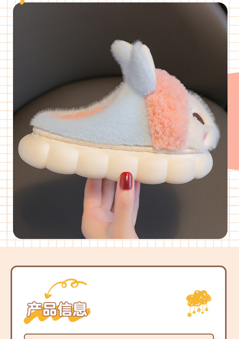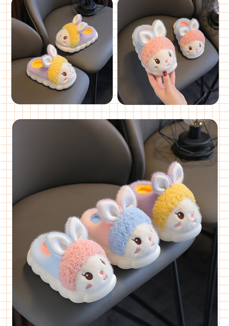 Candy astringent children's cotton slippers, winter plus velvet, thickened, warm, soft sole, non-slip, home cartoon rabbit, boys and girls, baby cotton slippers, heel included, pink, size 22-23, inner length 14cm