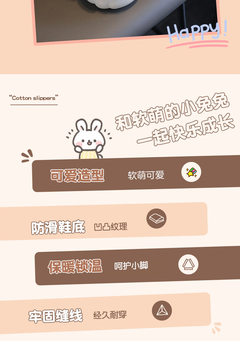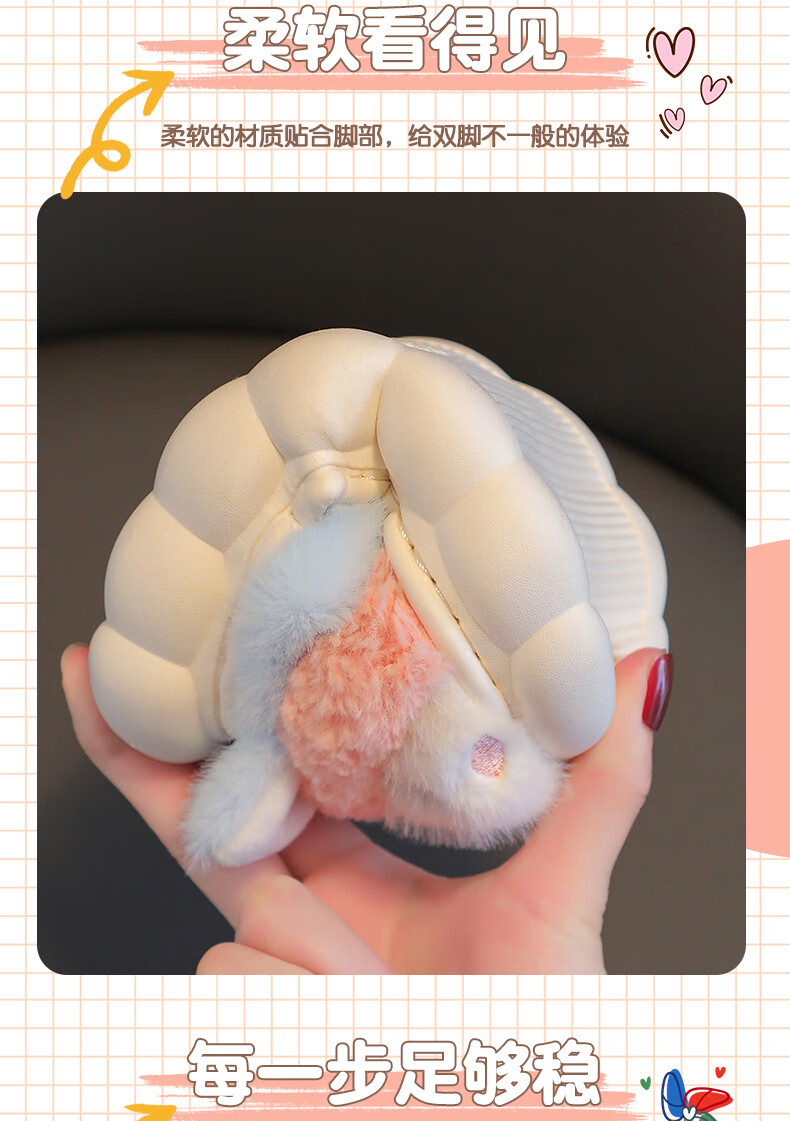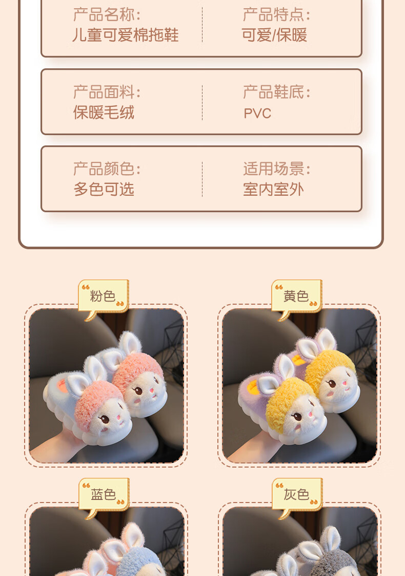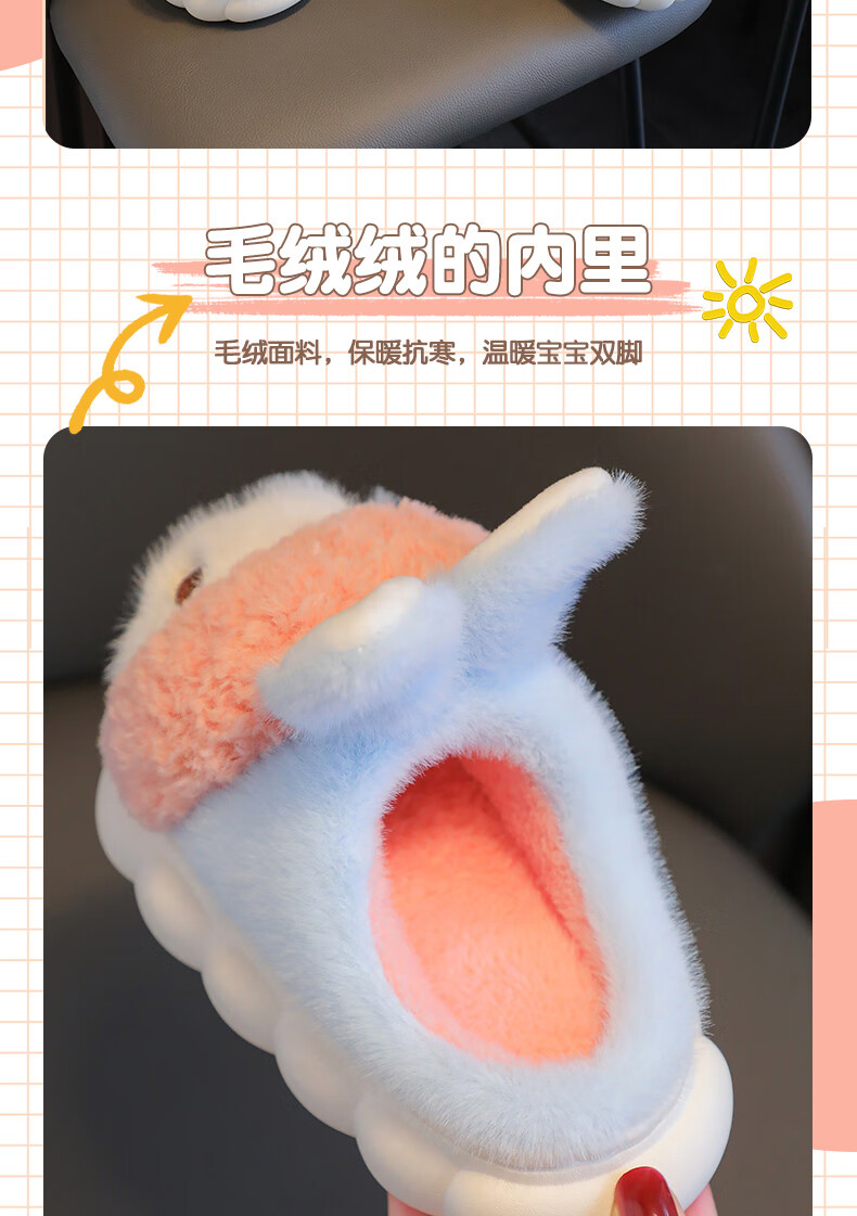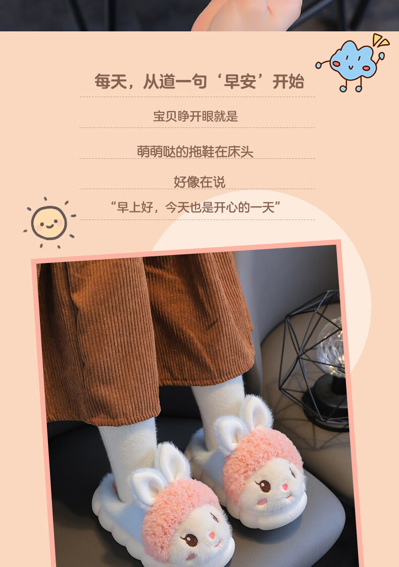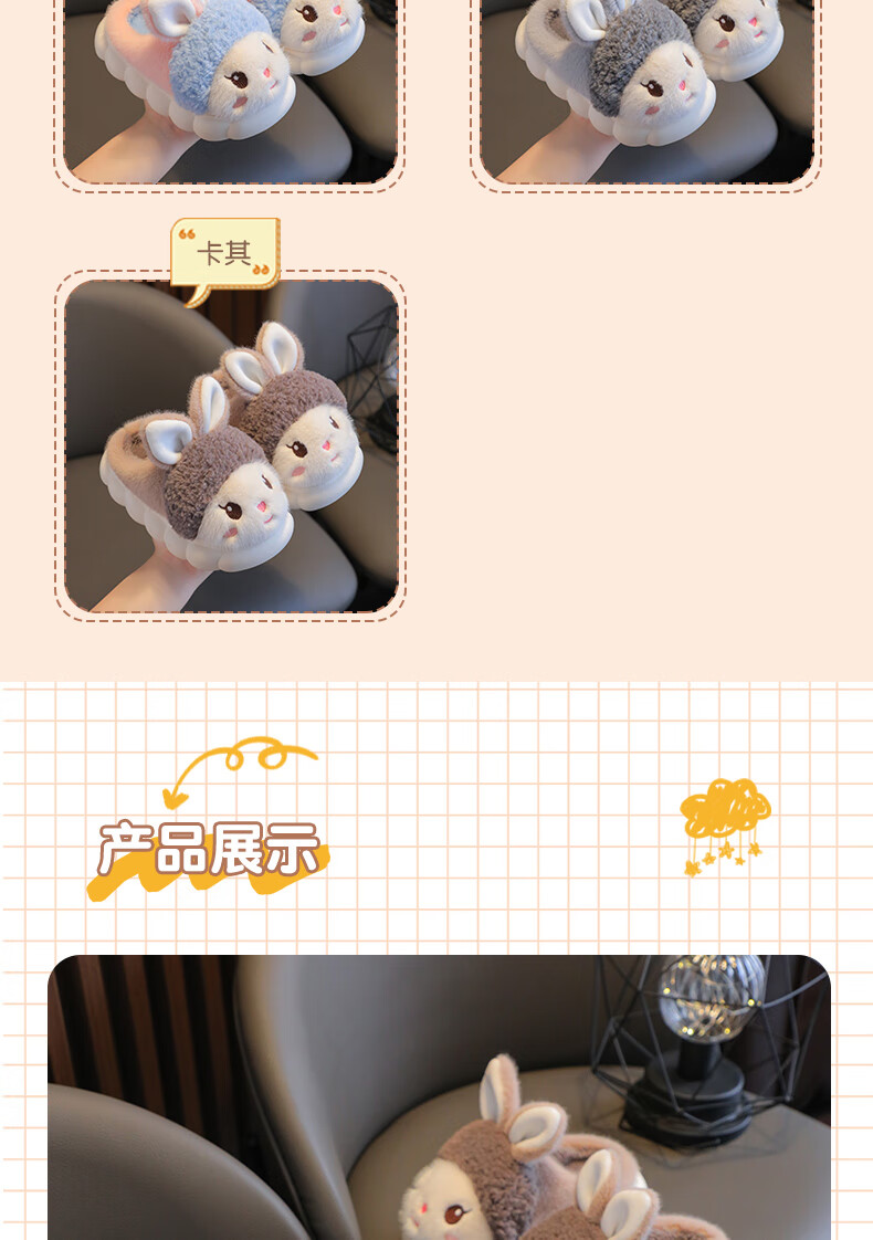 Candy astringent children's cotton slippers, winter plus velvet, thickened, warm, soft sole, non-slip, home cartoon rabbit, boys and girls, baby cotton slippers, heel included, pink, size 22-23, inner length 14cm
