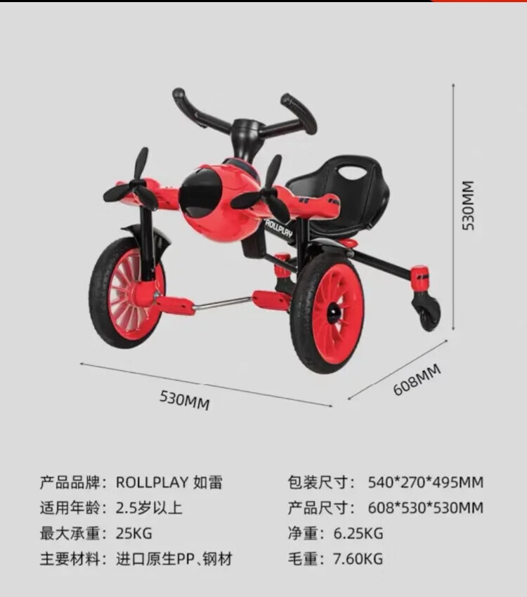 Sam Purchases Rulei Rollplay Children's Foldable Drifting Airplane Car Tricycle Rideable Toy Car Sam Purchases (2-5 years old, weight within 50)