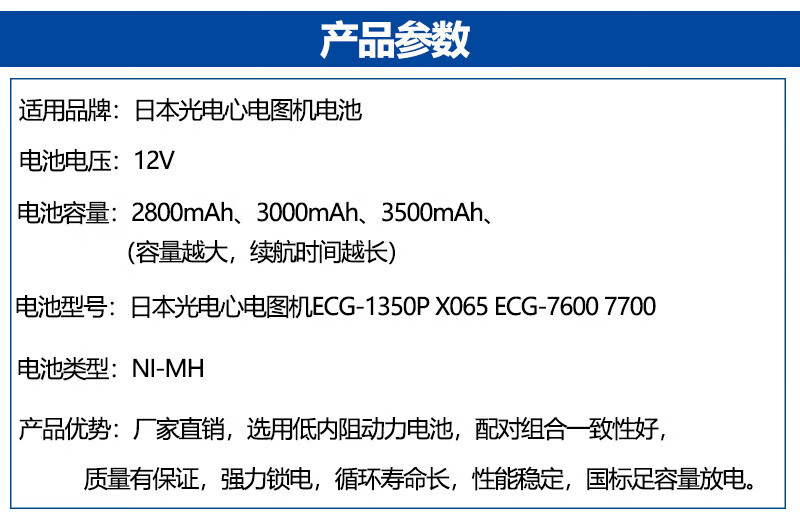 ECG-1350P ECG-7600/7700 X065 electrocardiograph 12V battery pack 12V 2800mAh