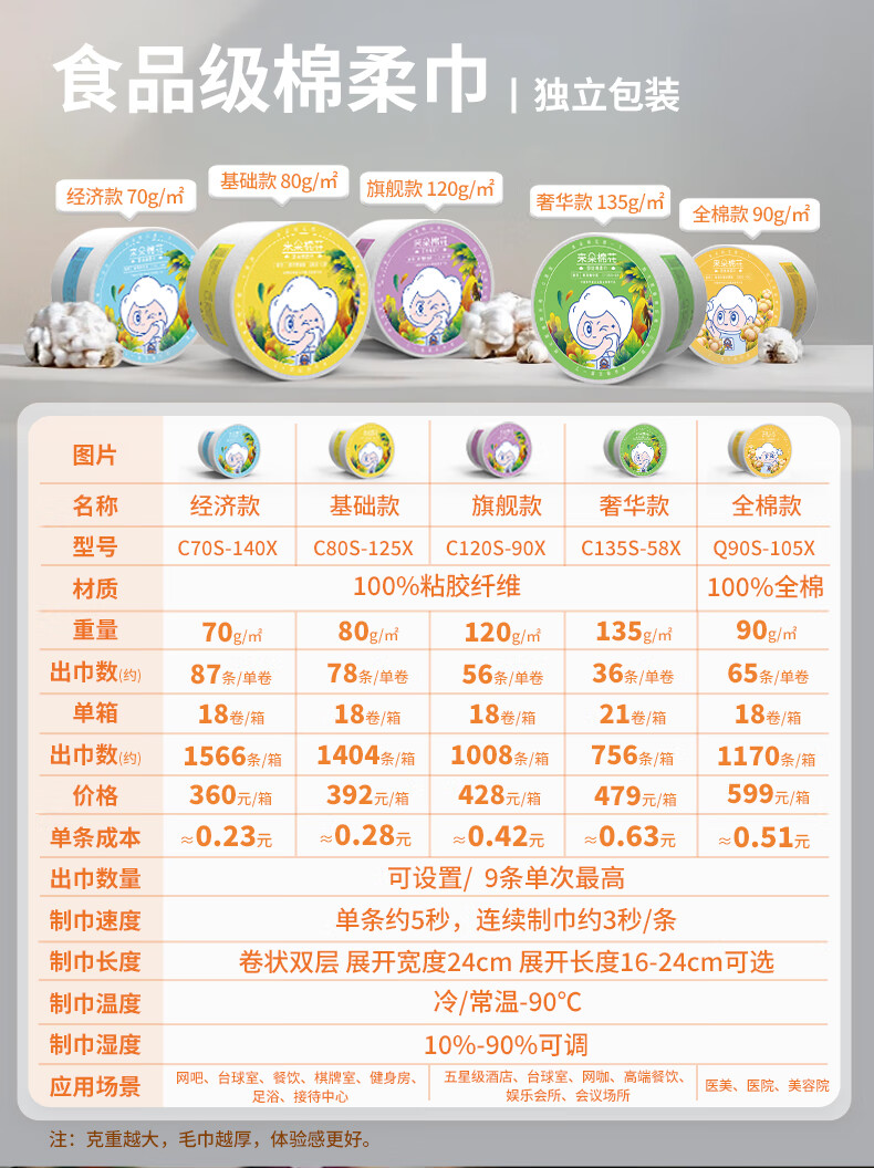 LADOCOTTON Cotton Smart Heated Towel Machine Towel Disposable Towel Heating Cabinet Hotel Club Special Catering Billiard Hall KTV Beauty Salon Internet Cafe E-Sports Wet Wipes Q6 Commercial Q6 Economic Towel 18 Rolls/Box C70S-140X