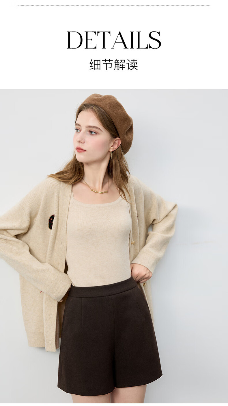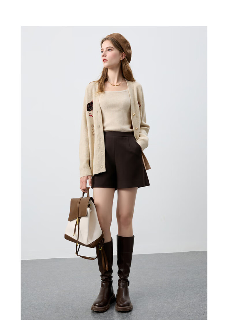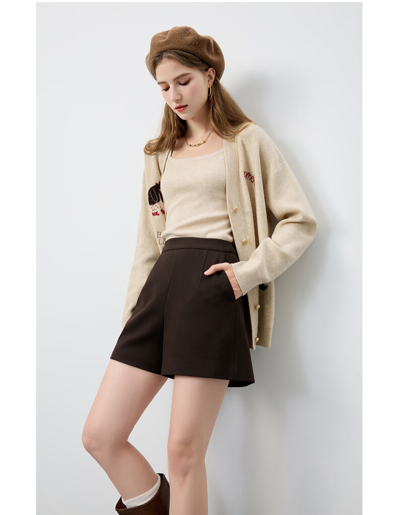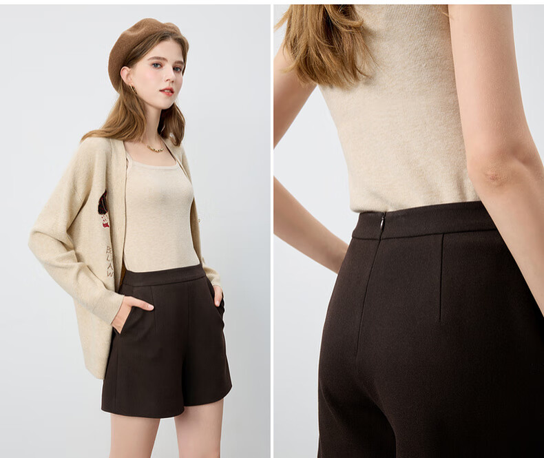 Three-color autumn casual shorts, high-waisted, slimming, straight wide-leg pants, suit pants, commuter women, brown S 155/64A