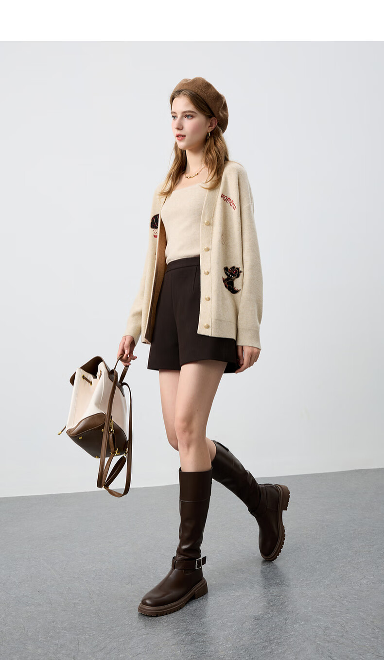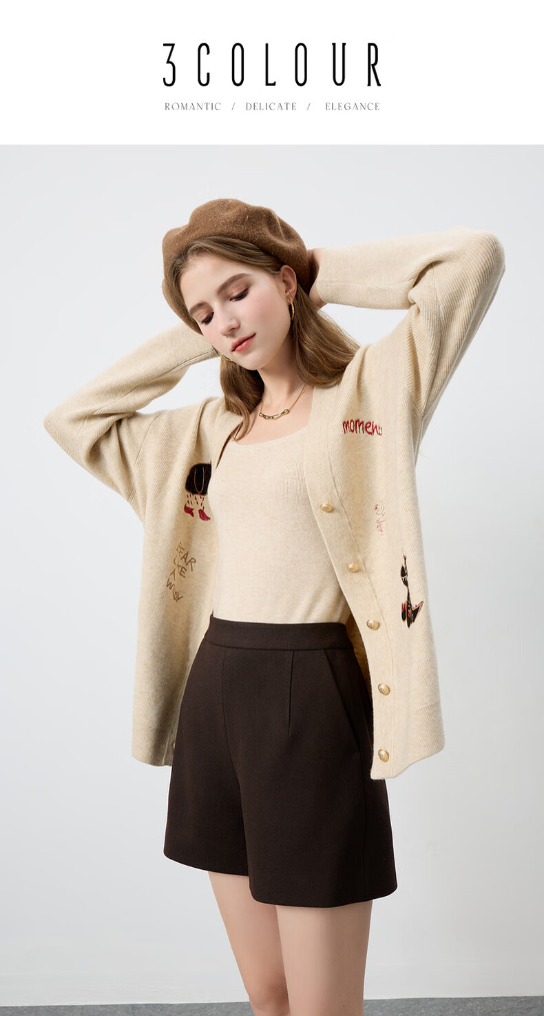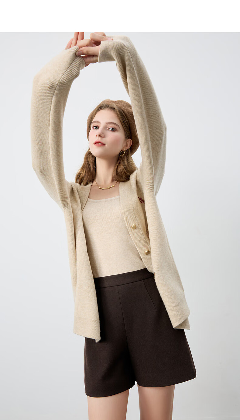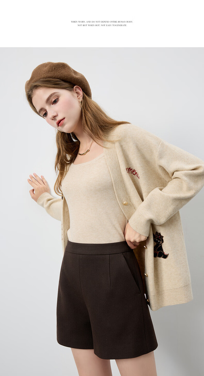 Three-color autumn casual shorts, high-waisted, slimming, straight wide-leg pants, suit pants, commuter women, brown S 155/64A