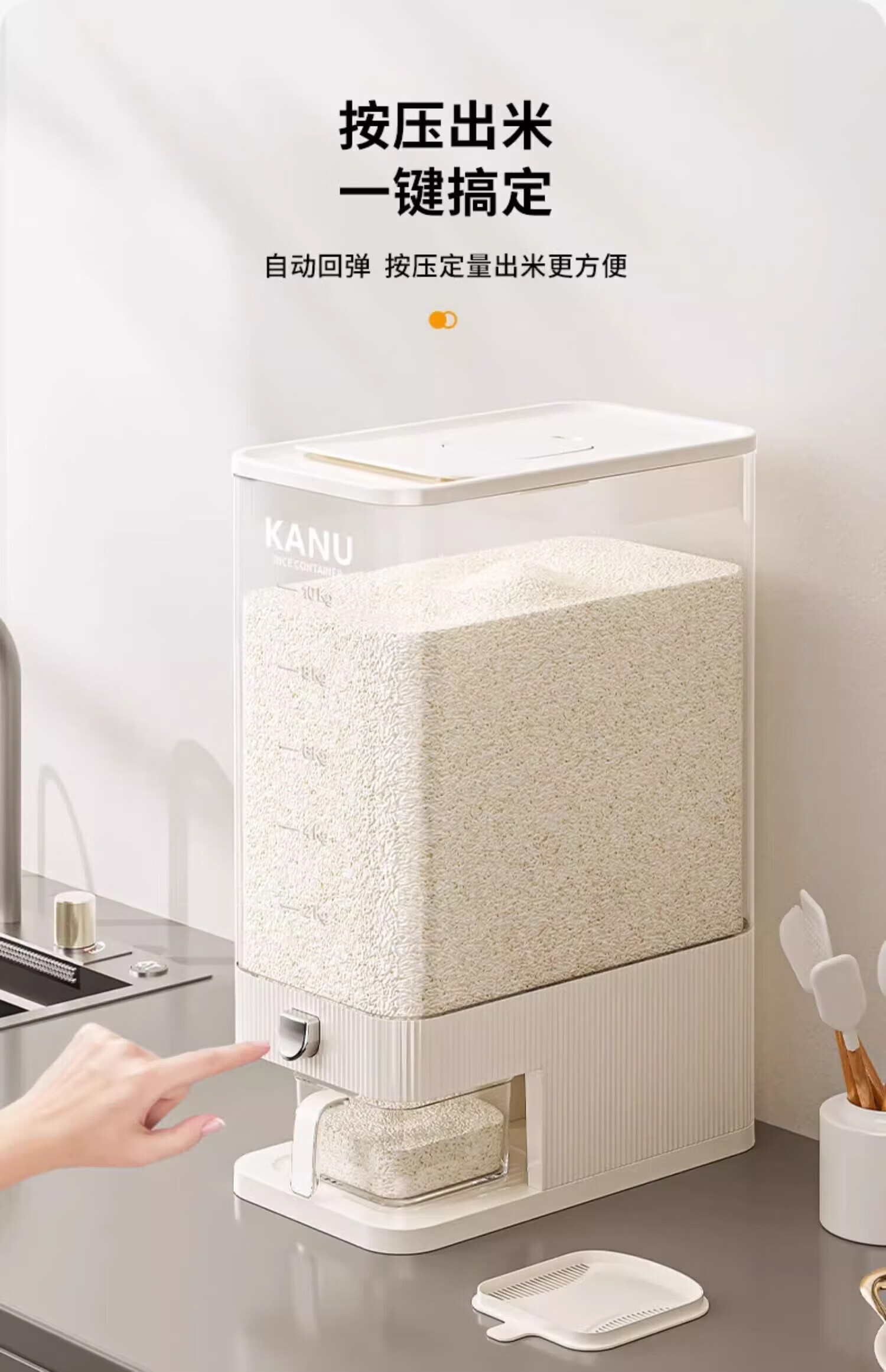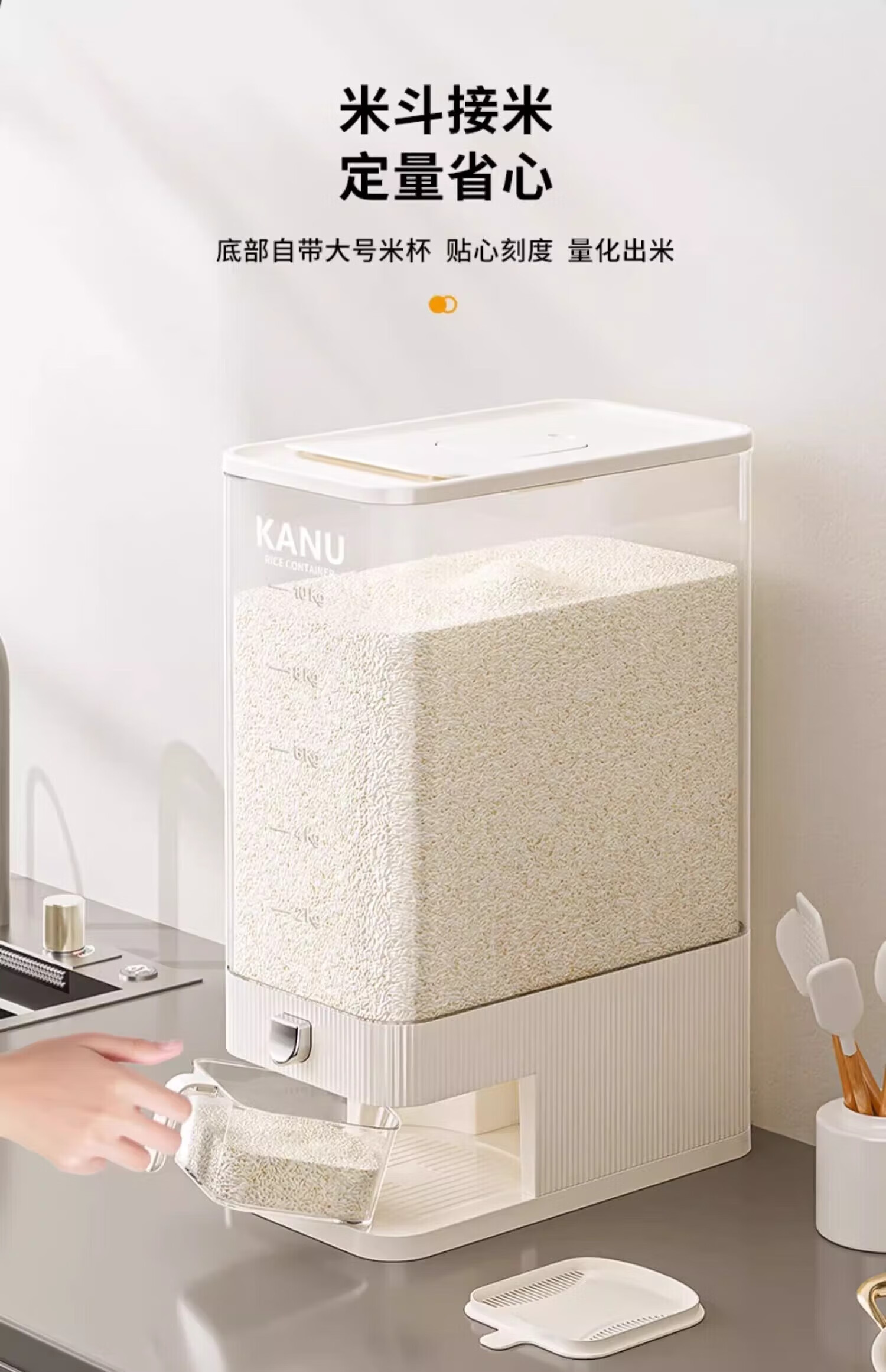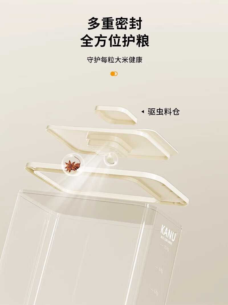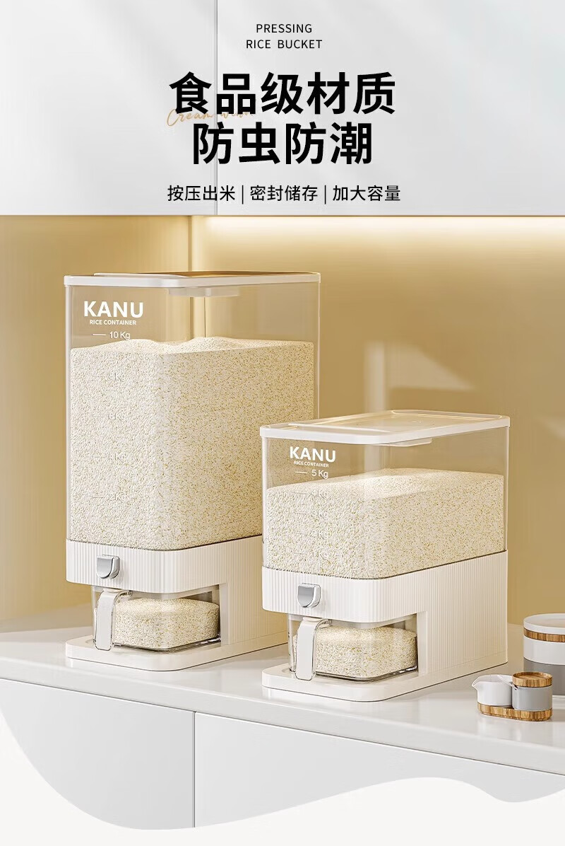 YOUQIN rice bucket household 2025 new insect-proof and moisture-proof sealed rice tank rice storage rice box rice grain storage box 20Jin Jin equals 0.5kg light luxury model cream white