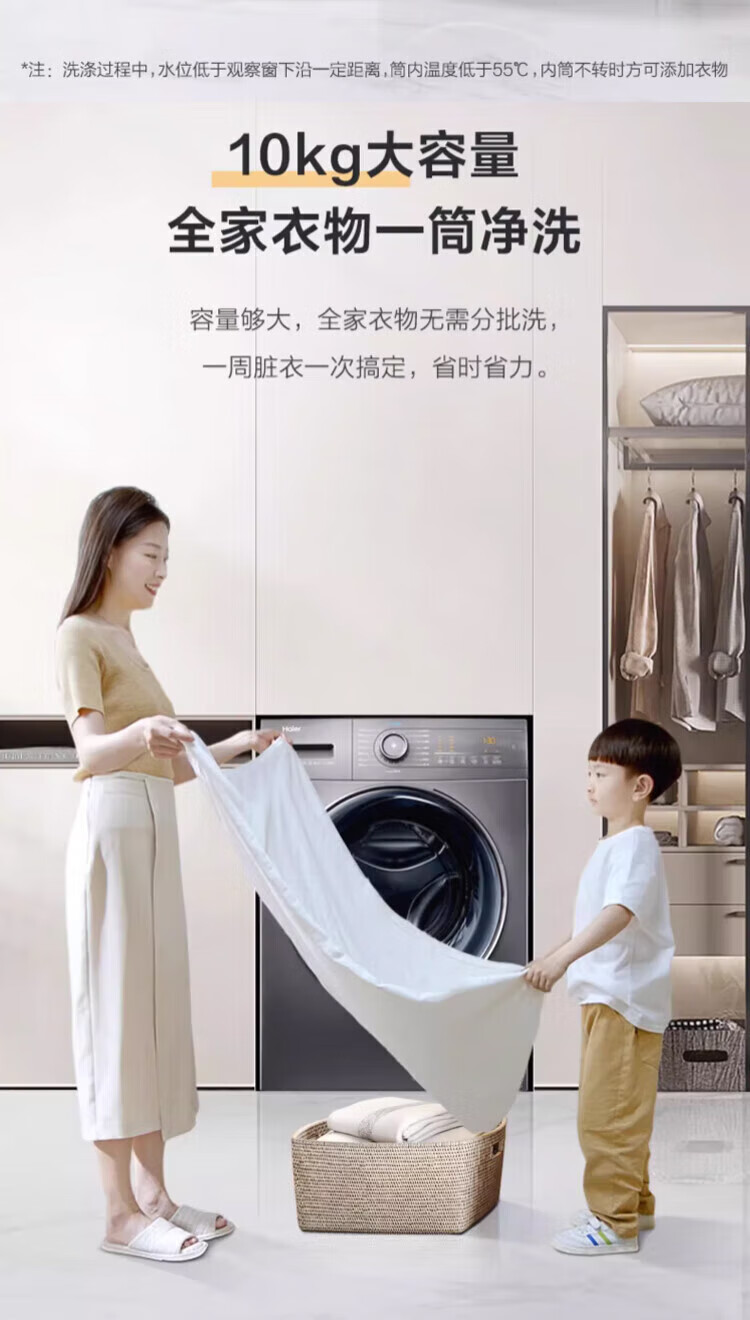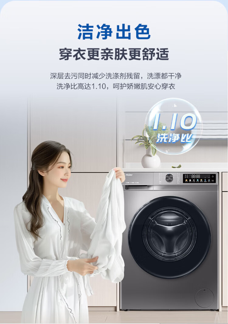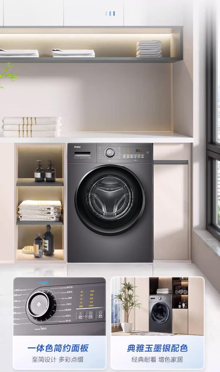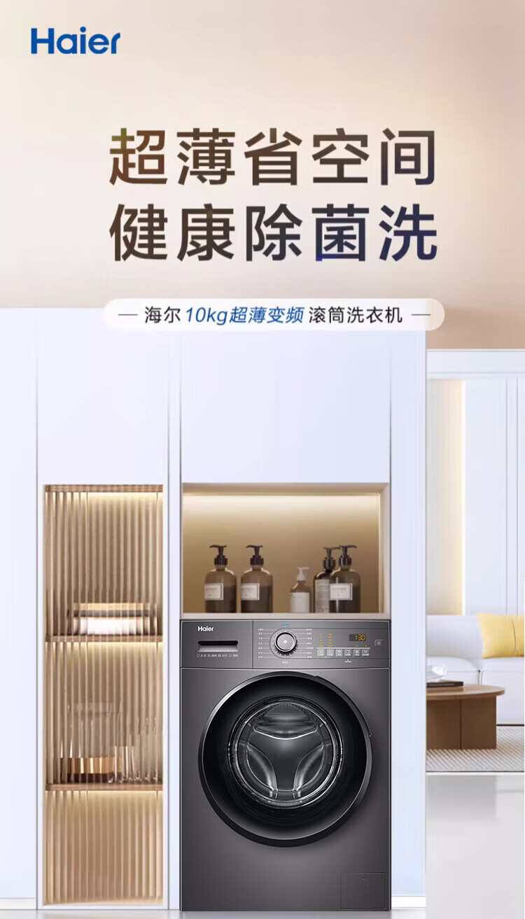 Haier ultra-thin drum washing machine, fully automatic 10kg large capacity, home rental for lazy people, frequency conversion, bacteria mite removal, first-level energy efficiency, 20% national subsidy for home appliances, integrated washing and dehydration, high temperature barrel self-cleaning + antibacterial window mat