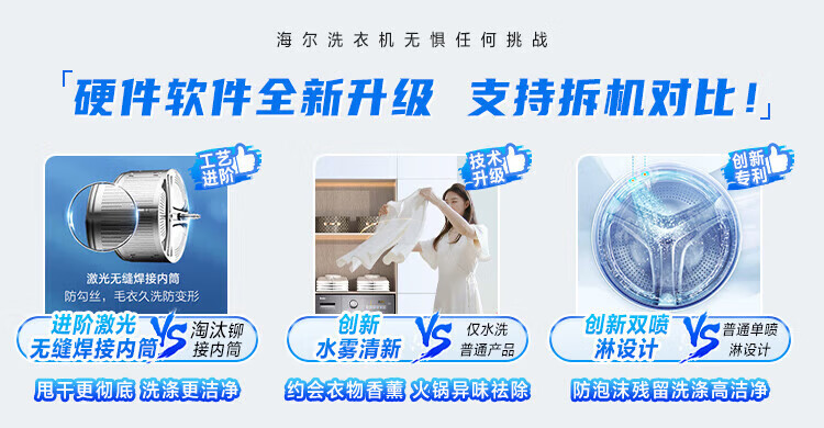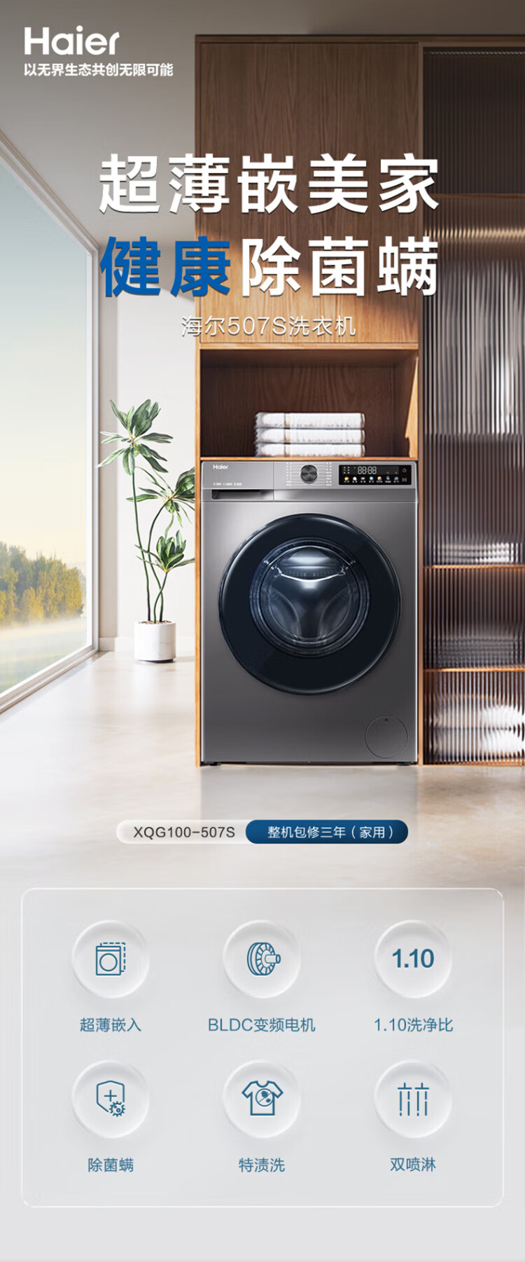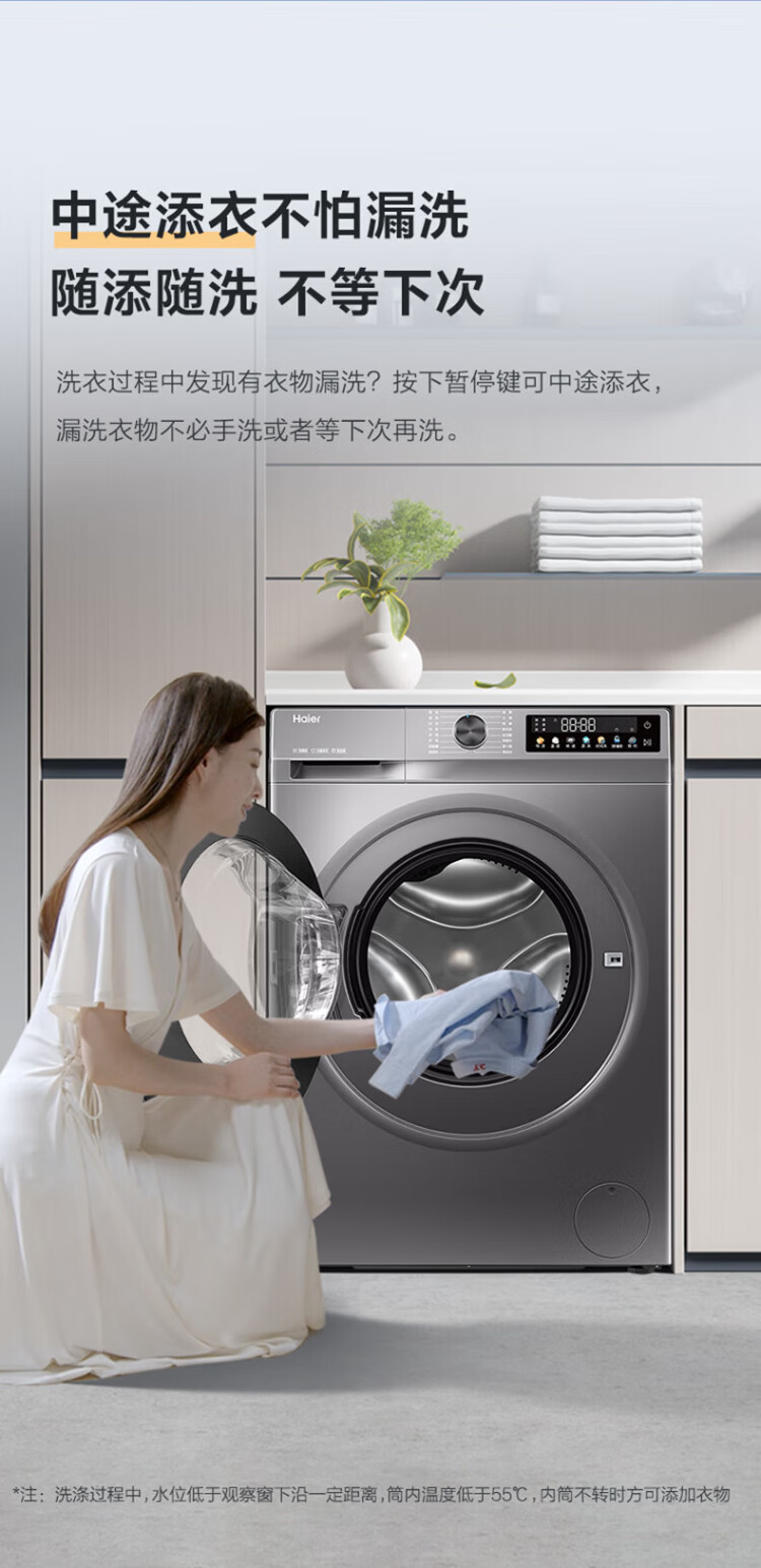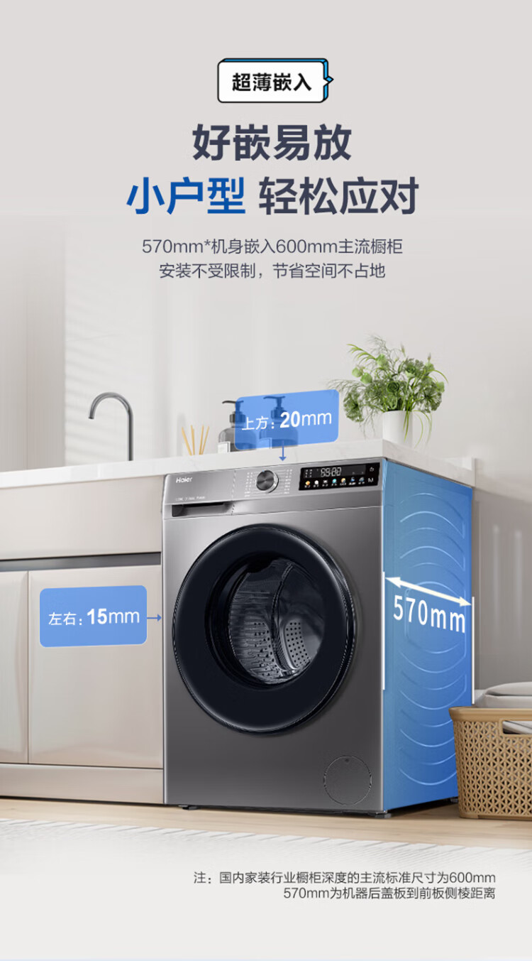 Haier ultra-thin drum washing machine, fully automatic 10kg large capacity, home rental for lazy people, frequency conversion, bacteria mite removal, first-level energy efficiency, 20% national subsidy for home appliances, integrated washing and dehydration, high temperature barrel self-cleaning + antibacterial window mat