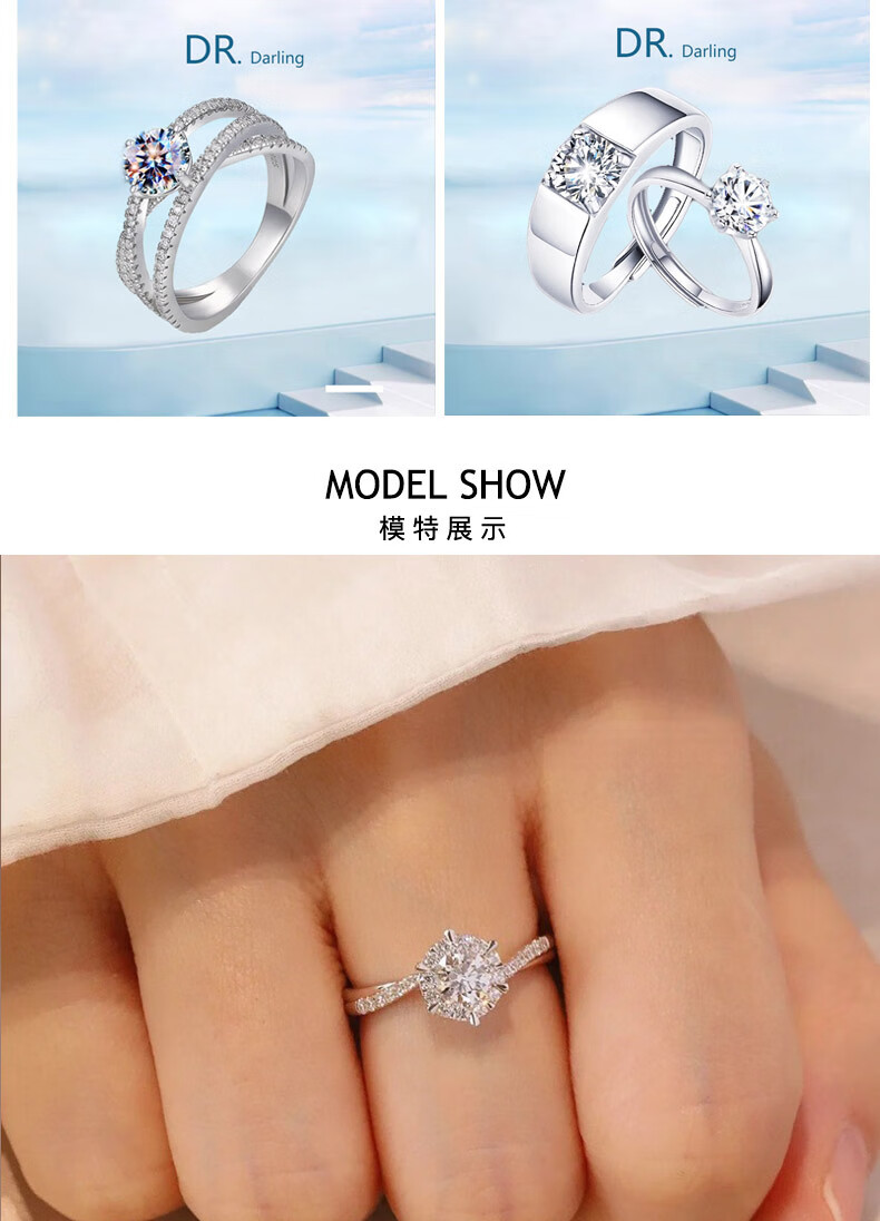 DR. DARLING moissanite diamond ring 1 carat platinum-plated six-pointed star, wedding couple ring for men and women, birthday gift, six-pointed star for women, 1 carat, same day delivery, live