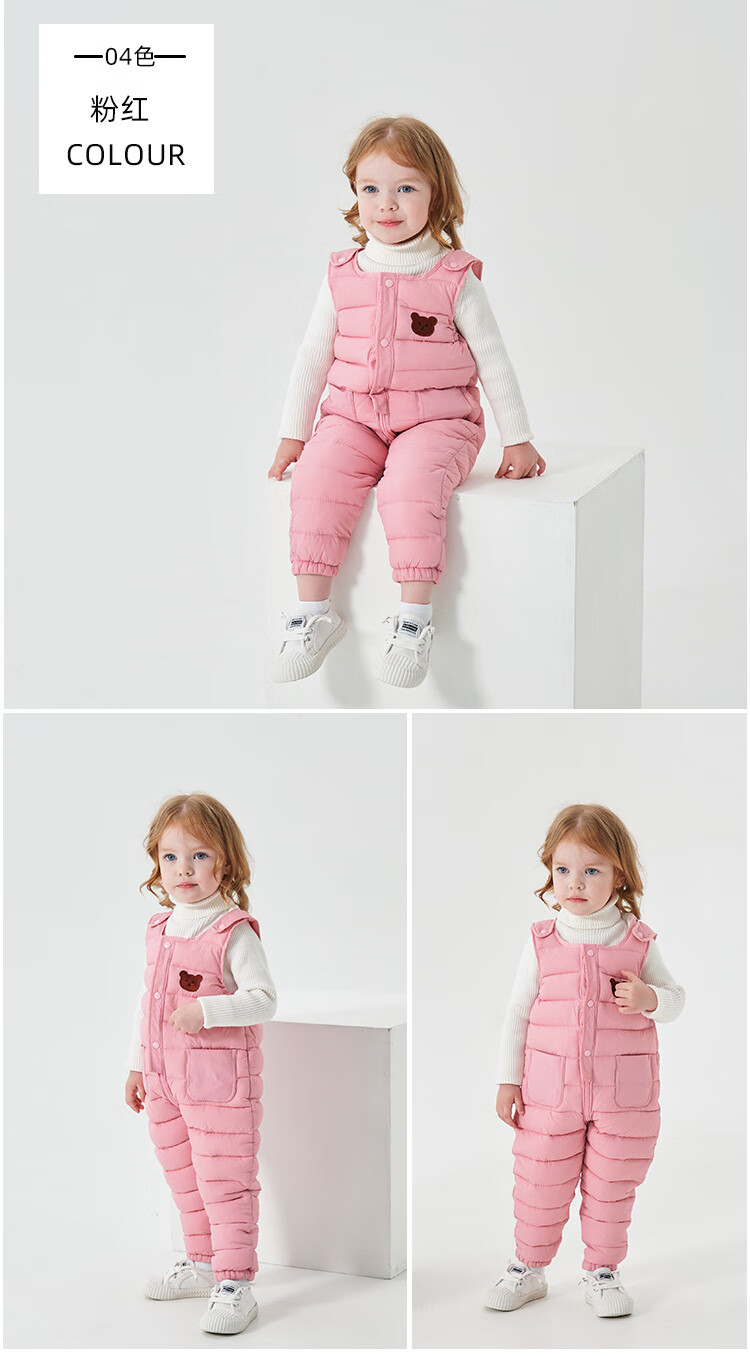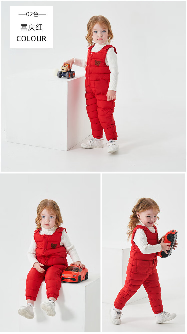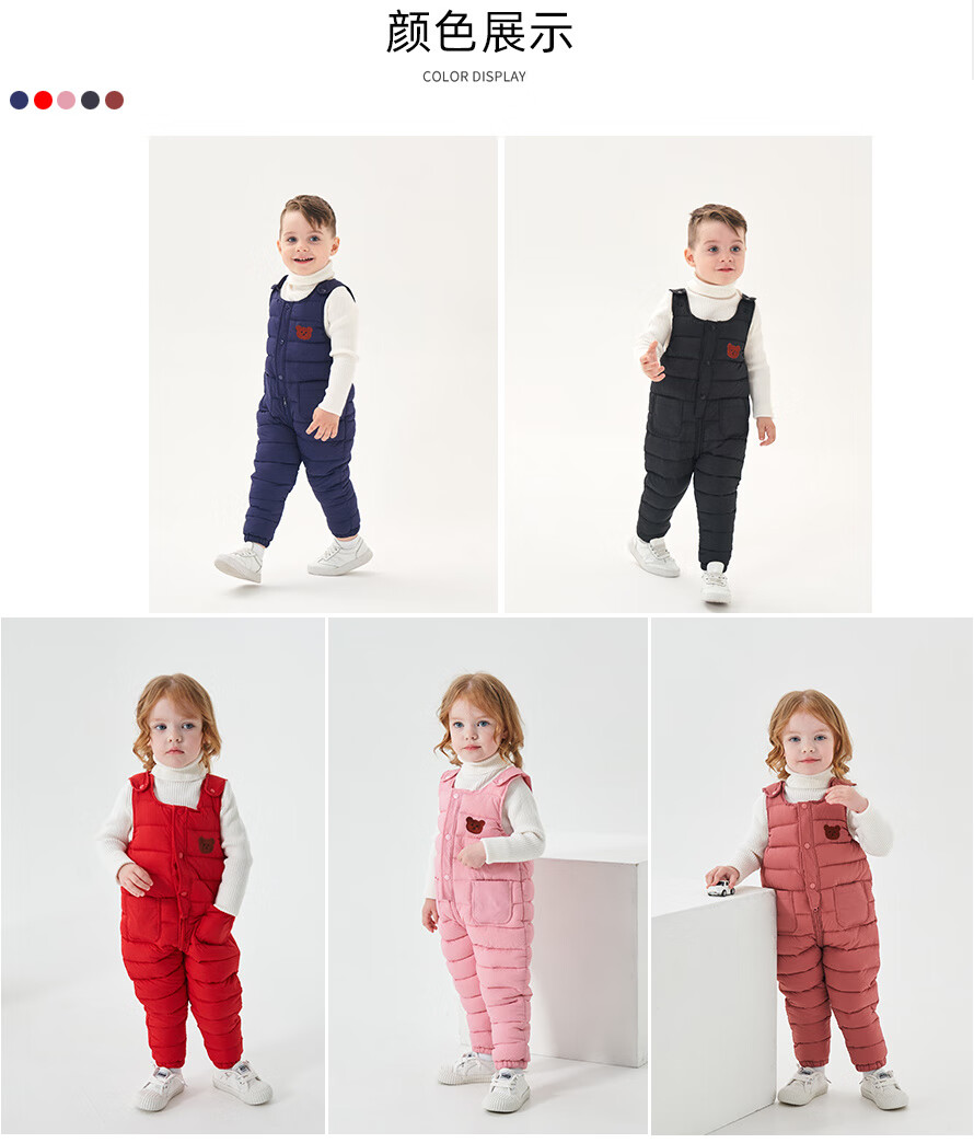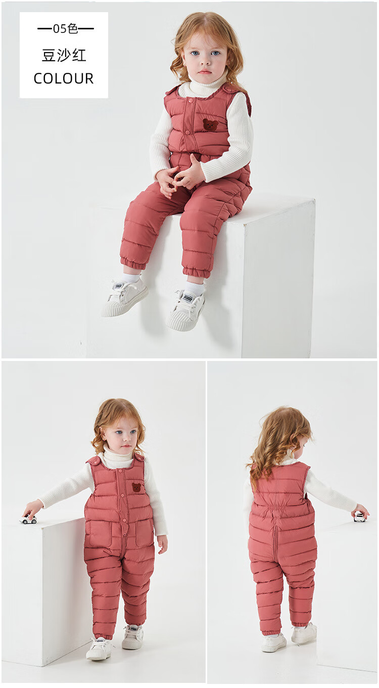 Warm winter baby overalls suit winter outer wear plus velvet for boys and girls baby open jumpsuit down cotton trousers bean paste red (plus velvet) 80 70-80CM