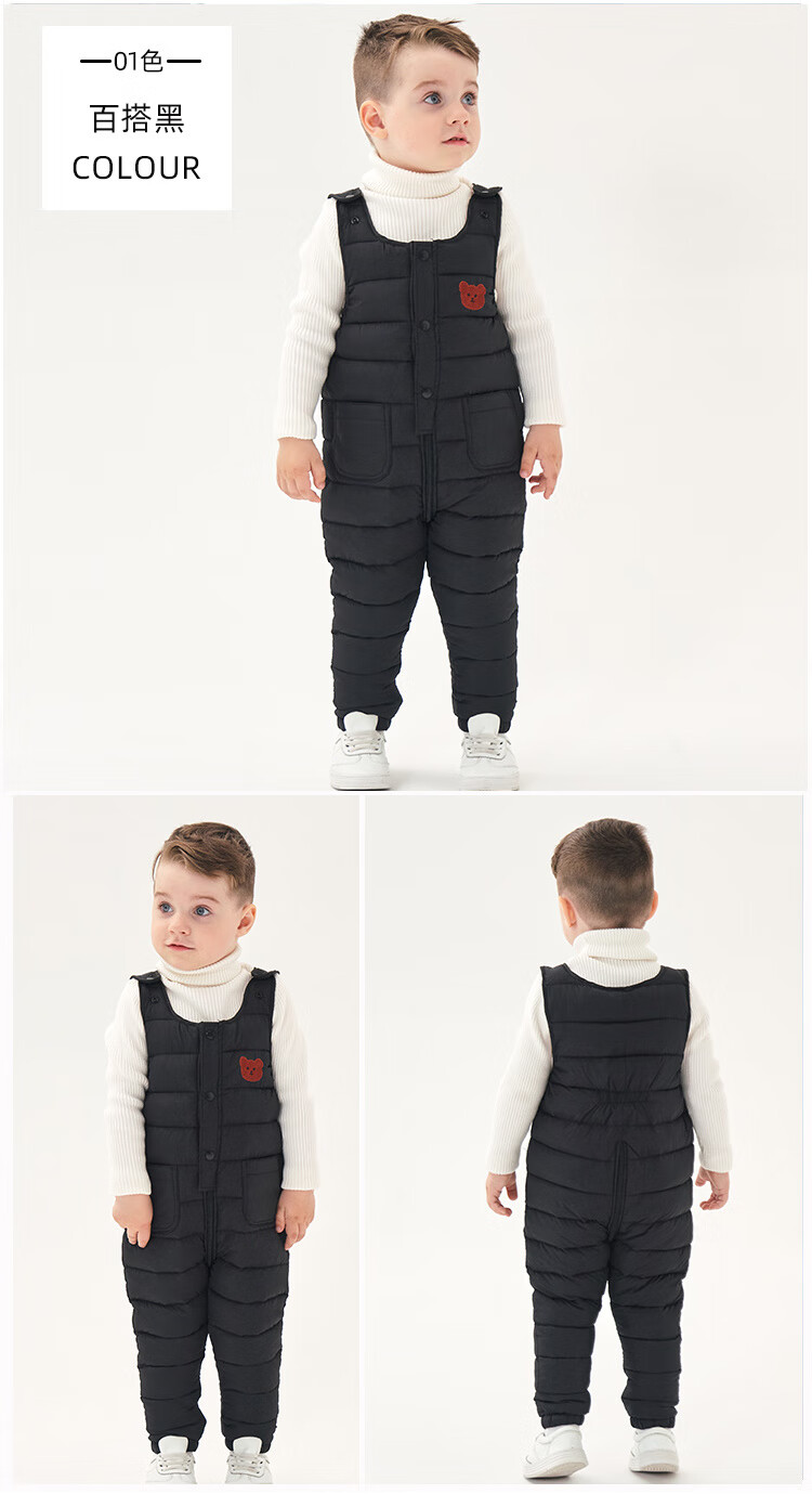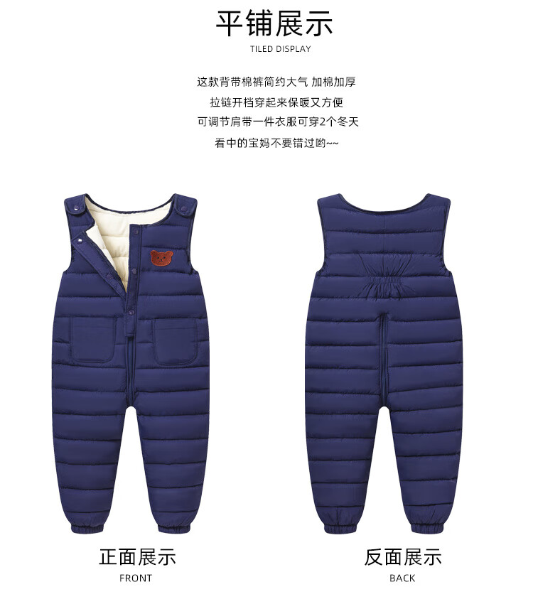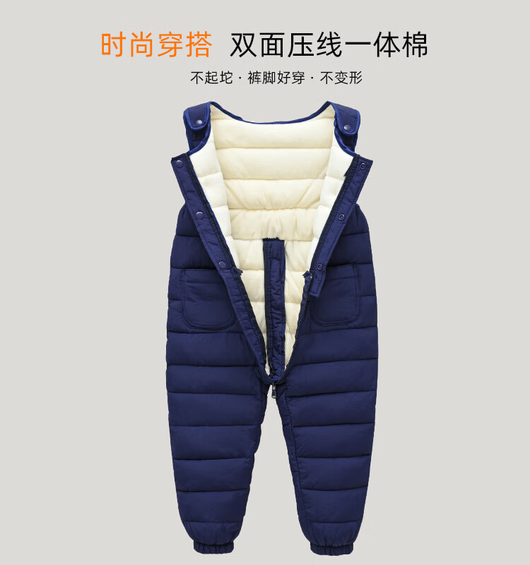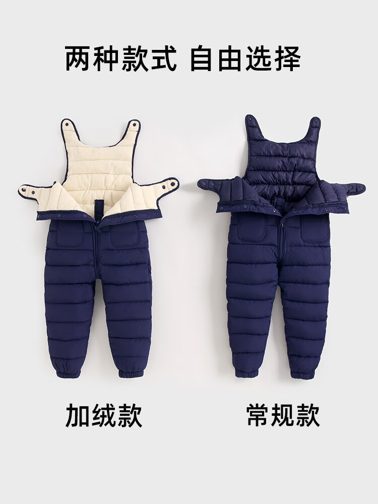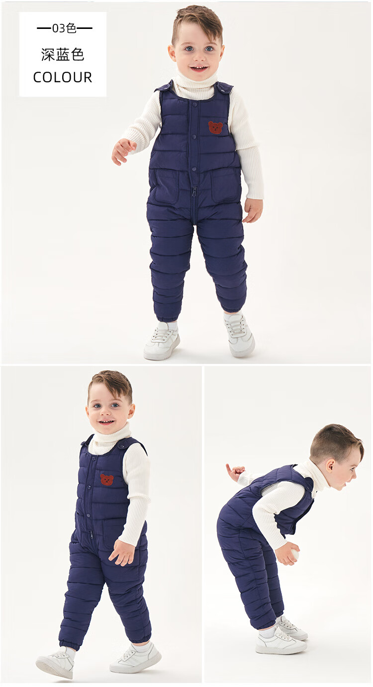 Warm winter baby overalls suit winter outer wear plus velvet for boys and girls baby open jumpsuit down cotton trousers bean paste red (plus velvet) 80 70-80CM