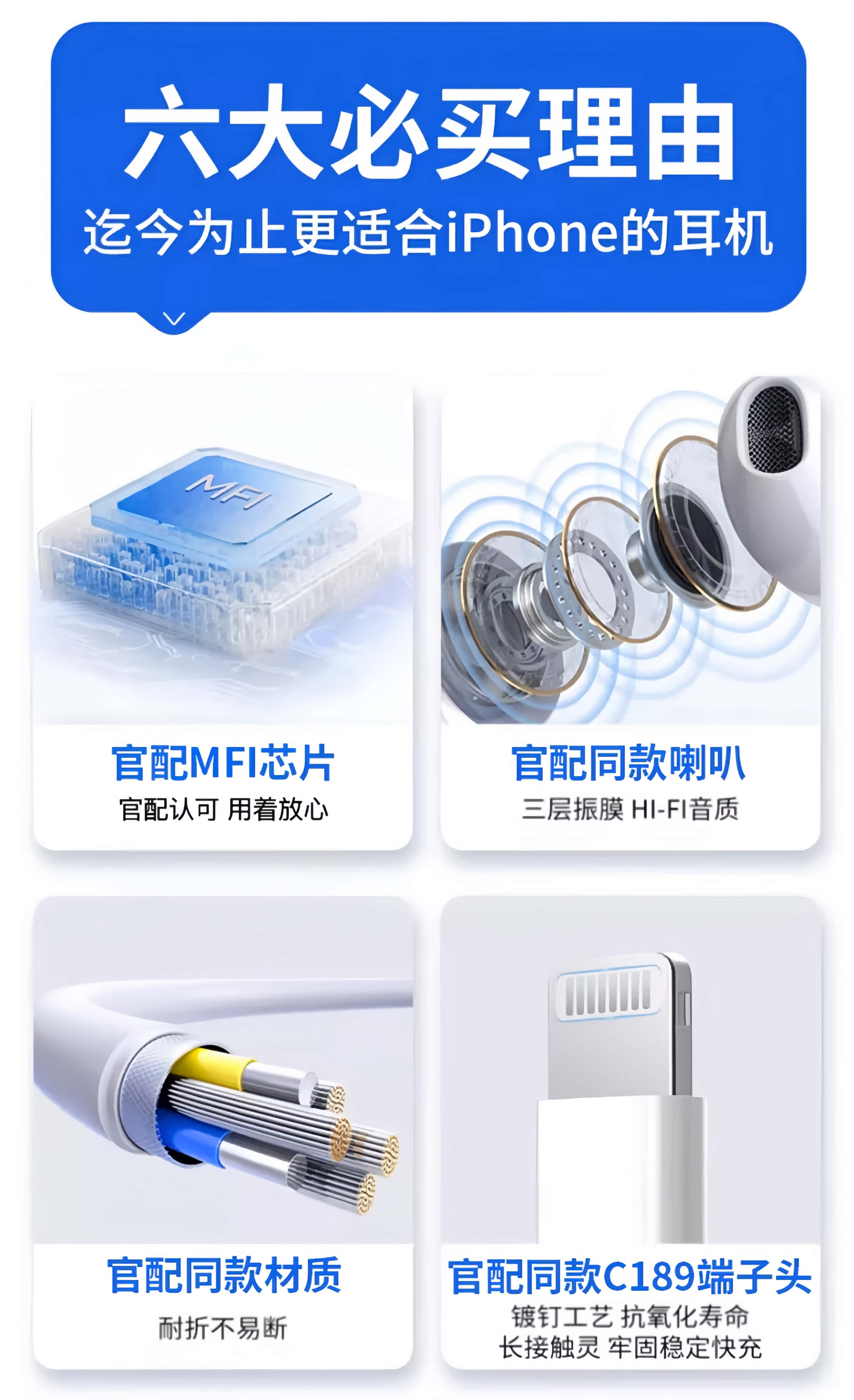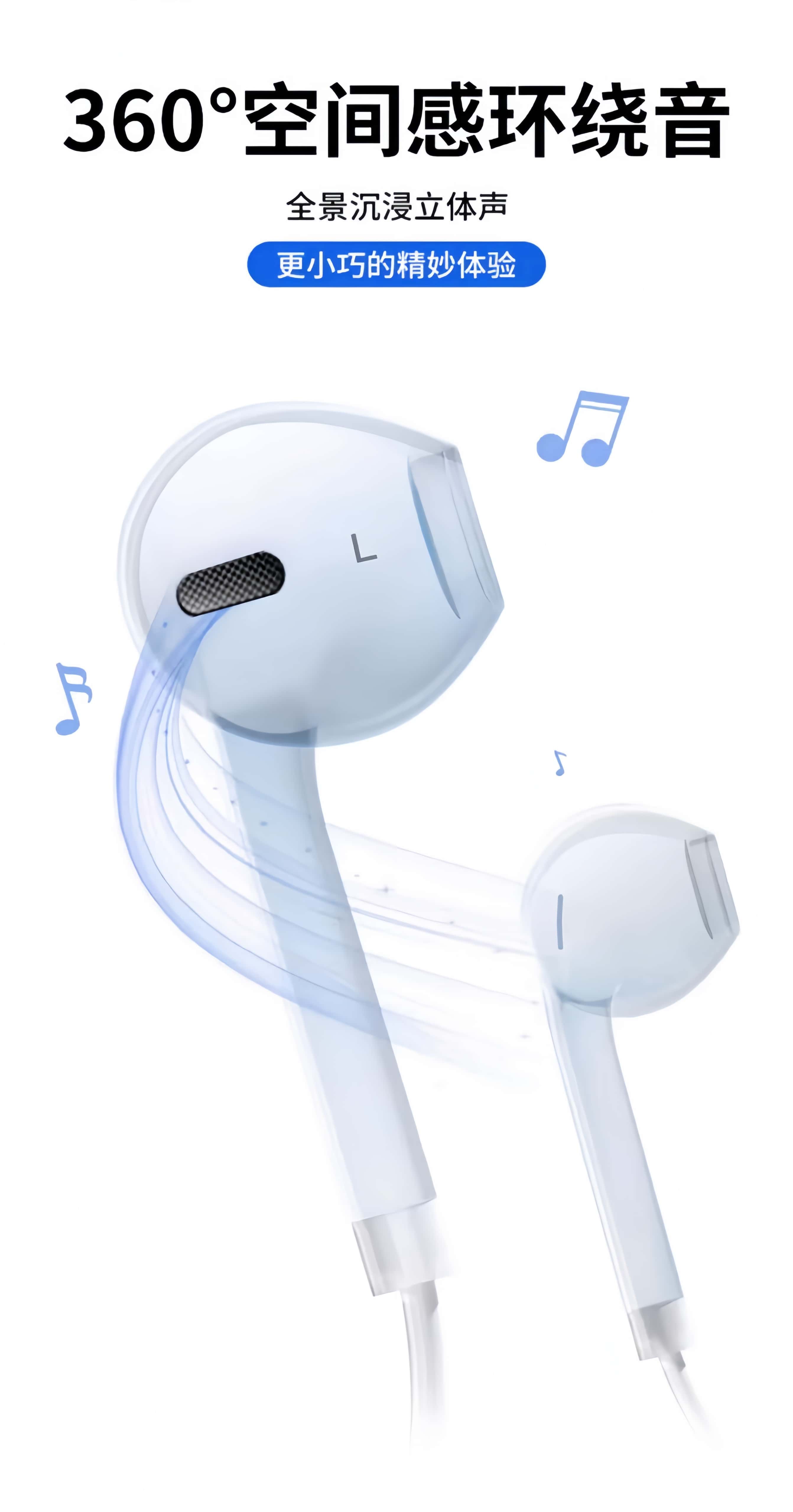 Guofang 2026 new US MFI certified wired headset type-c suitable for Apple iPhone17/16/15 tablet ipad semi-in-ear 3.5mm round hole noise reduction Type-C interface suitable for Apple 15-17 series mobile phones official new original certification HiFi lossless sound quality model