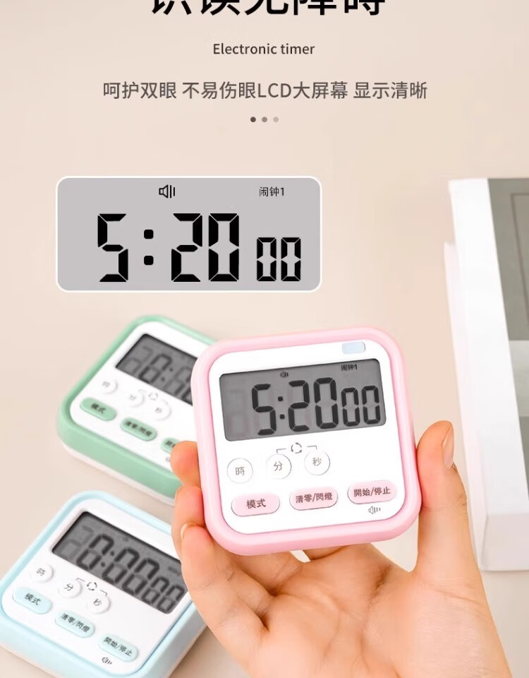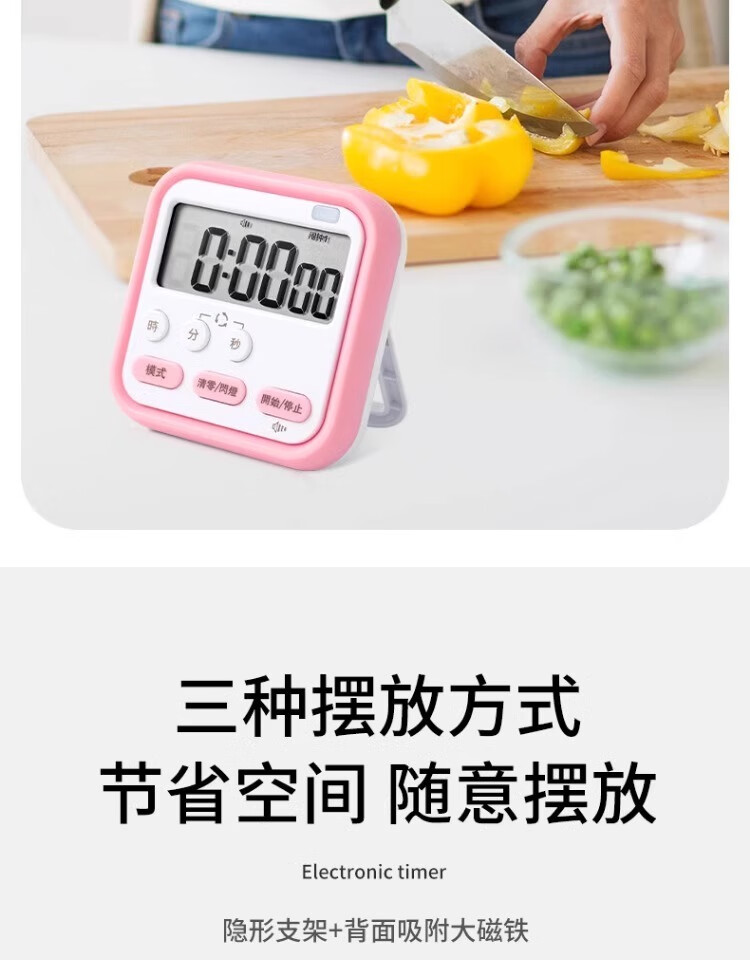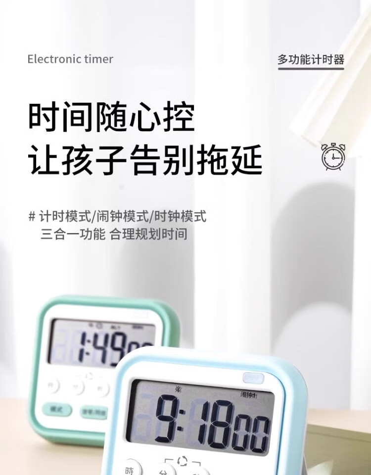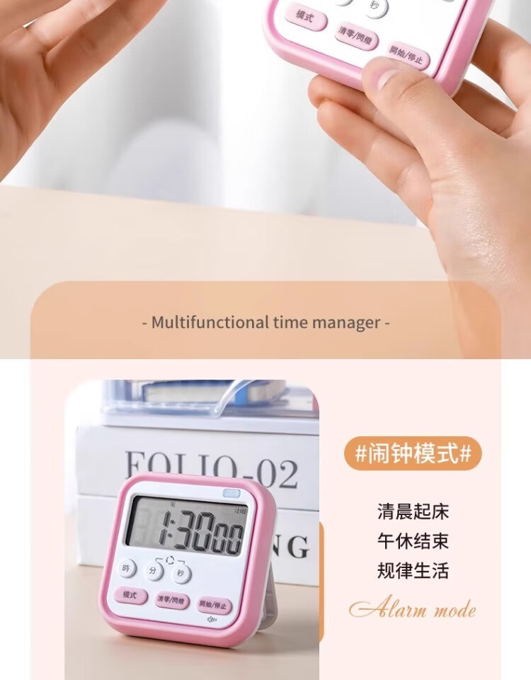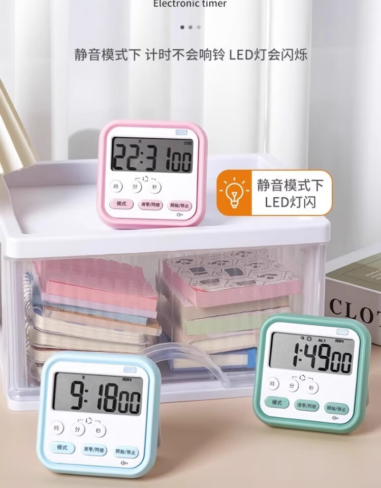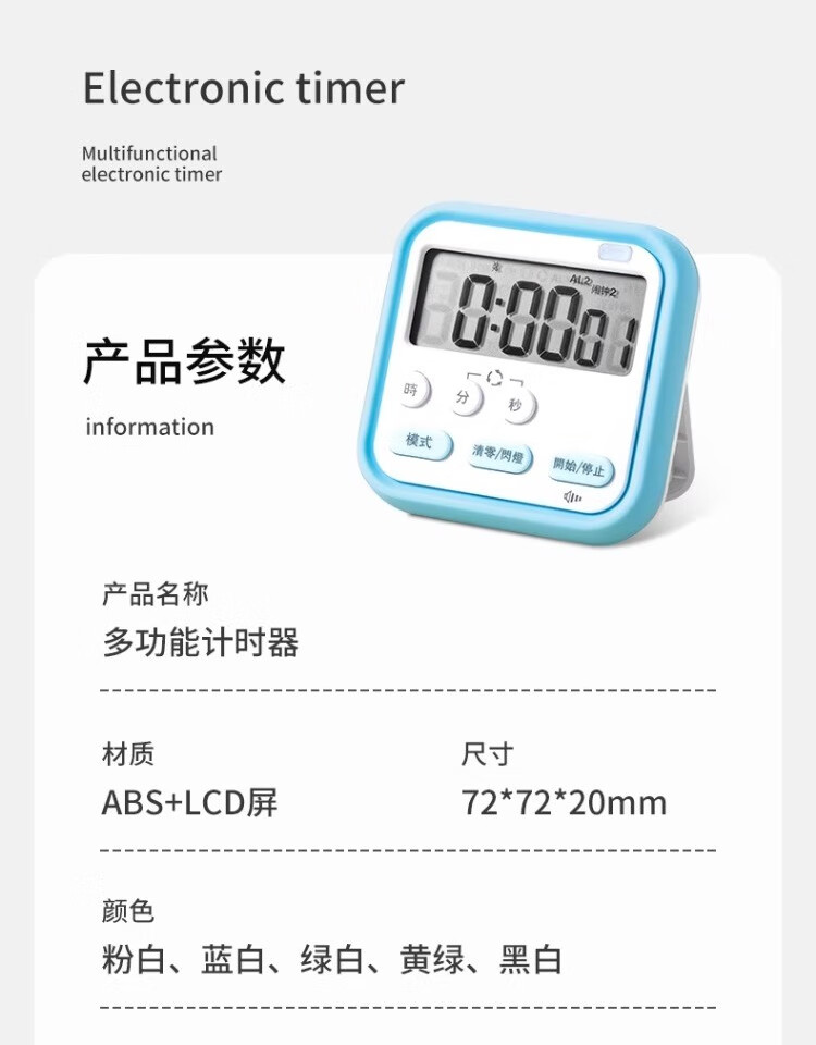 Kitchen timer timer reminder loud student countdown timer electronic alarm clock stopwatch clock postgraduate entrance examination commercial black and white