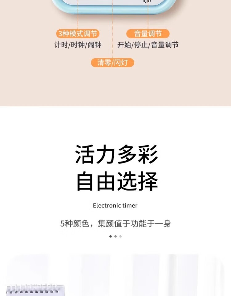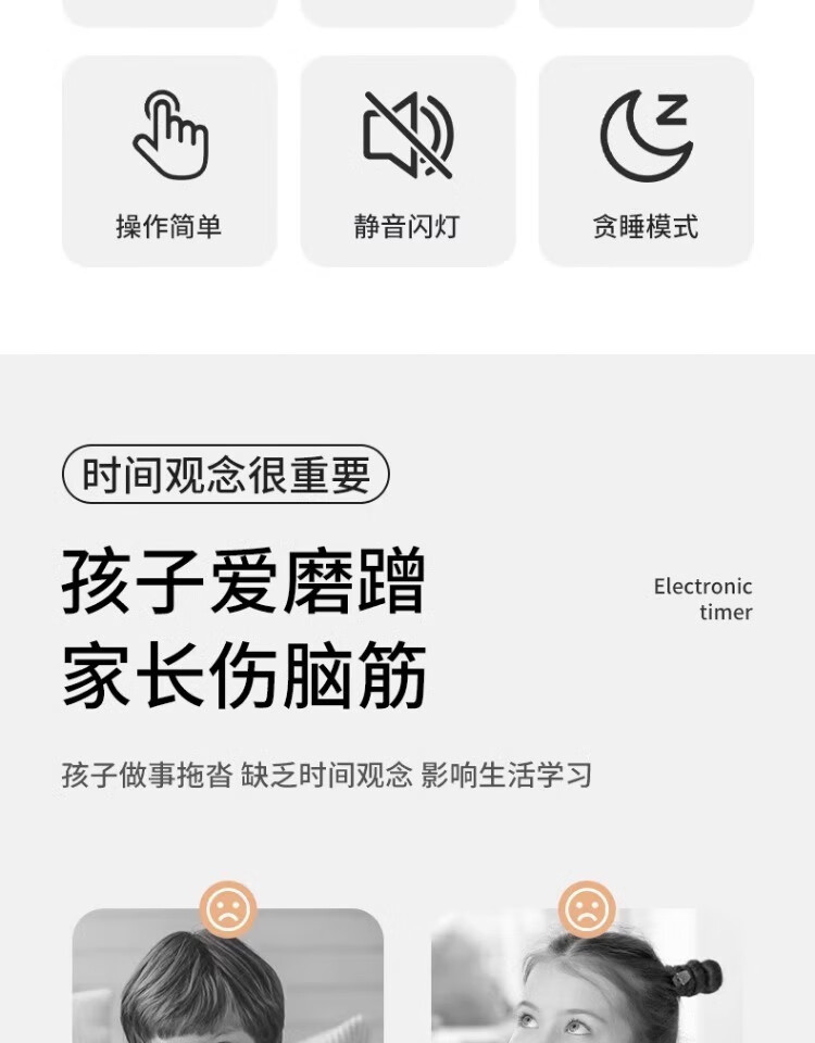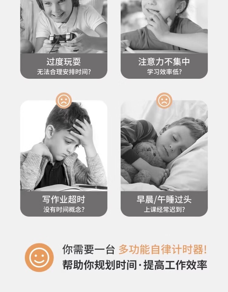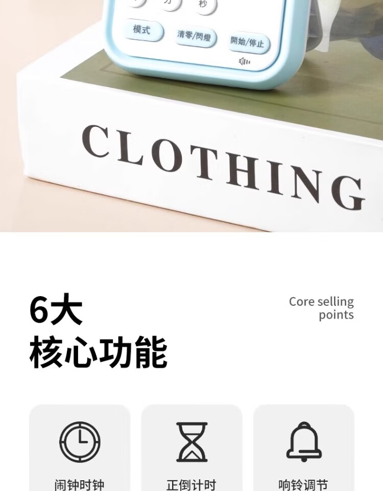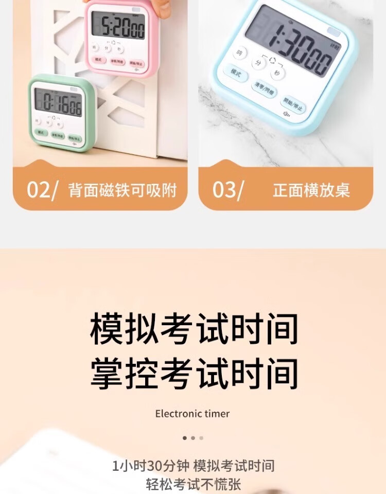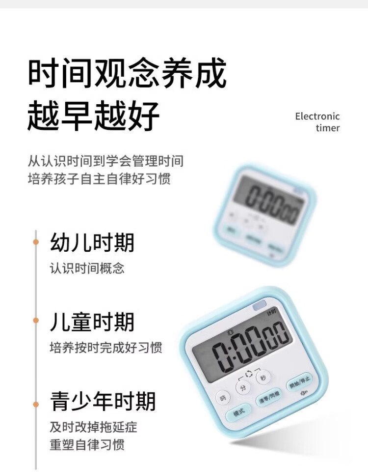 Kitchen timer timer reminder loud student countdown timer electronic alarm clock stopwatch clock postgraduate entrance examination commercial black and white