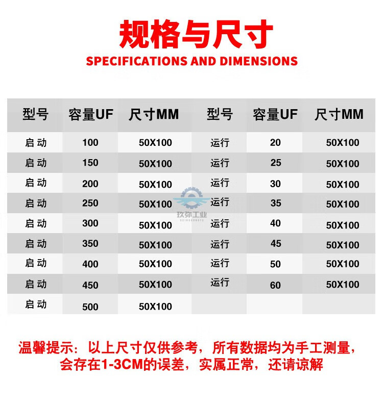 Motor capacitor single-phase 220V motor 450V starting and running capacitor 300uf working and running 40uf capacitor 35ufCBB60 (large volume) diameter 50mm high 1 1 pack