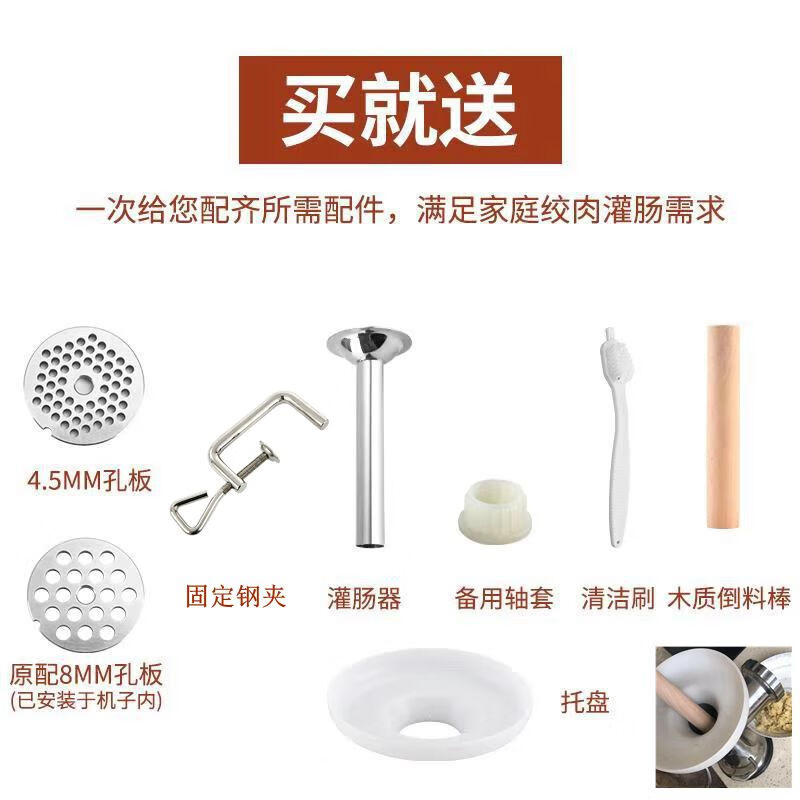 Huili 304 stainless steel manual meat grinder household hand-cranked meat grinder cooking machine stuffing machine sausage filling machine 8S + casting sausage + grinding head