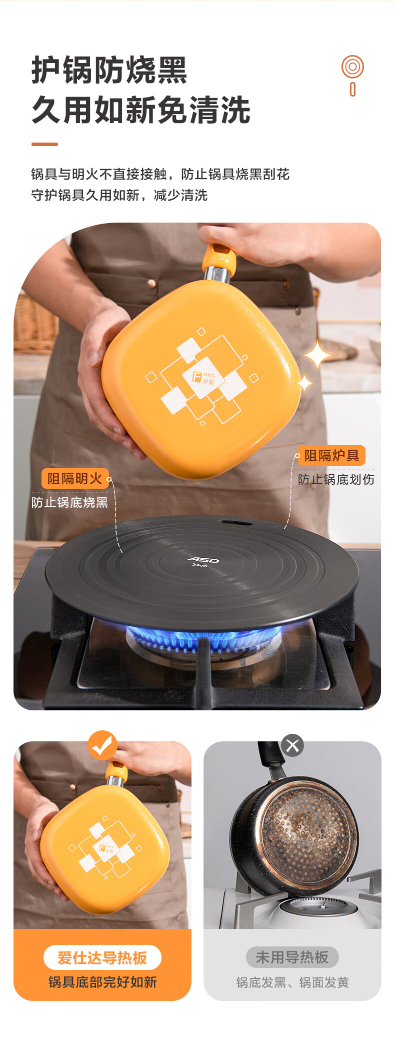 Huili's heat conduction plate gas stove household heat conduction plate enamel pot bottom anti-burning black frozen meat thawing heat conduction heat transfer plate 20cm+24cm